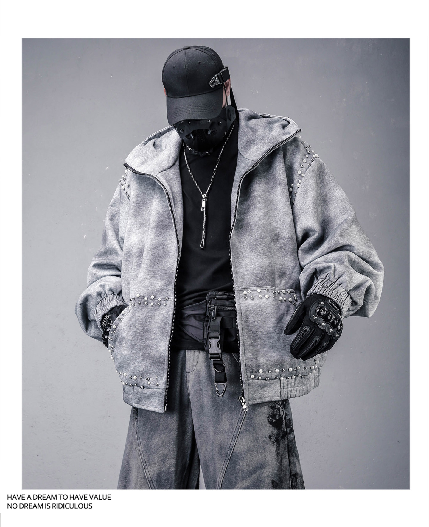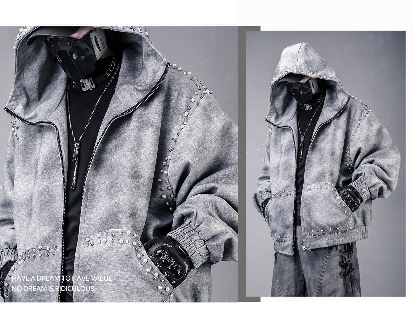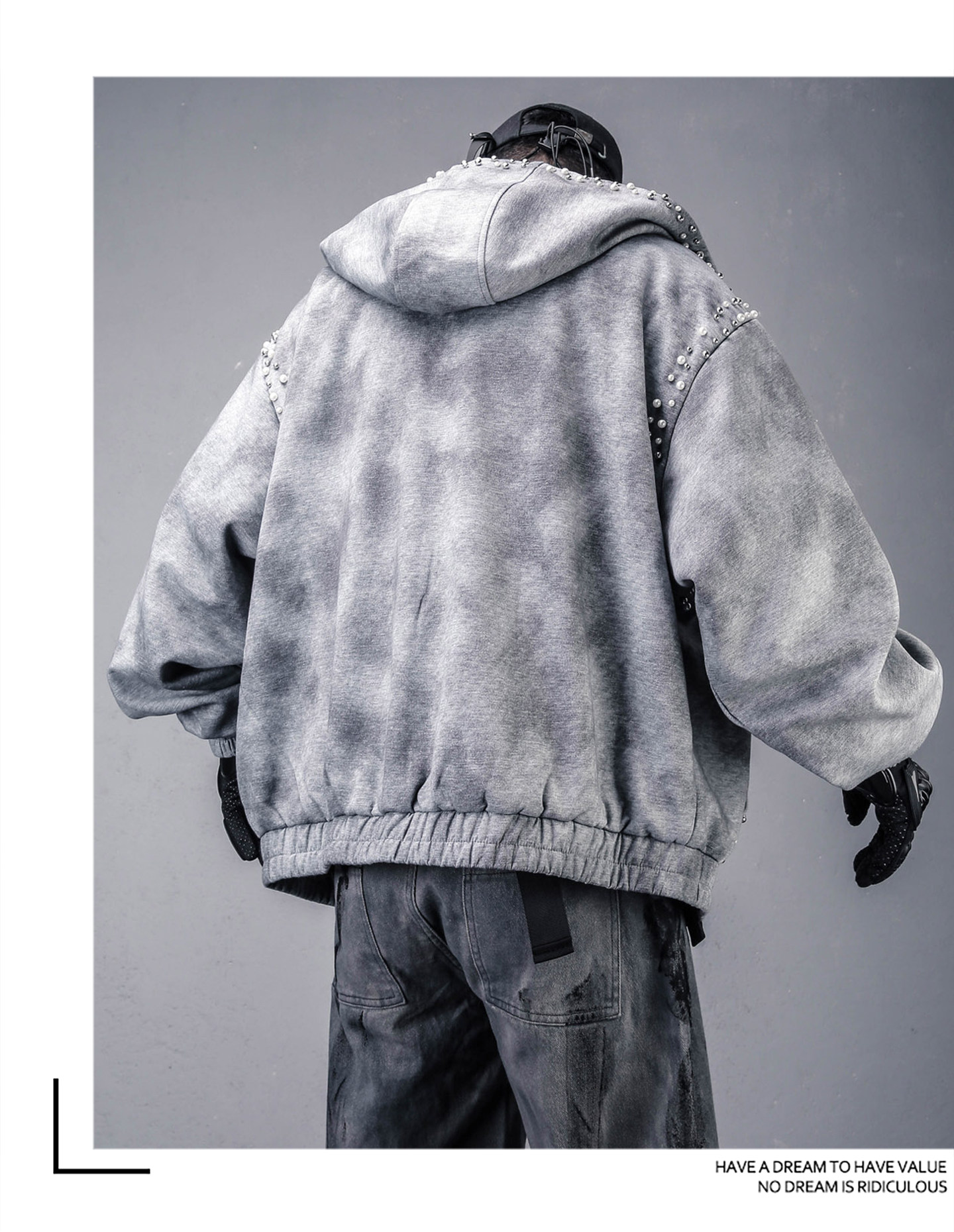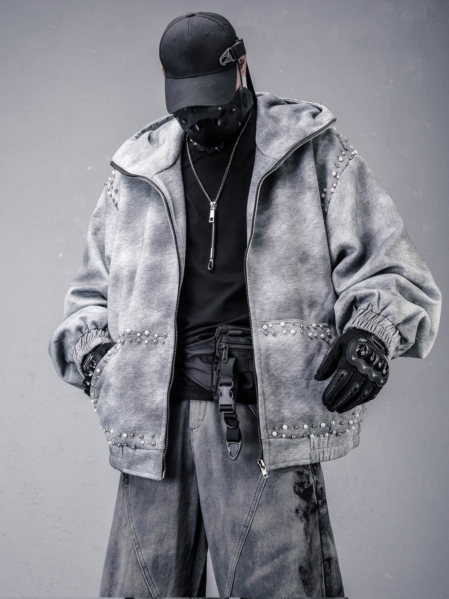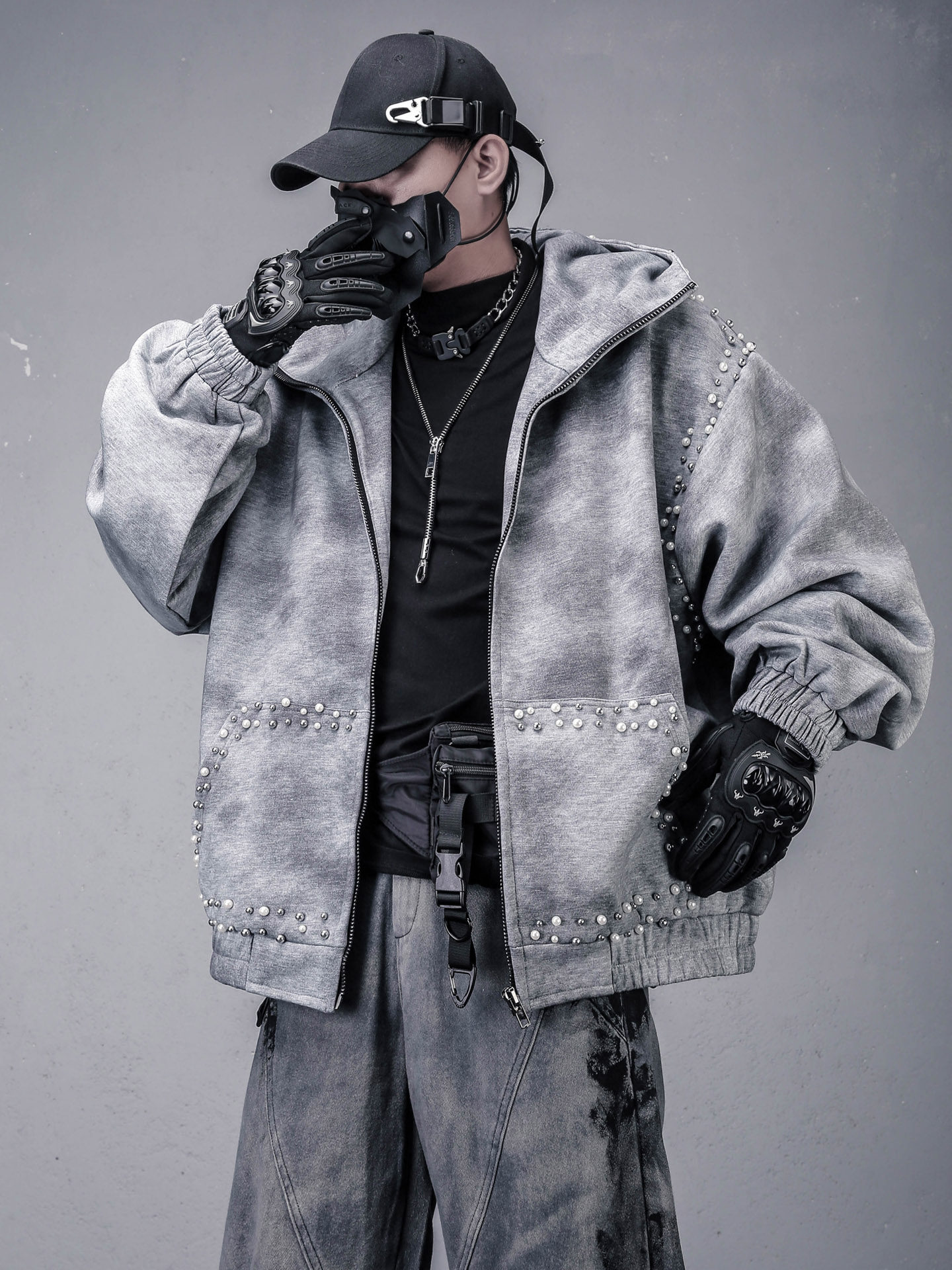 Pearl Beads Decor Fleece Lining Oversize Zipper Hoodie WN22446
