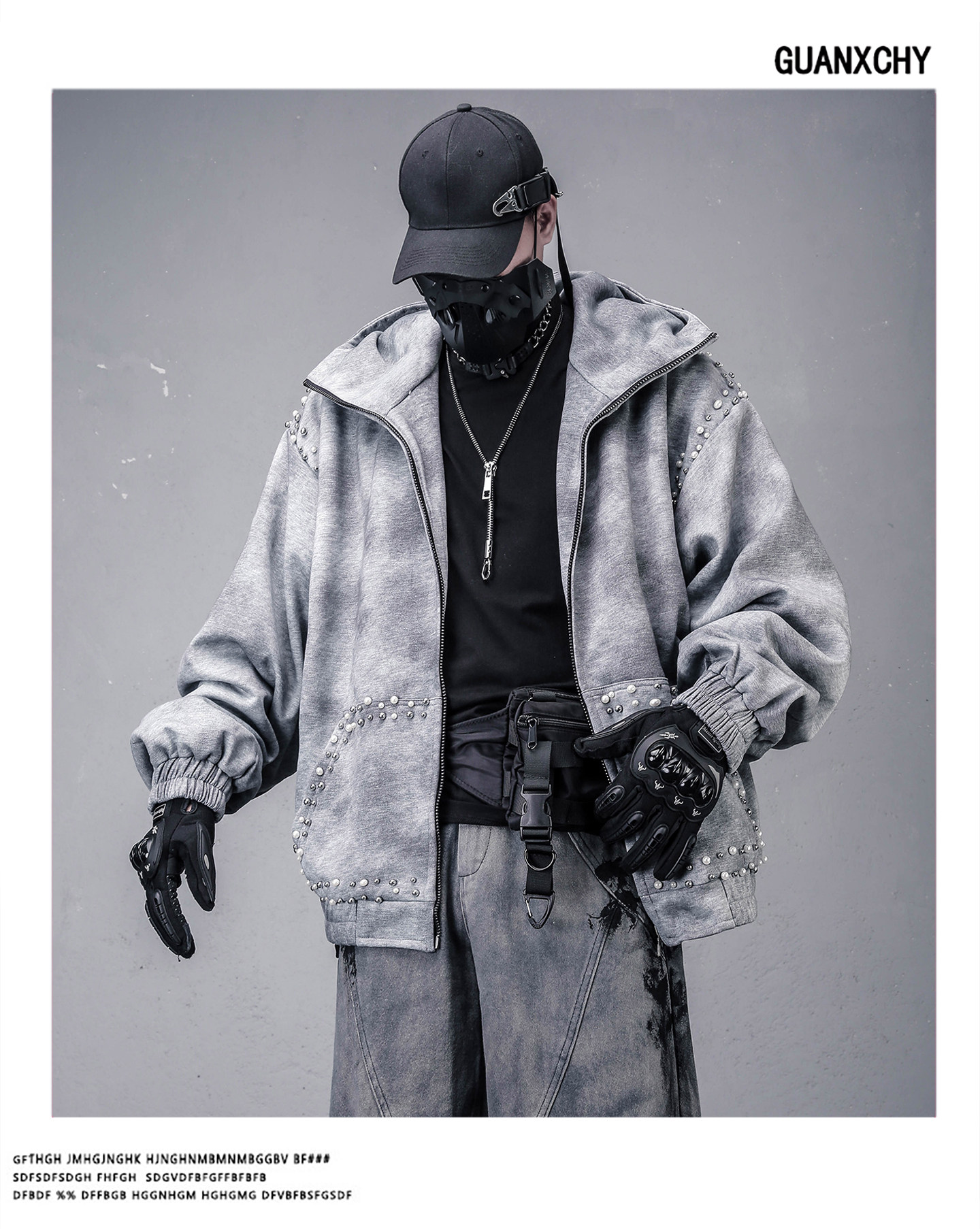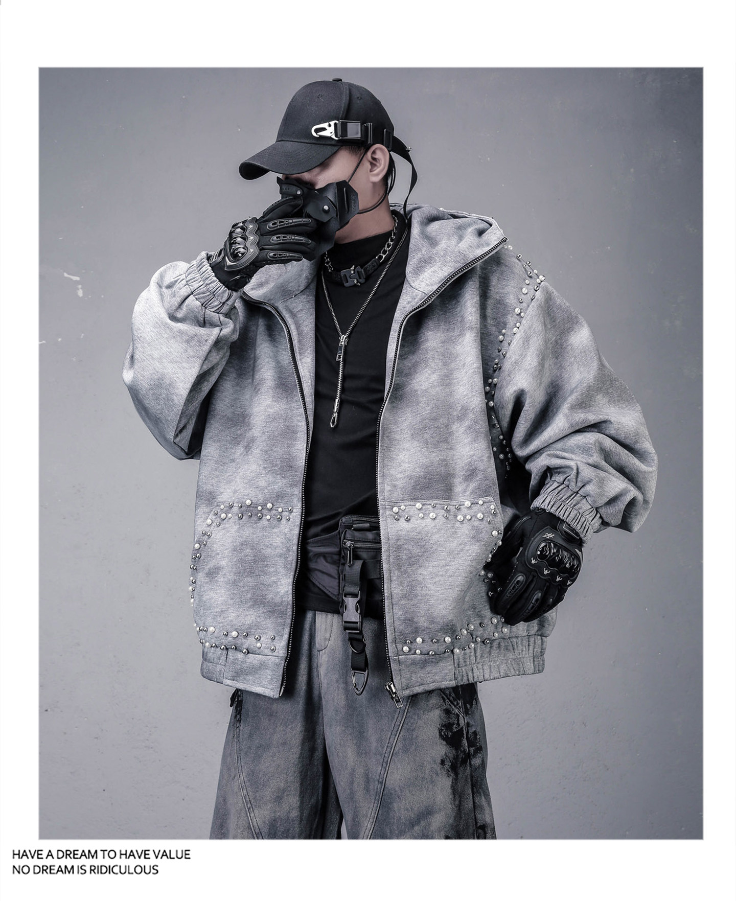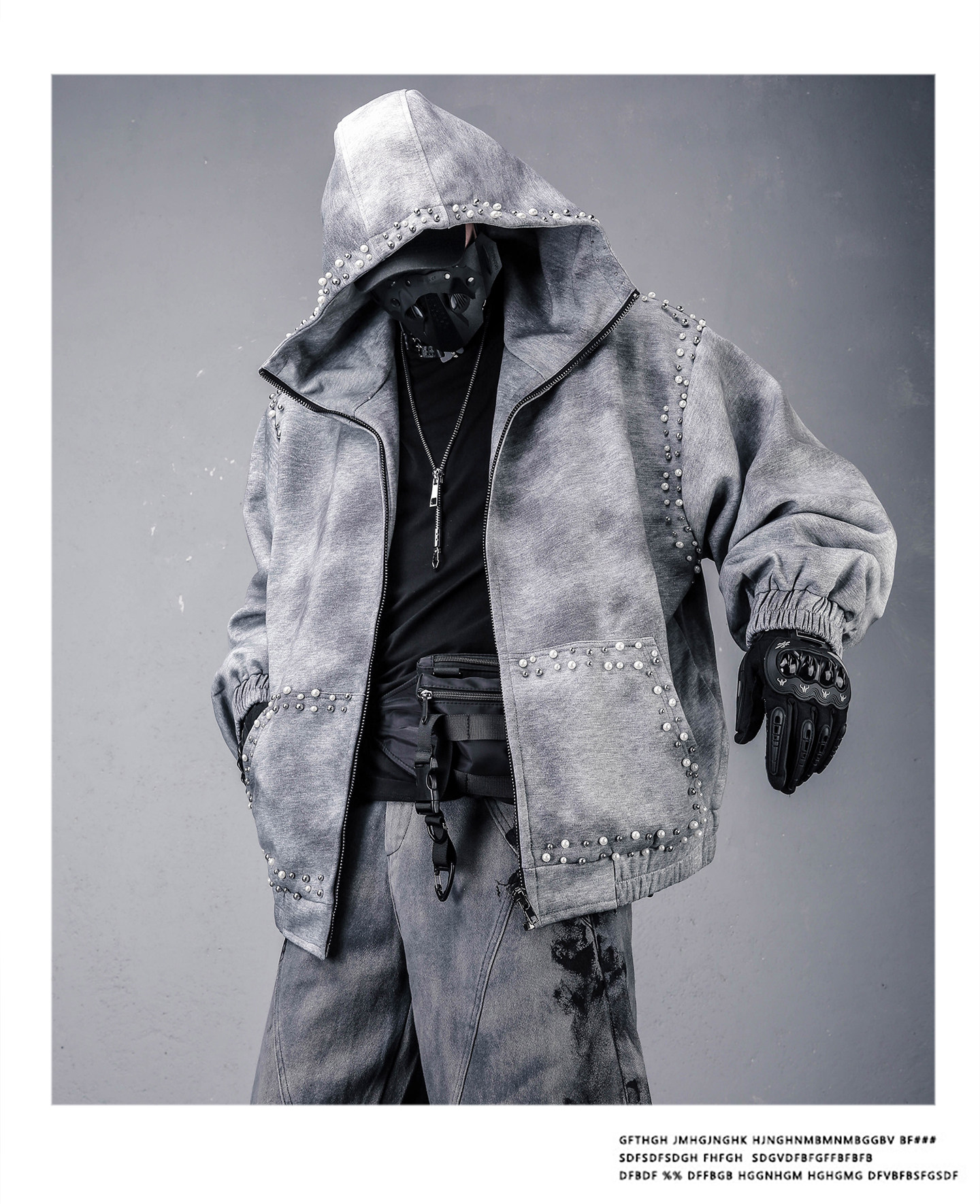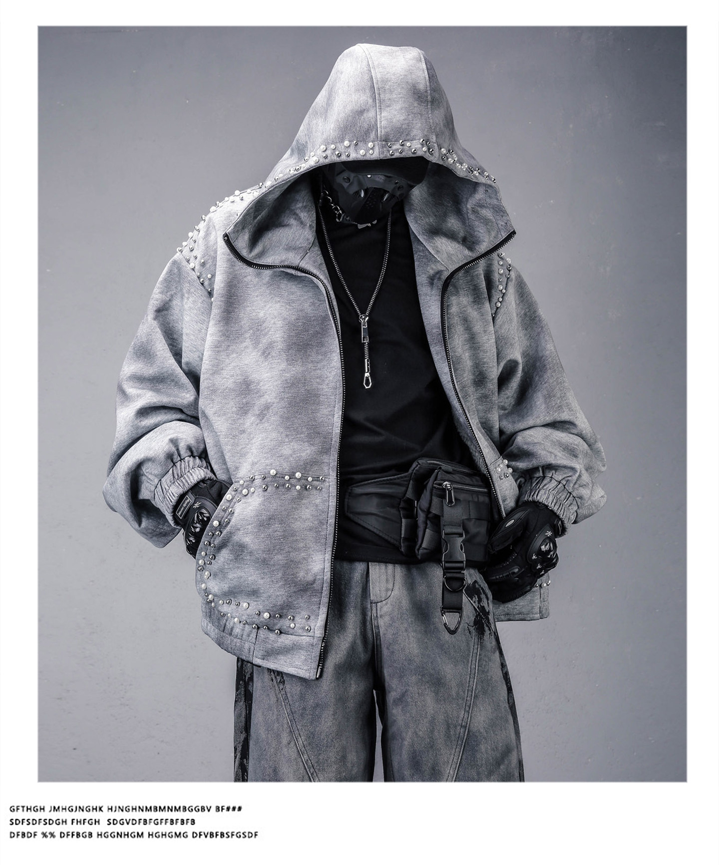 Pearl Beads Decor Fleece Lining Oversize Zipper Hoodie WN22446