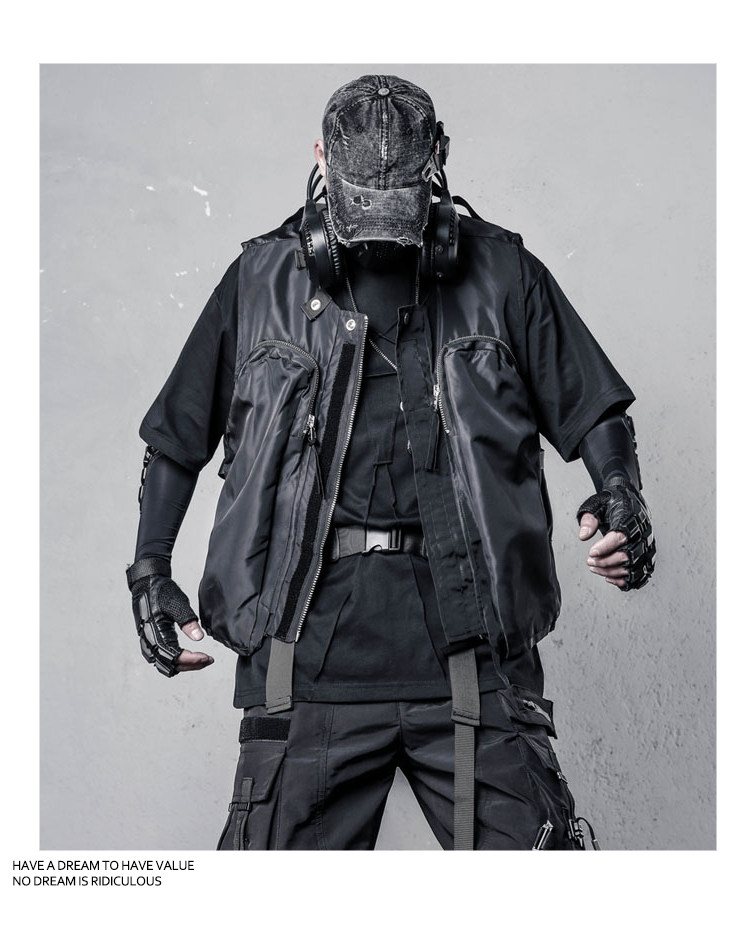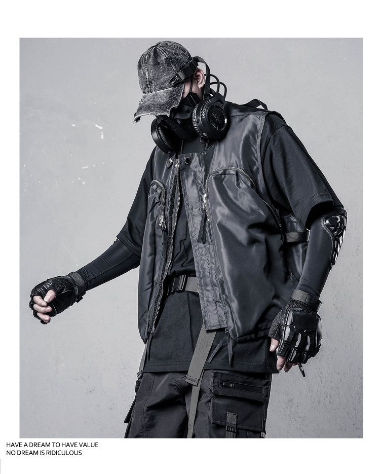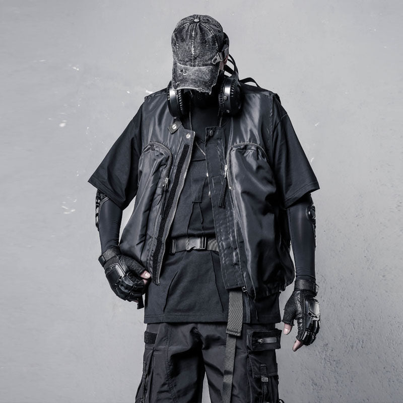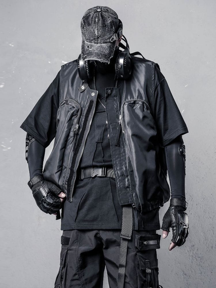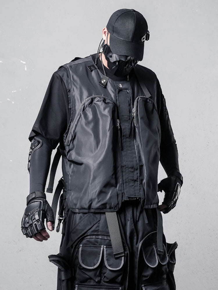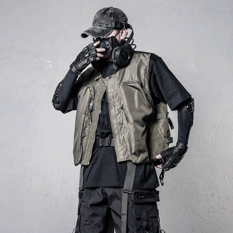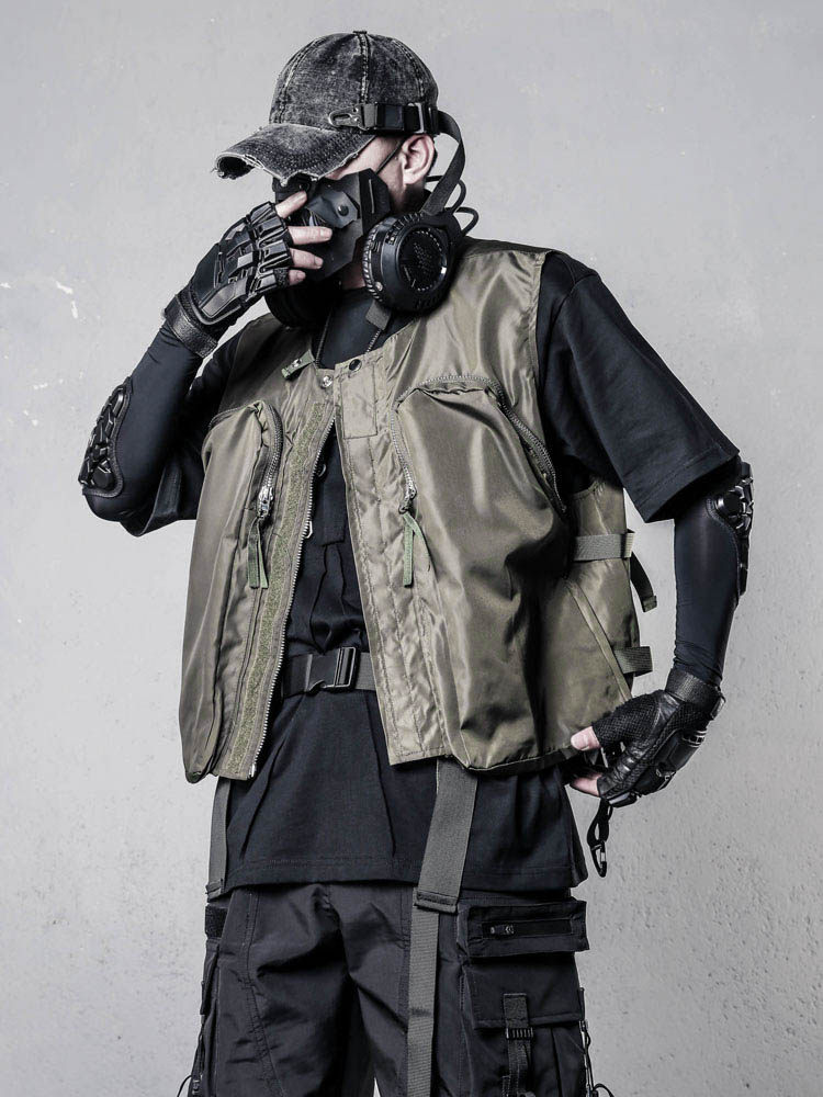 Functional Zipper Multi-Pocket Sleeveless Vest WN22520