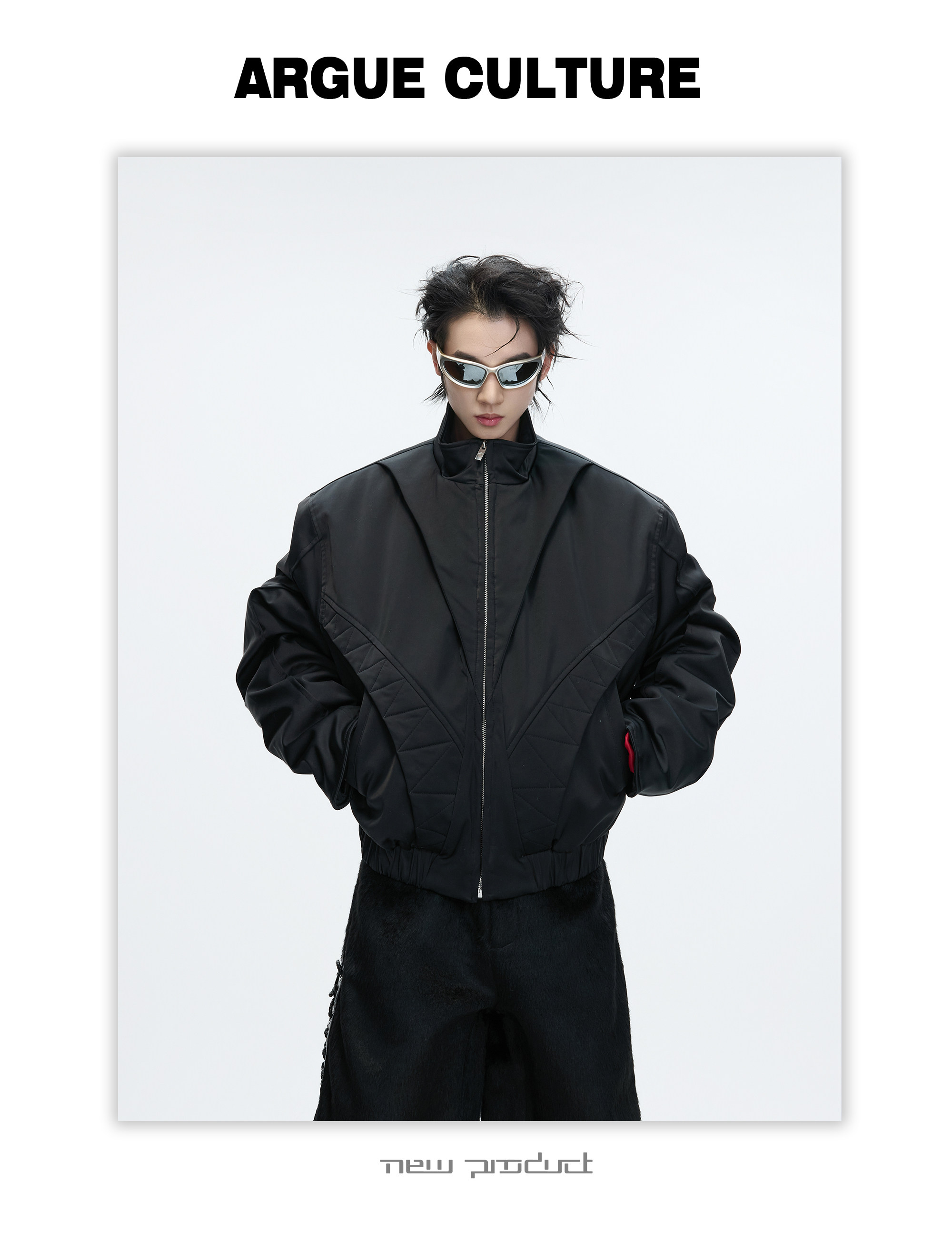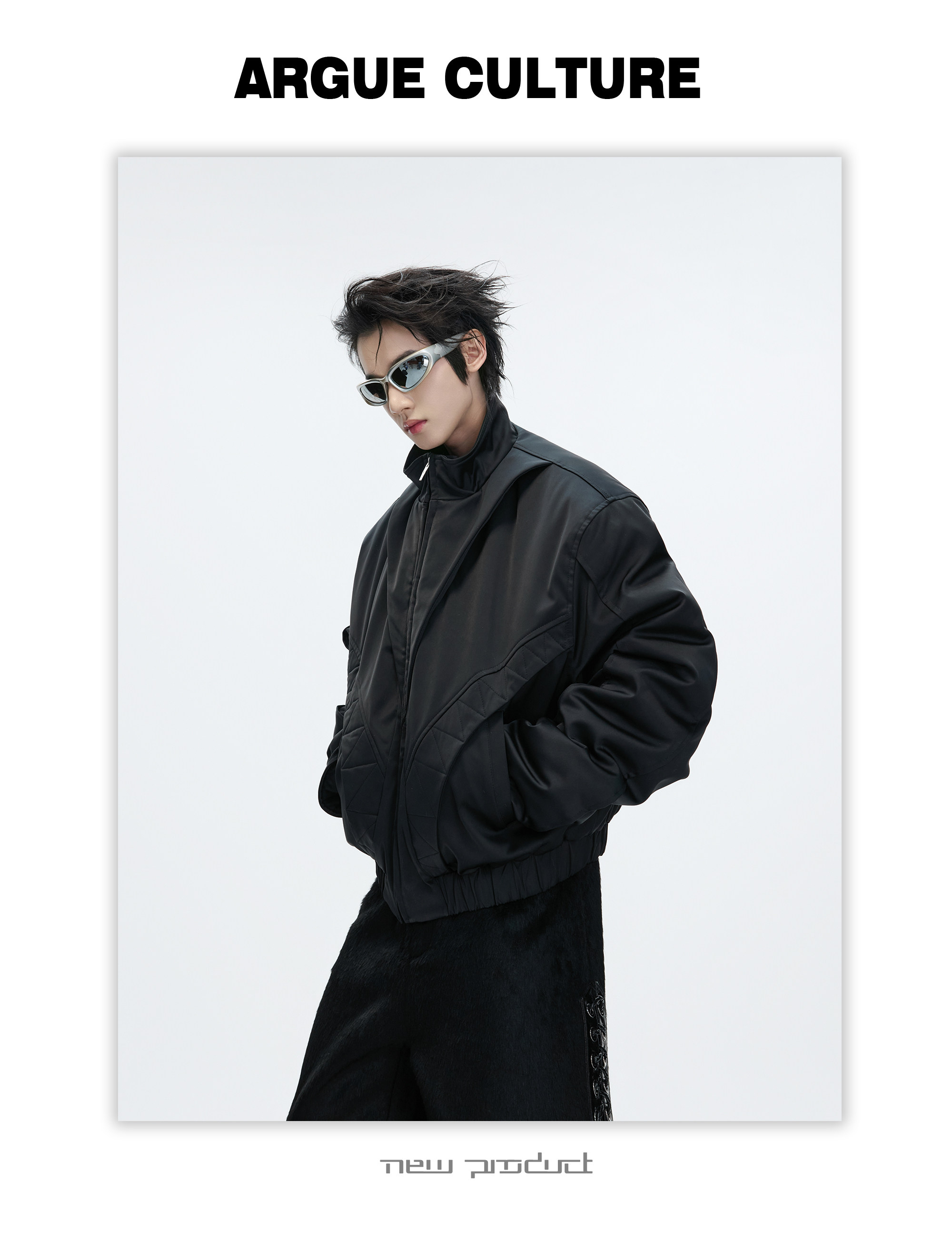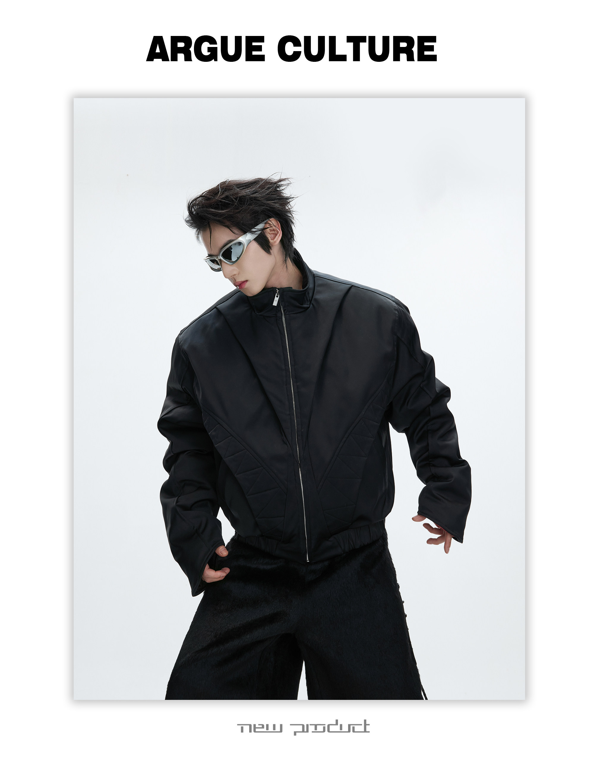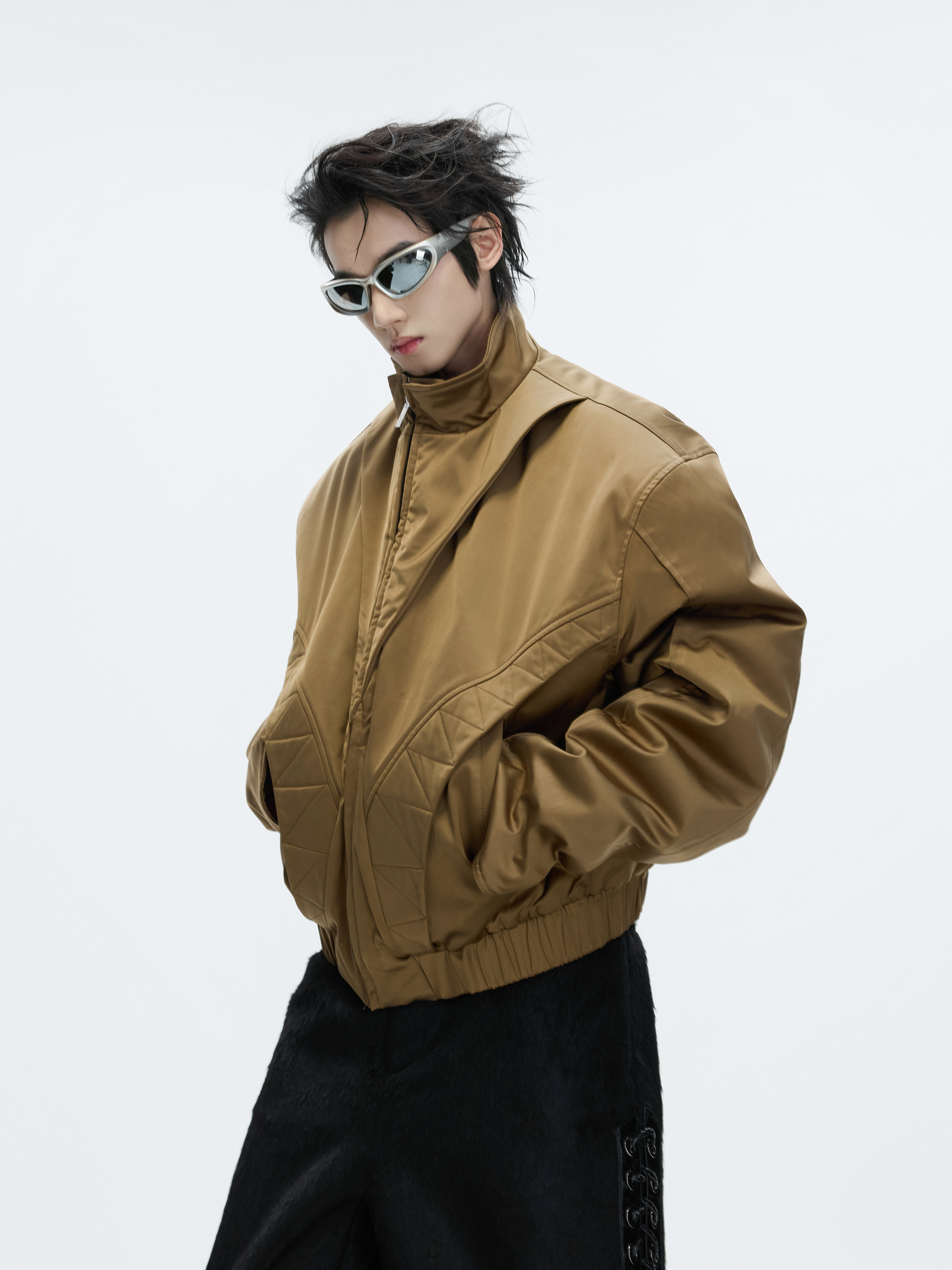 Structured Split Fleece Lining Stand Neck Jacket WN22611