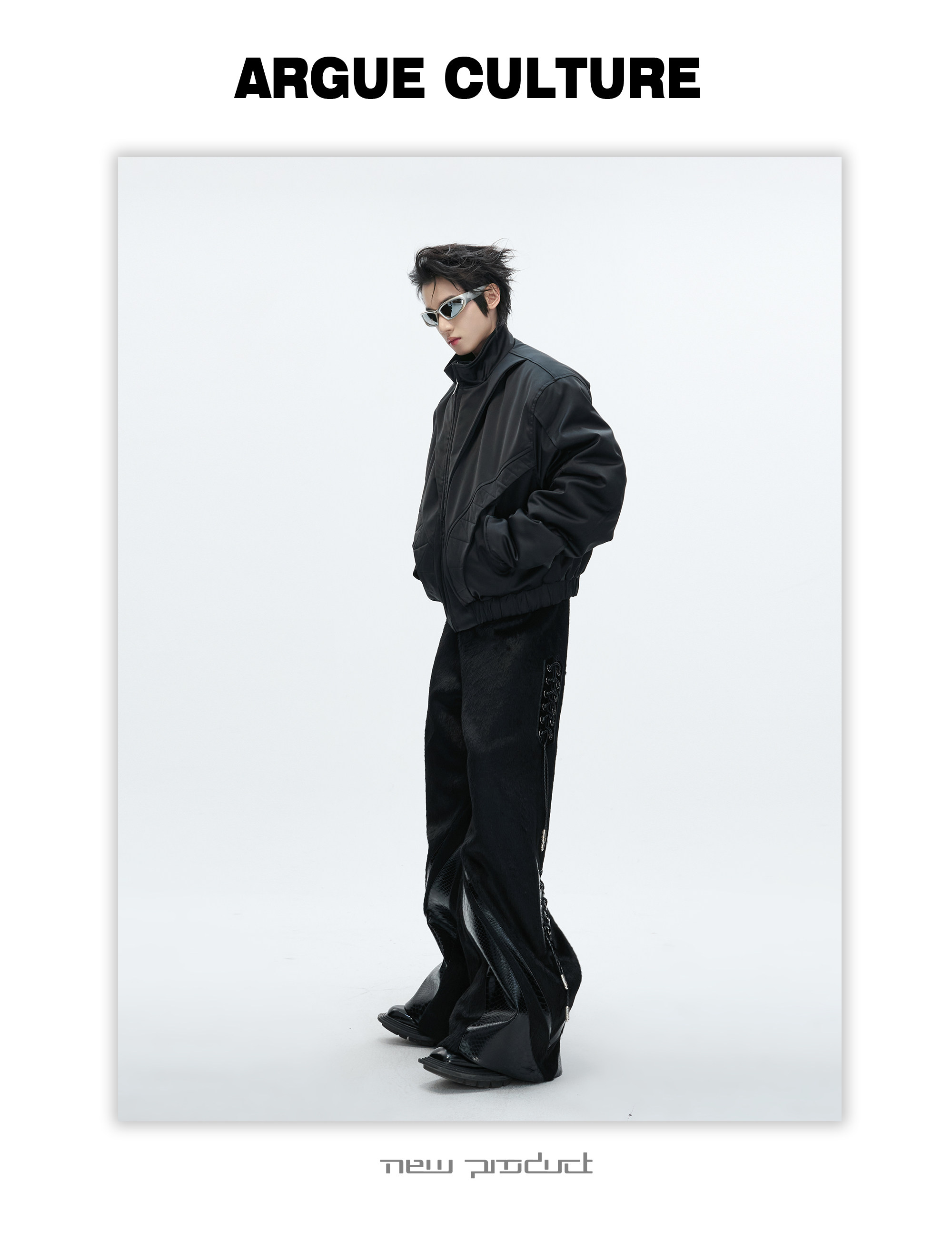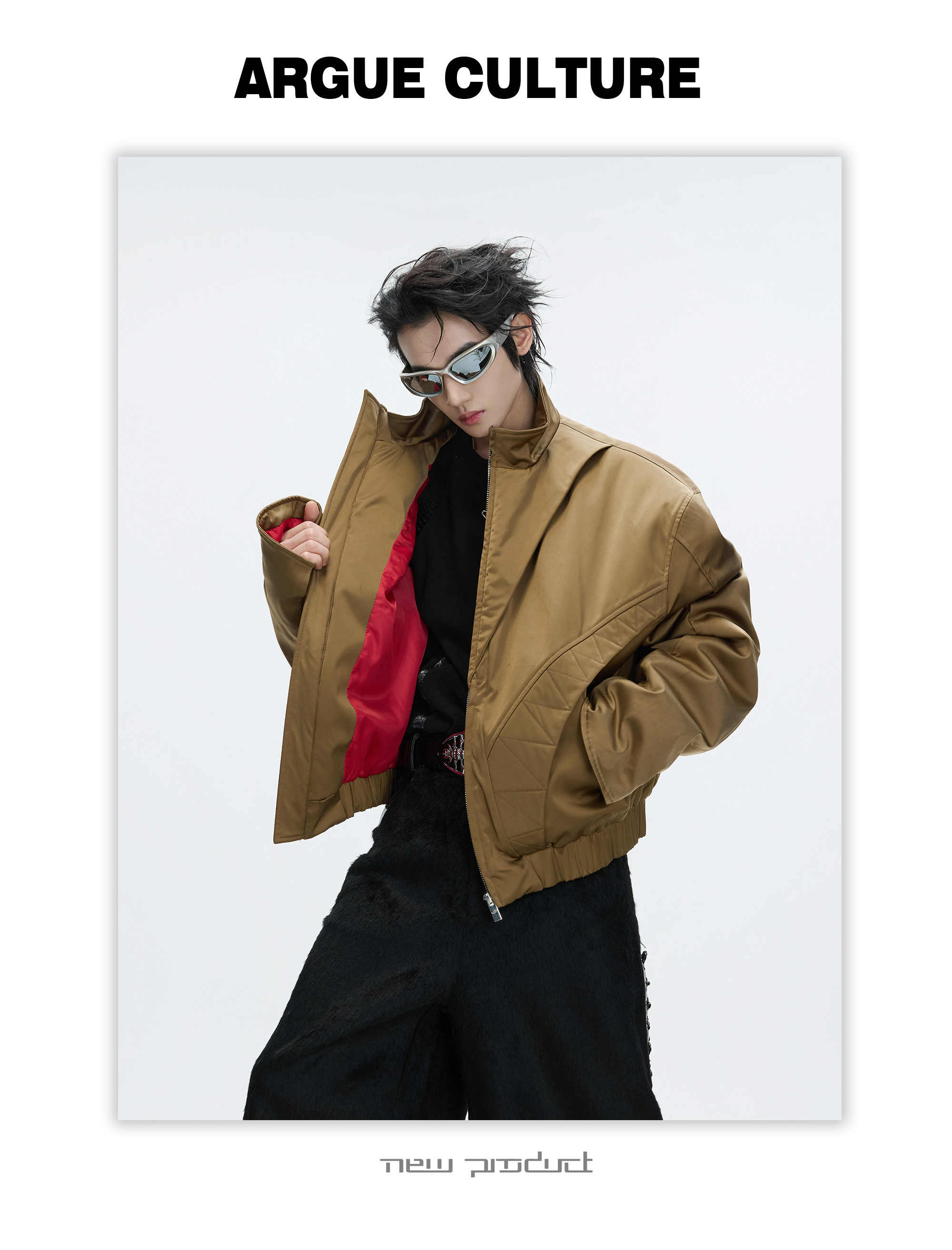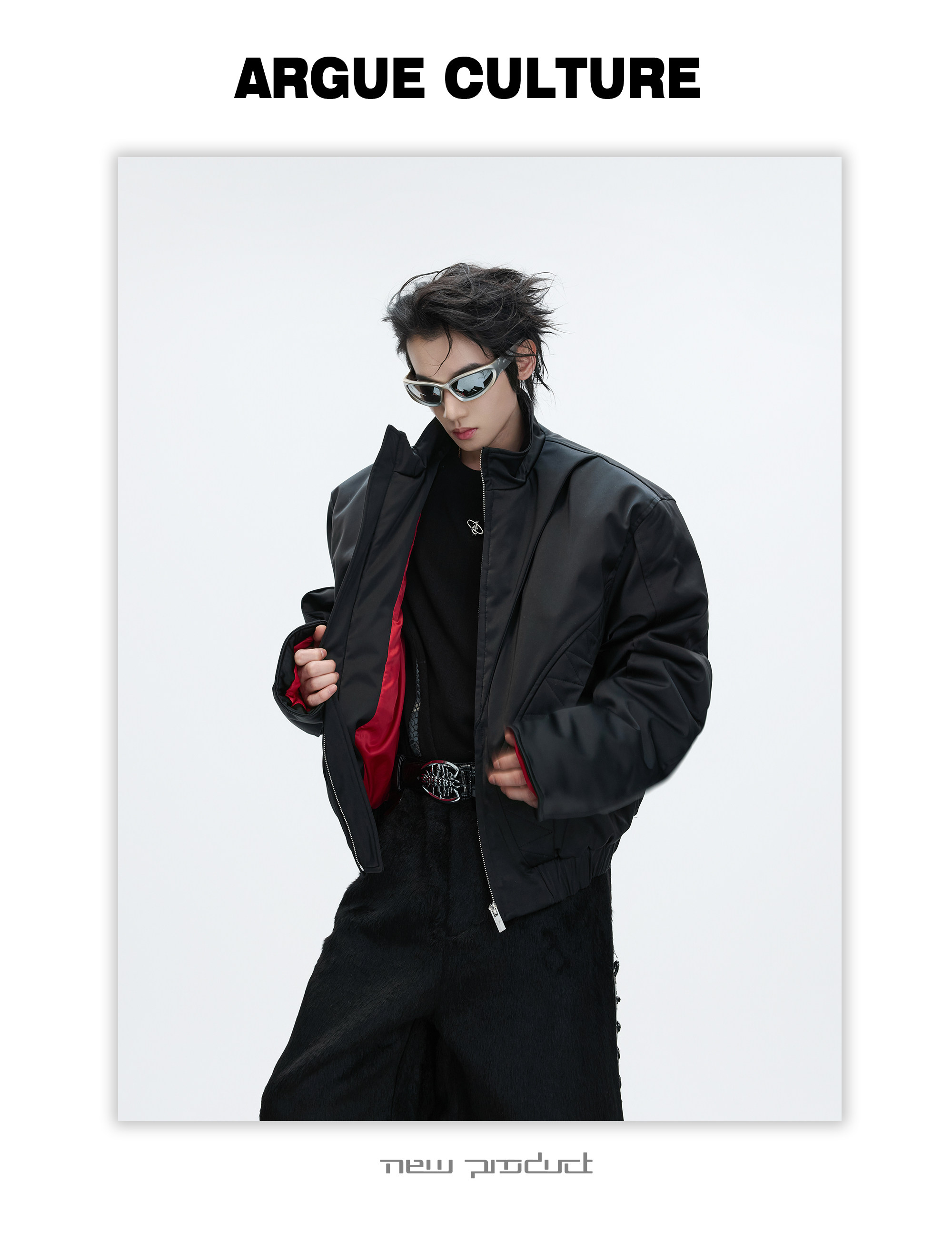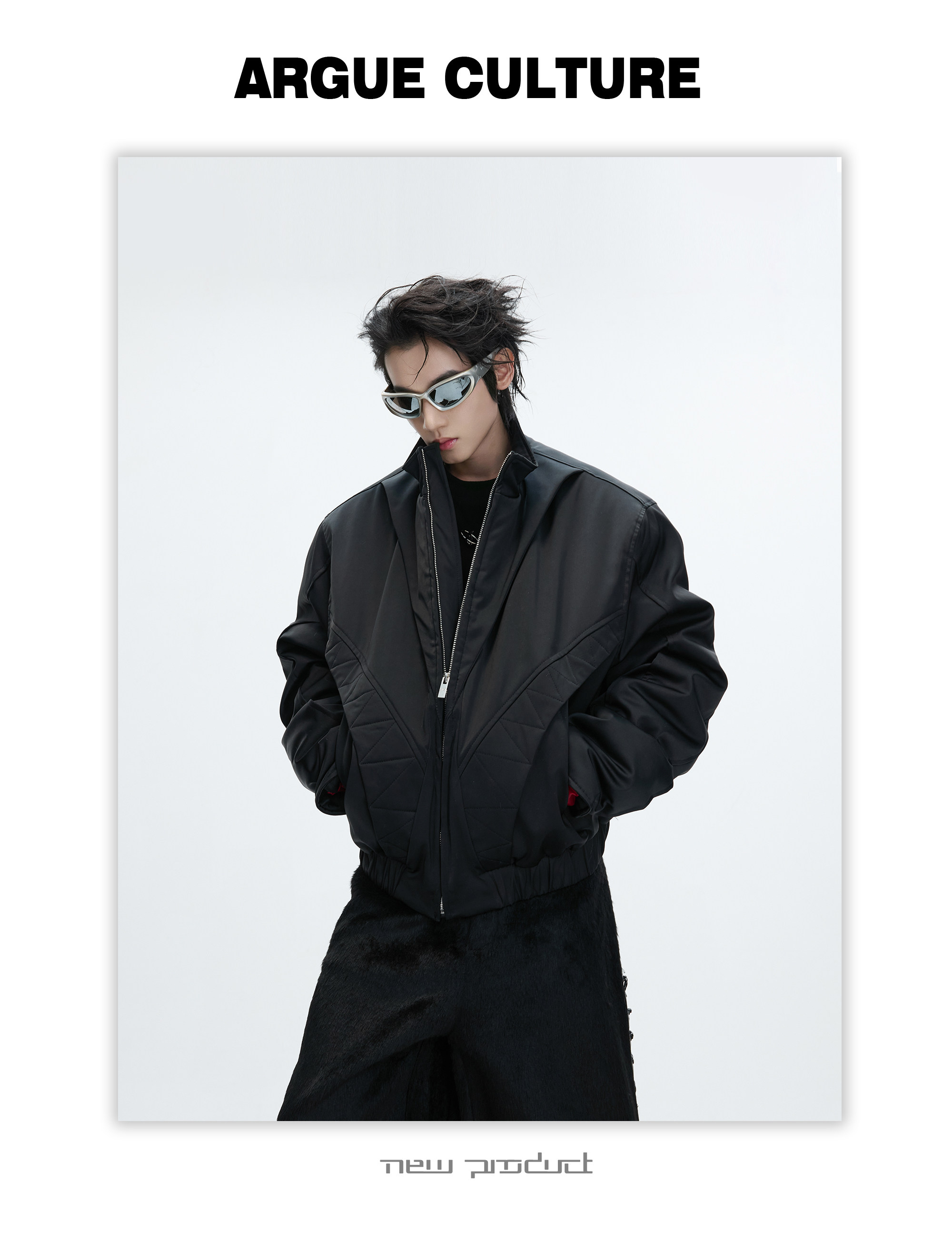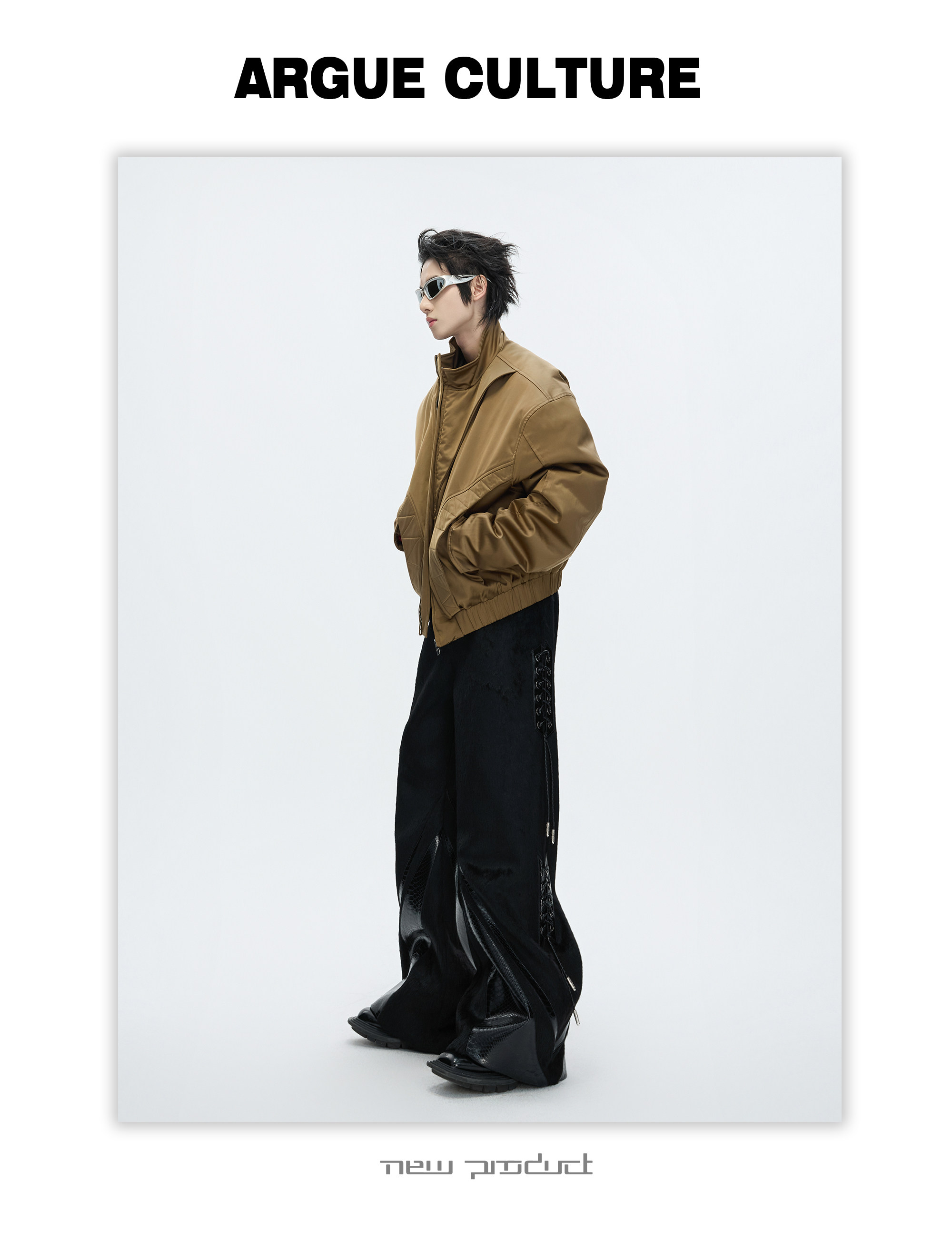 Structured Split Fleece Lining Stand Neck Jacket WN22611