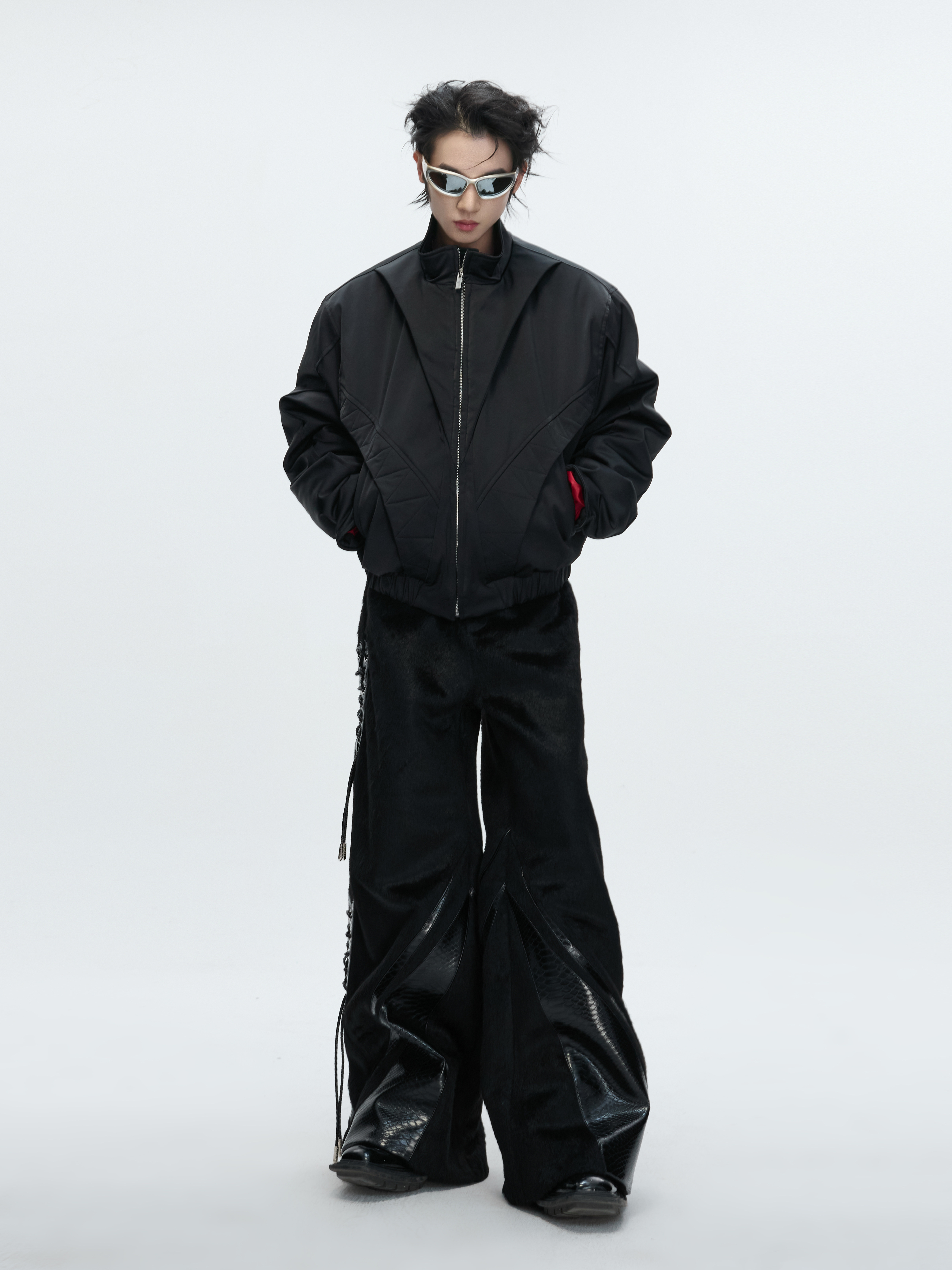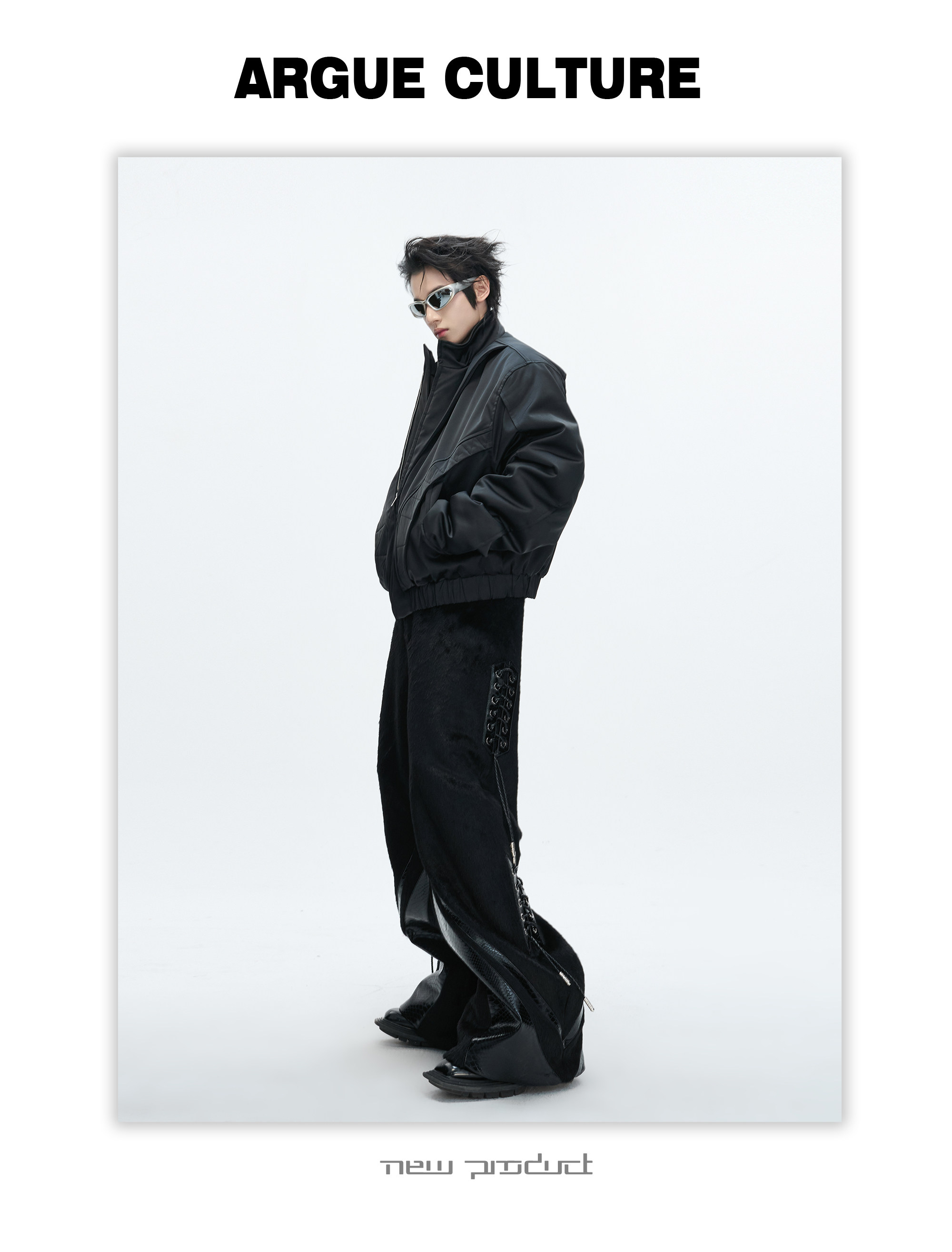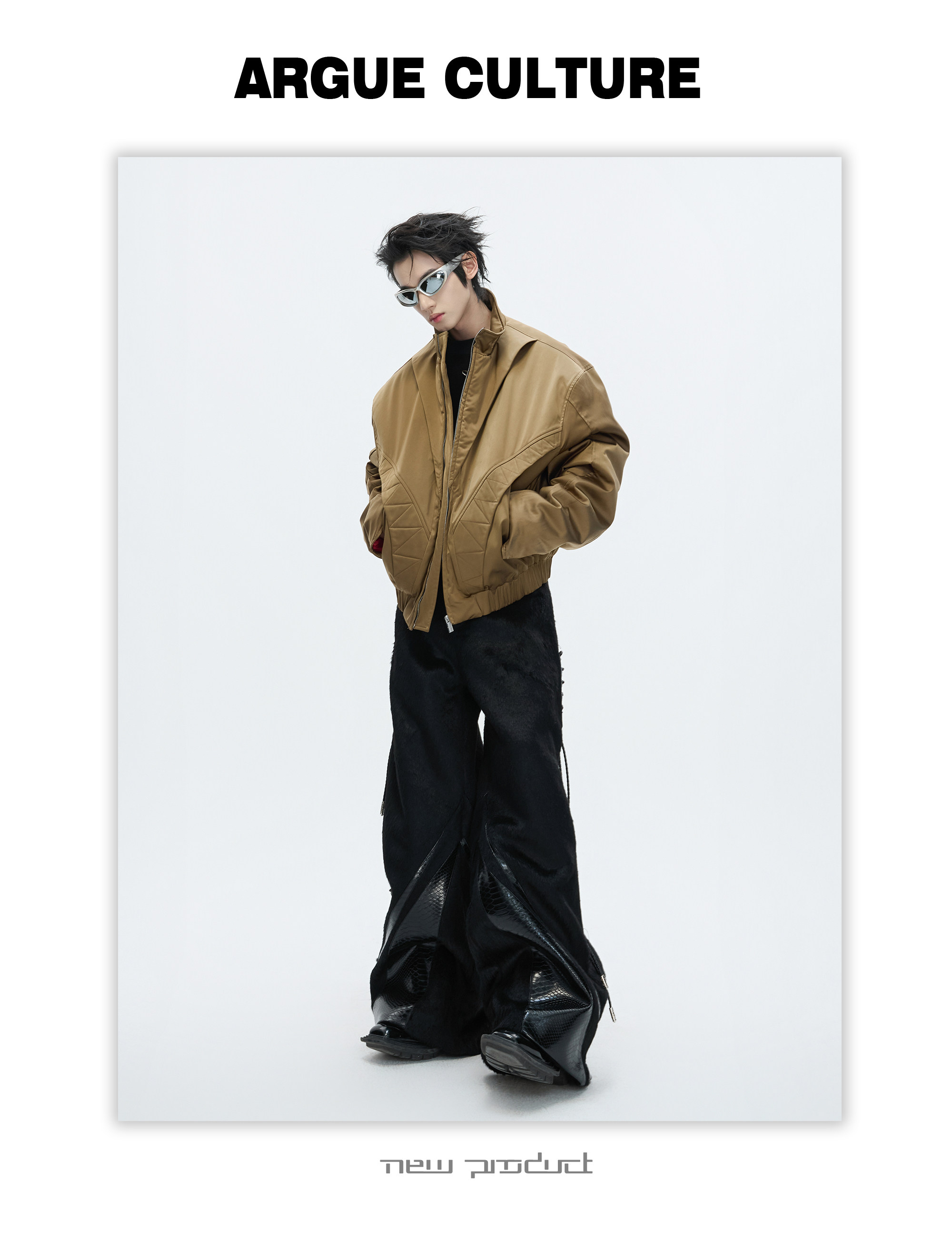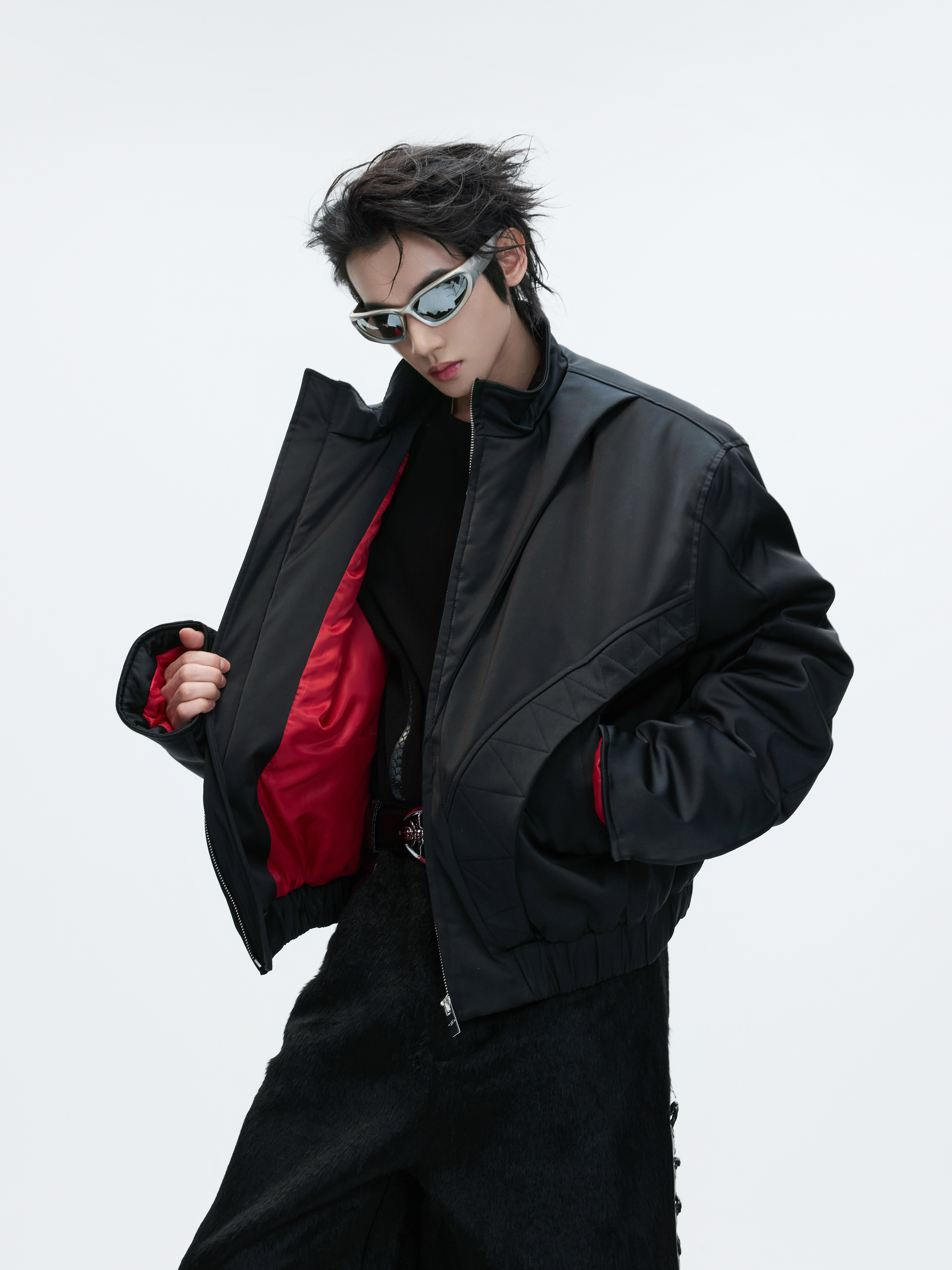 Structured Split Fleece Lining Stand Neck Jacket WN22611