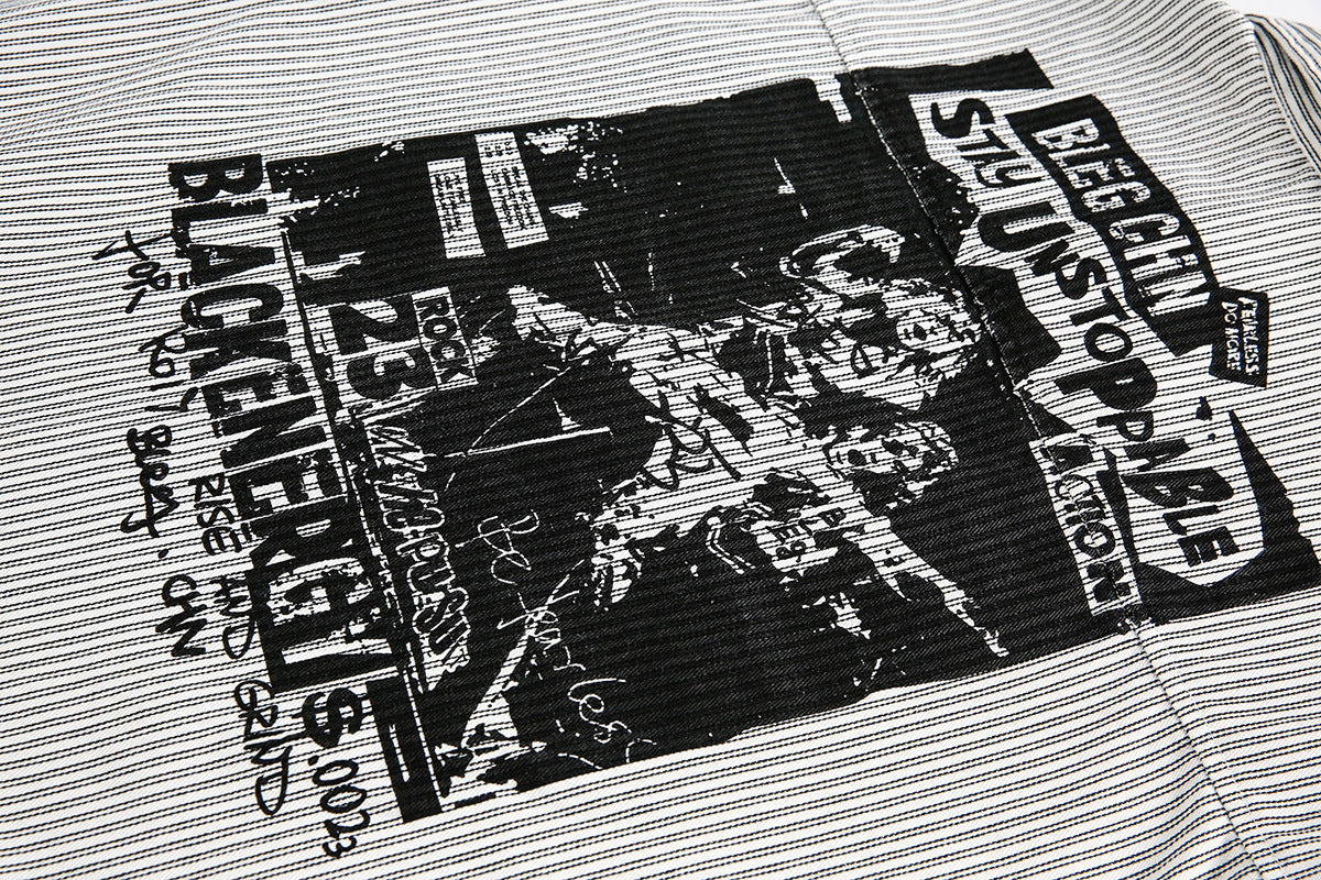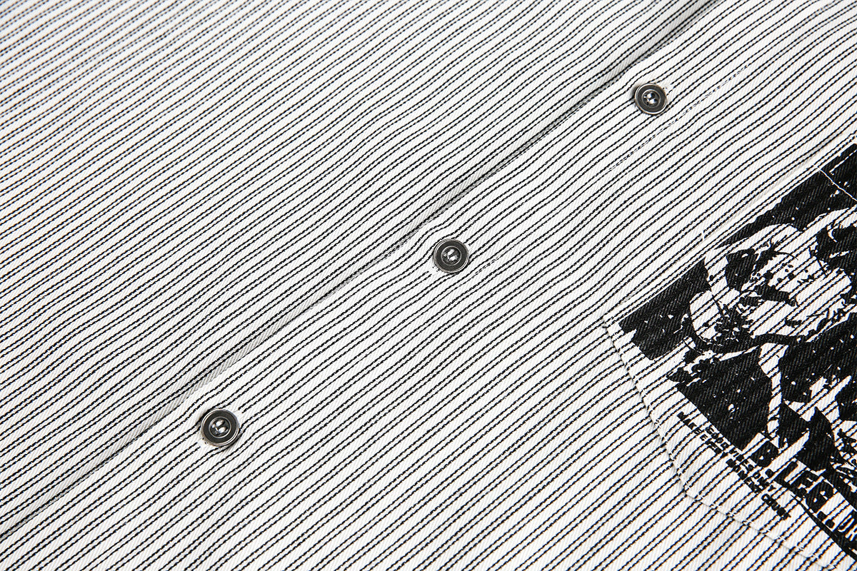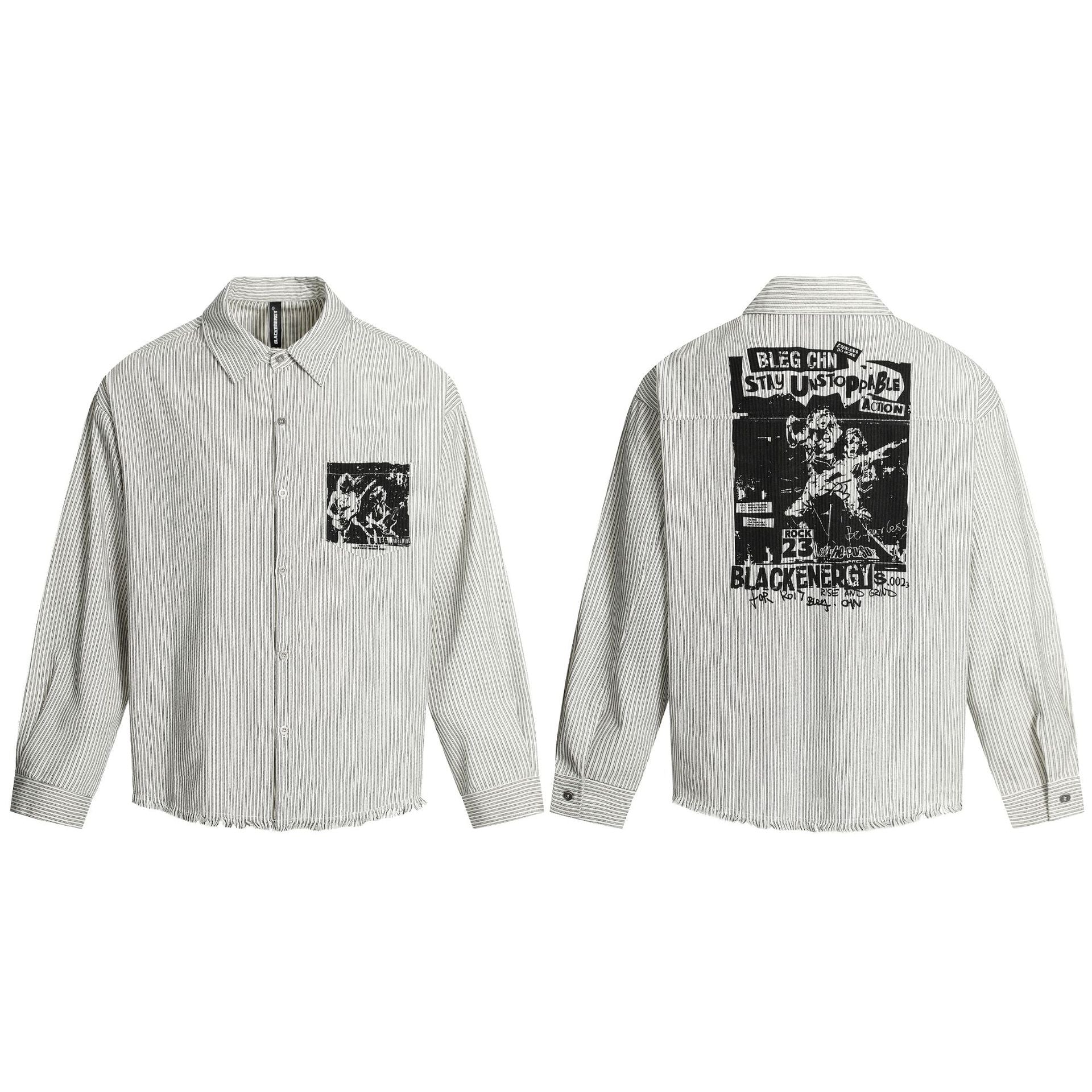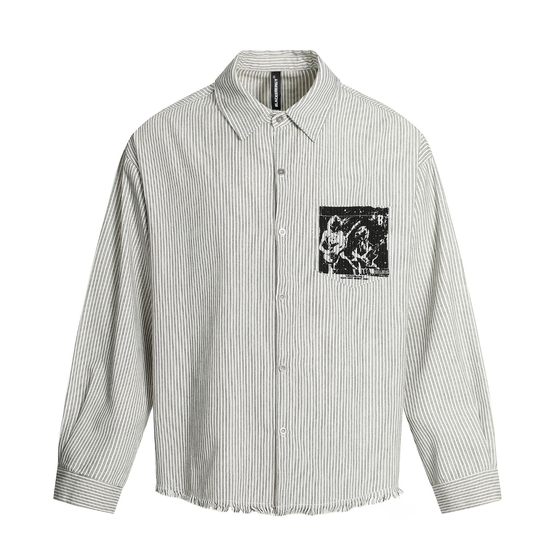 Graphic Print Stripe Frayed Long Sleeve Shirt WN23042