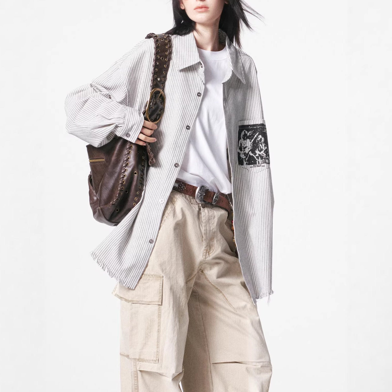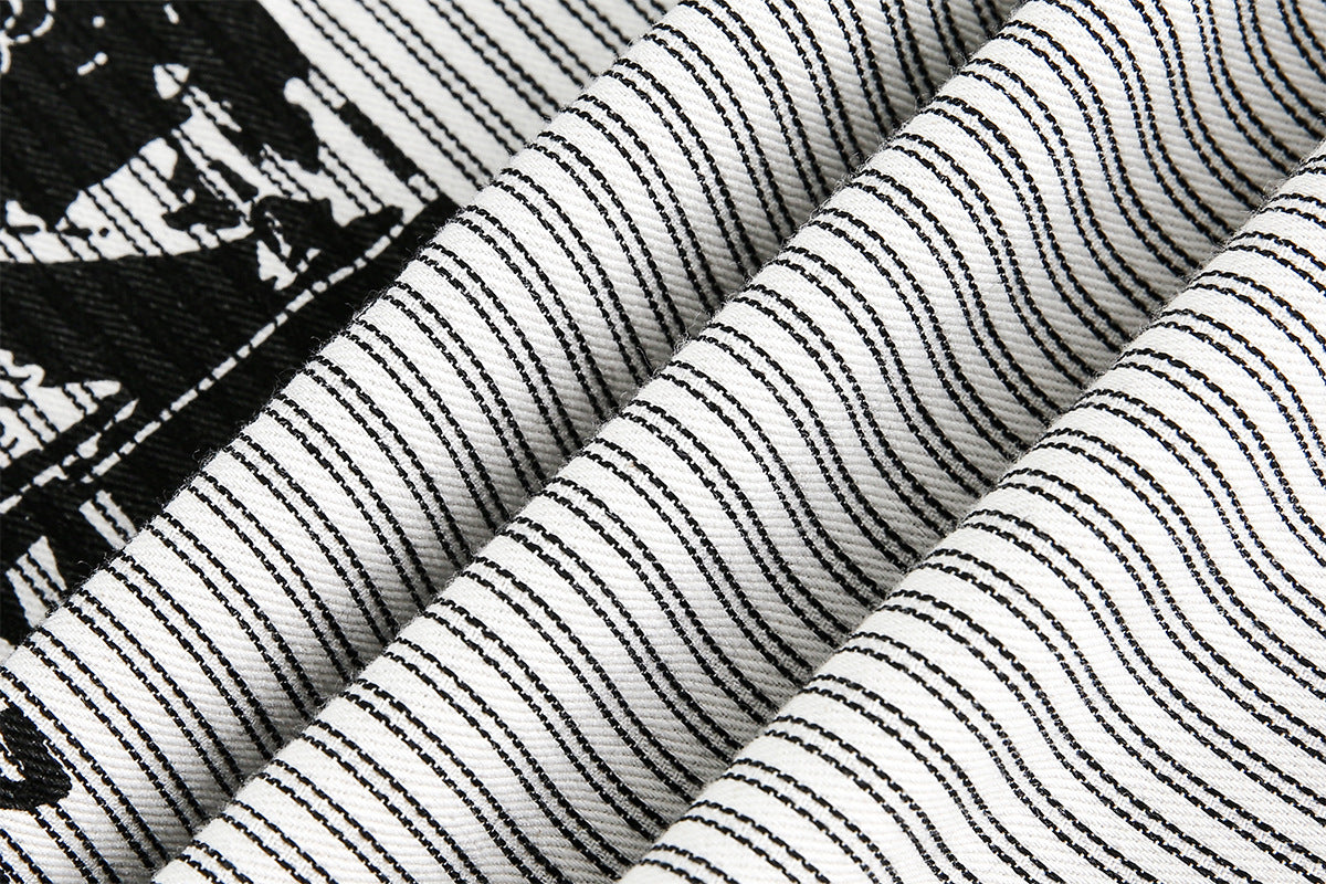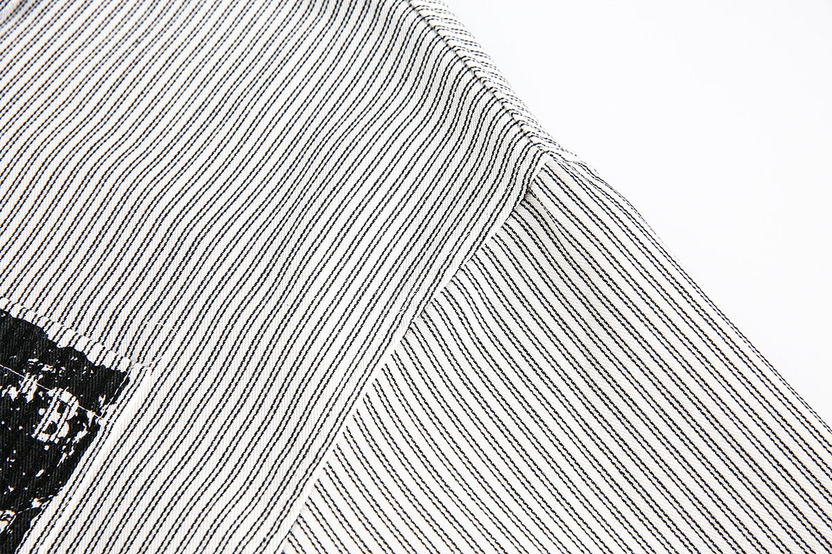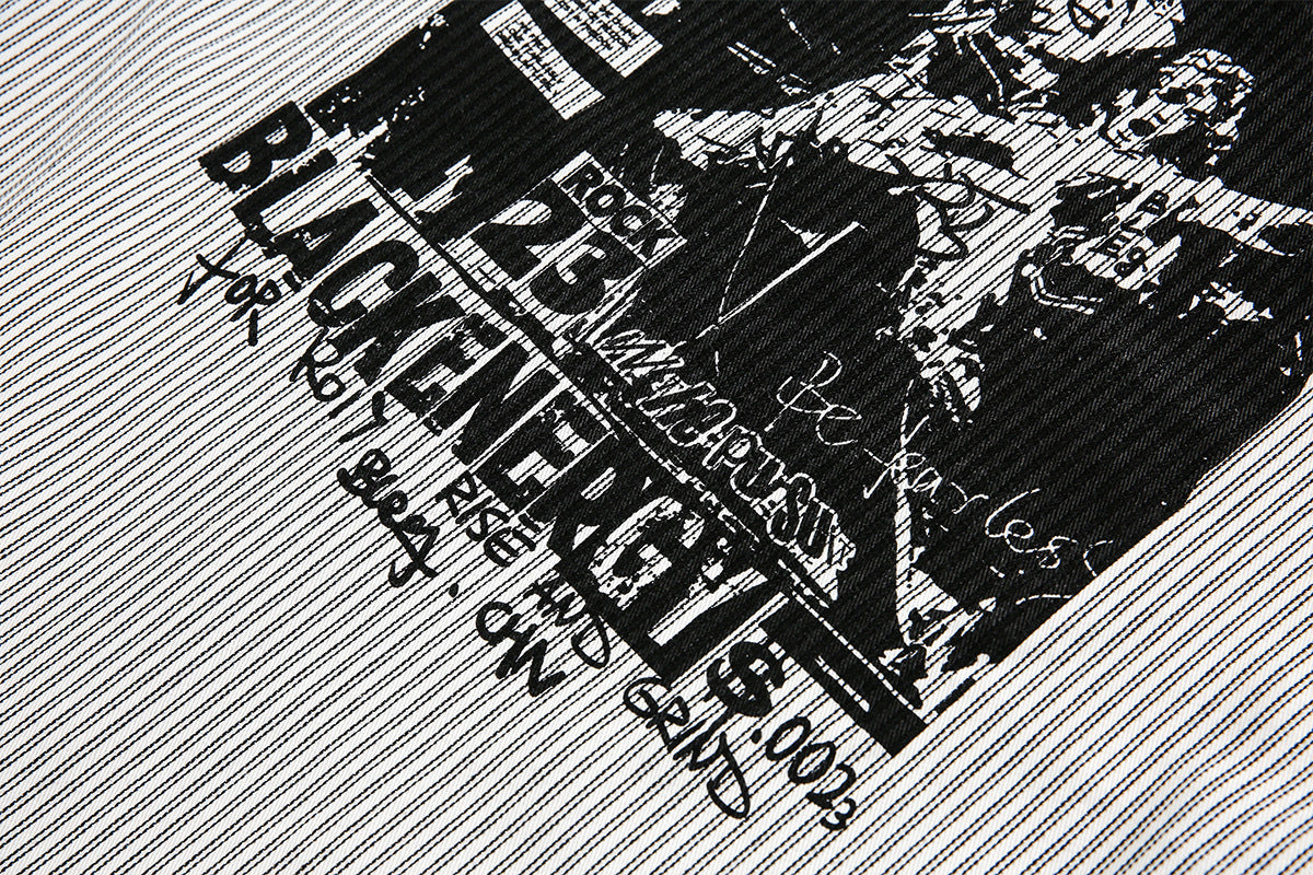 Graphic Print Stripe Frayed Long Sleeve Shirt WN23042
