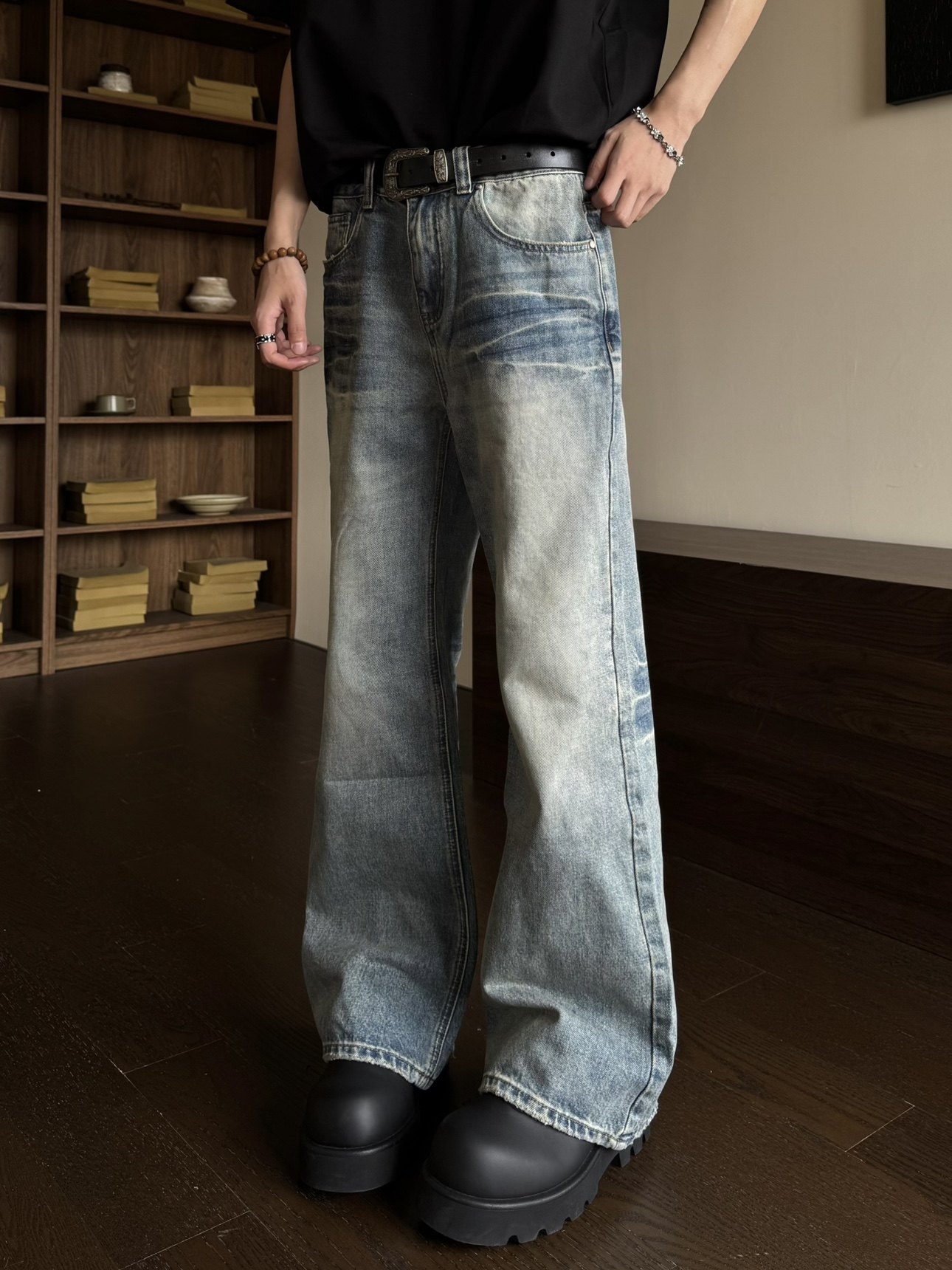 Washed Lightning Pattern Wide Leg Denim Jeans WN23159