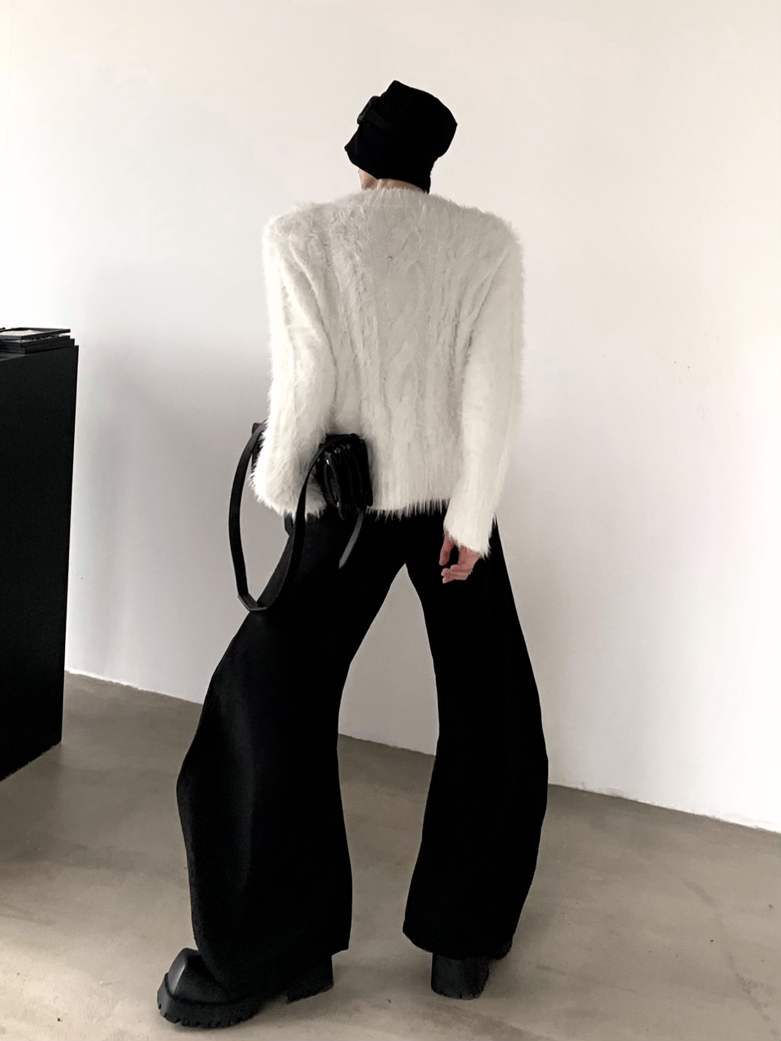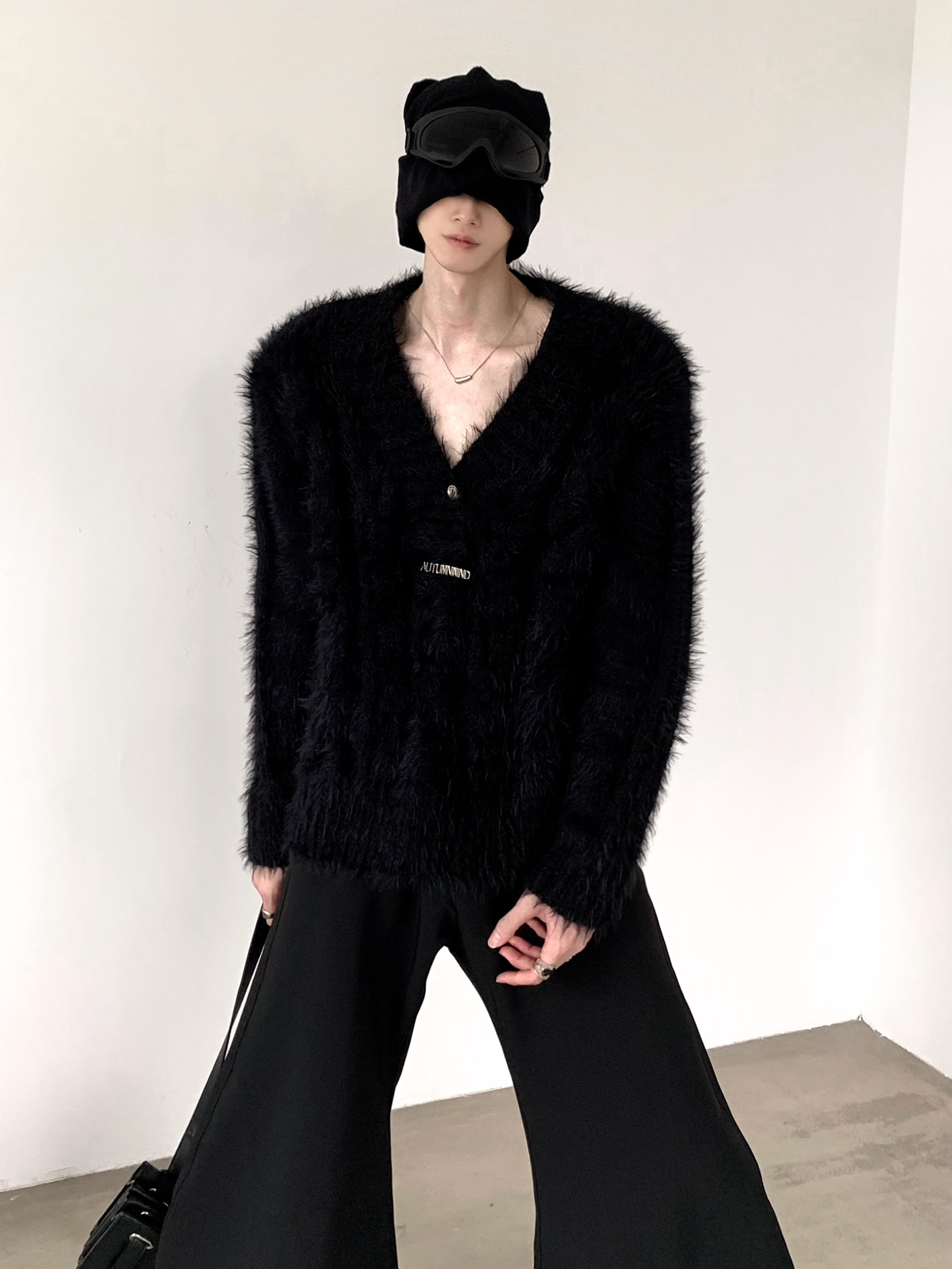 V-neck Fake Fur Oversize Knit Sweater WN9199