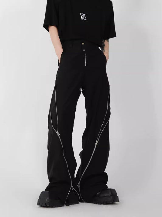 Zipper Split Wide-Leg Straight Denim Jeans WN17539