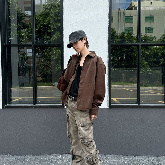 Suede Oversize Long Sleeve Shirt Jacket WN21171