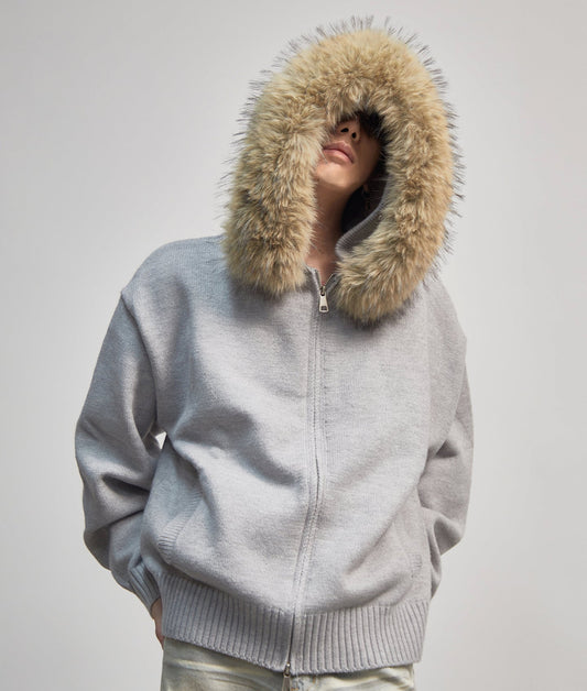 Zip-Up Oversize Fake Far Hoodie WN21178