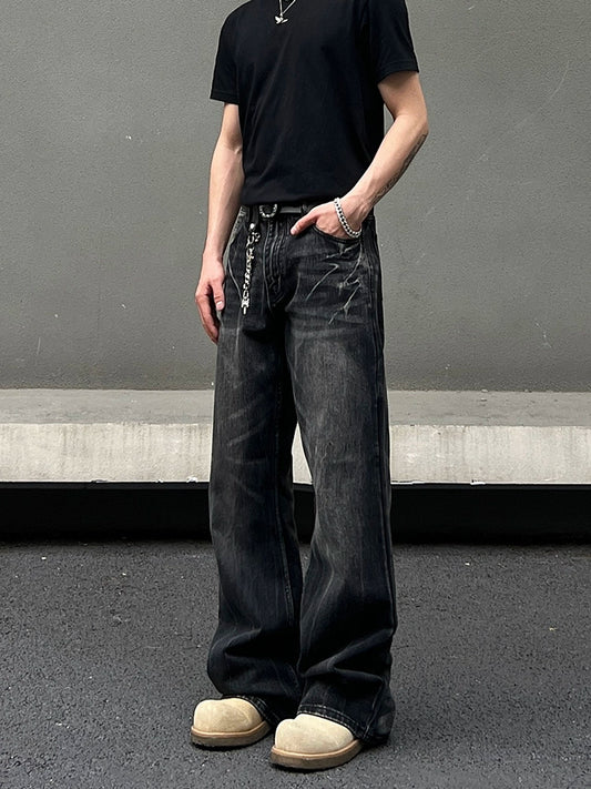 Mud-Dye Damage Design Flare Denim Jeans WN19396