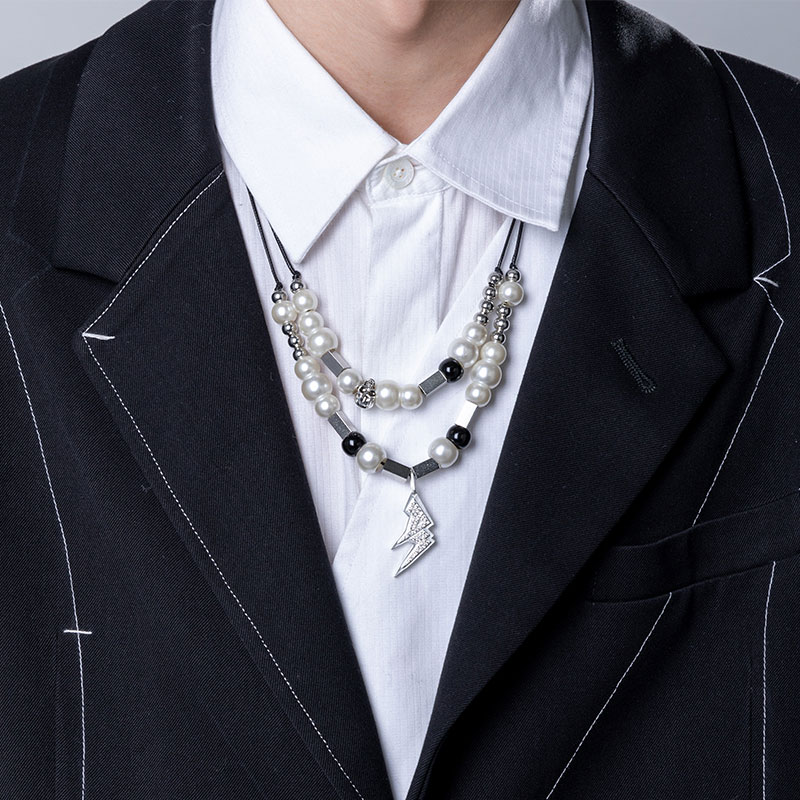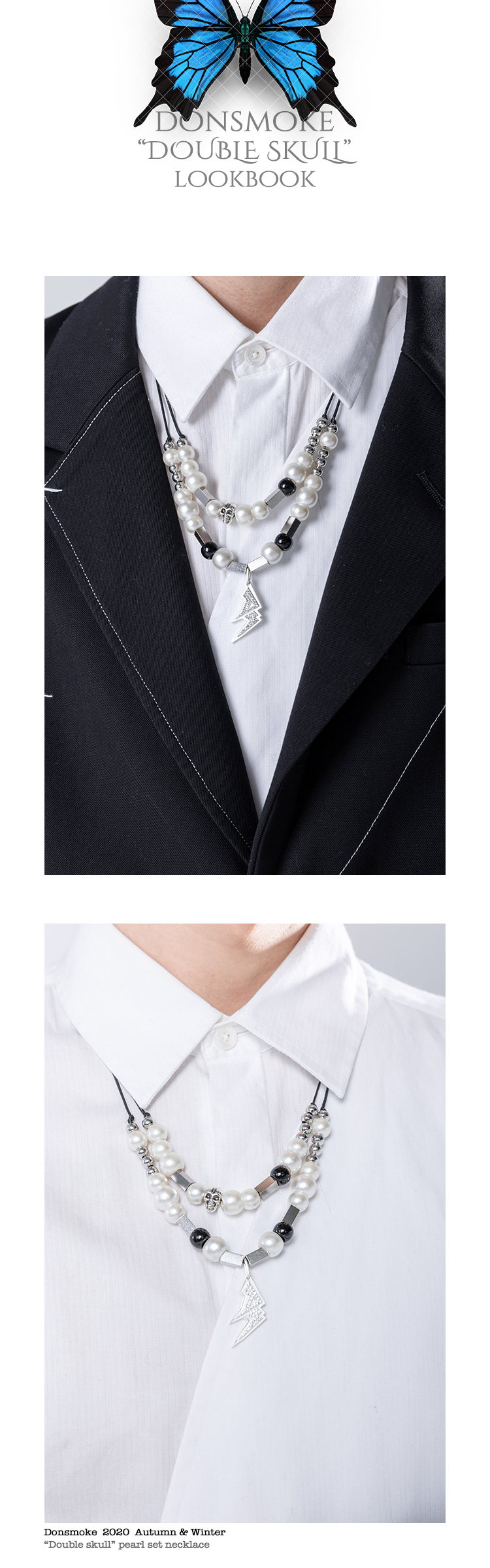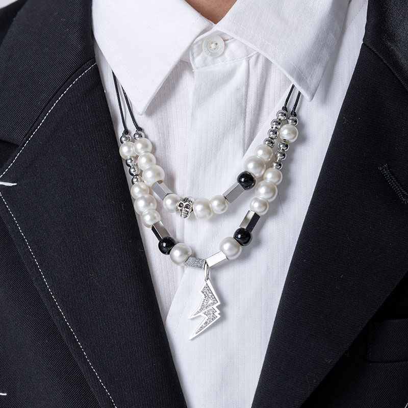 Lightning Skull Pearl Double-Layer Necklace WN10068