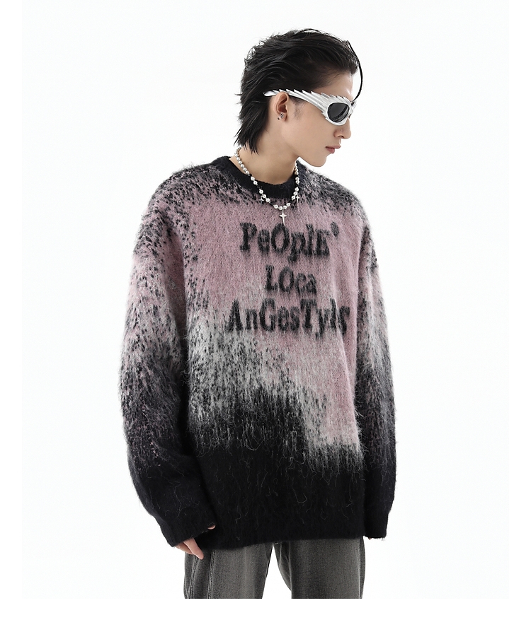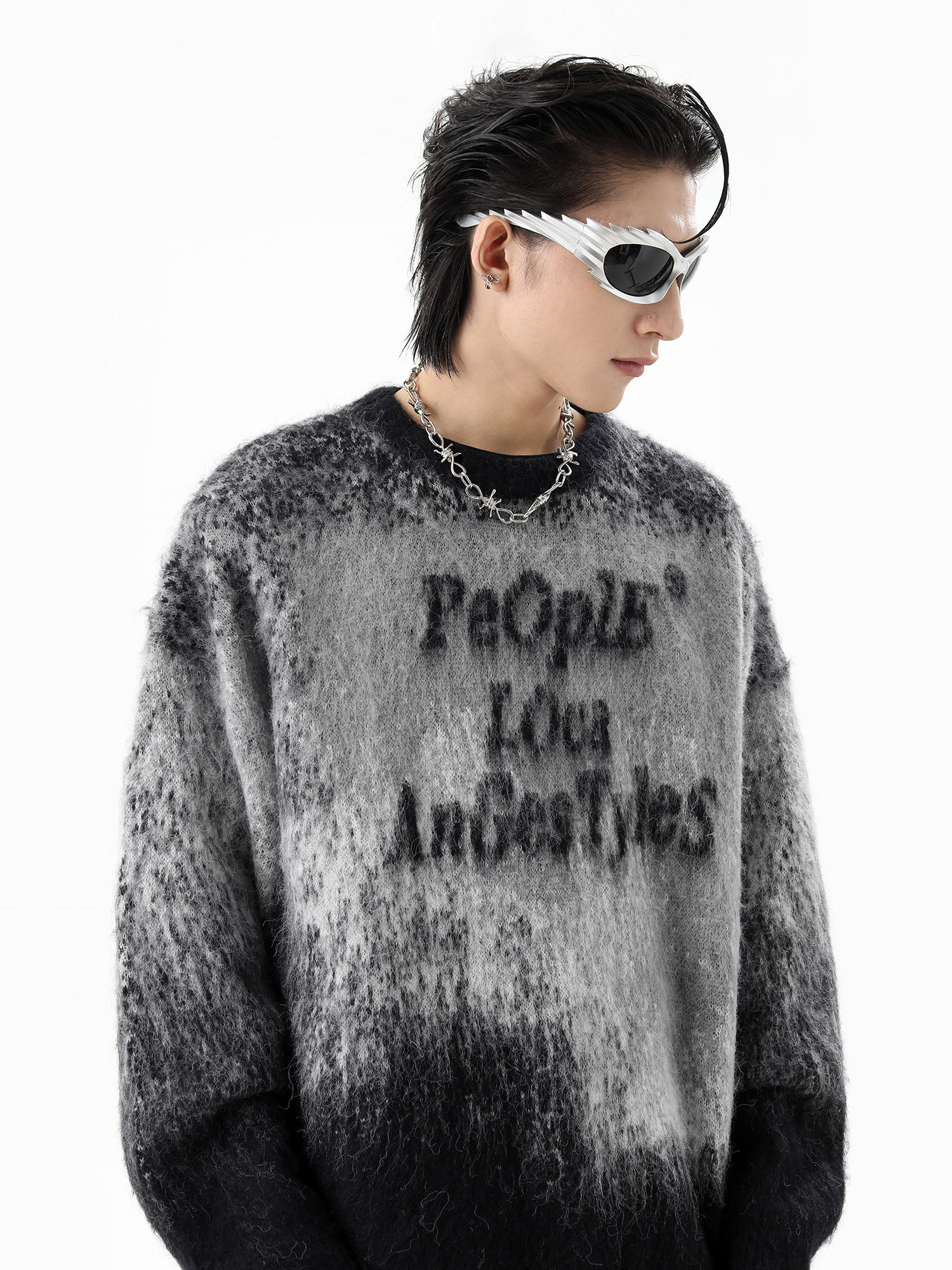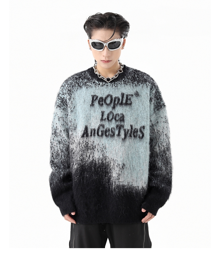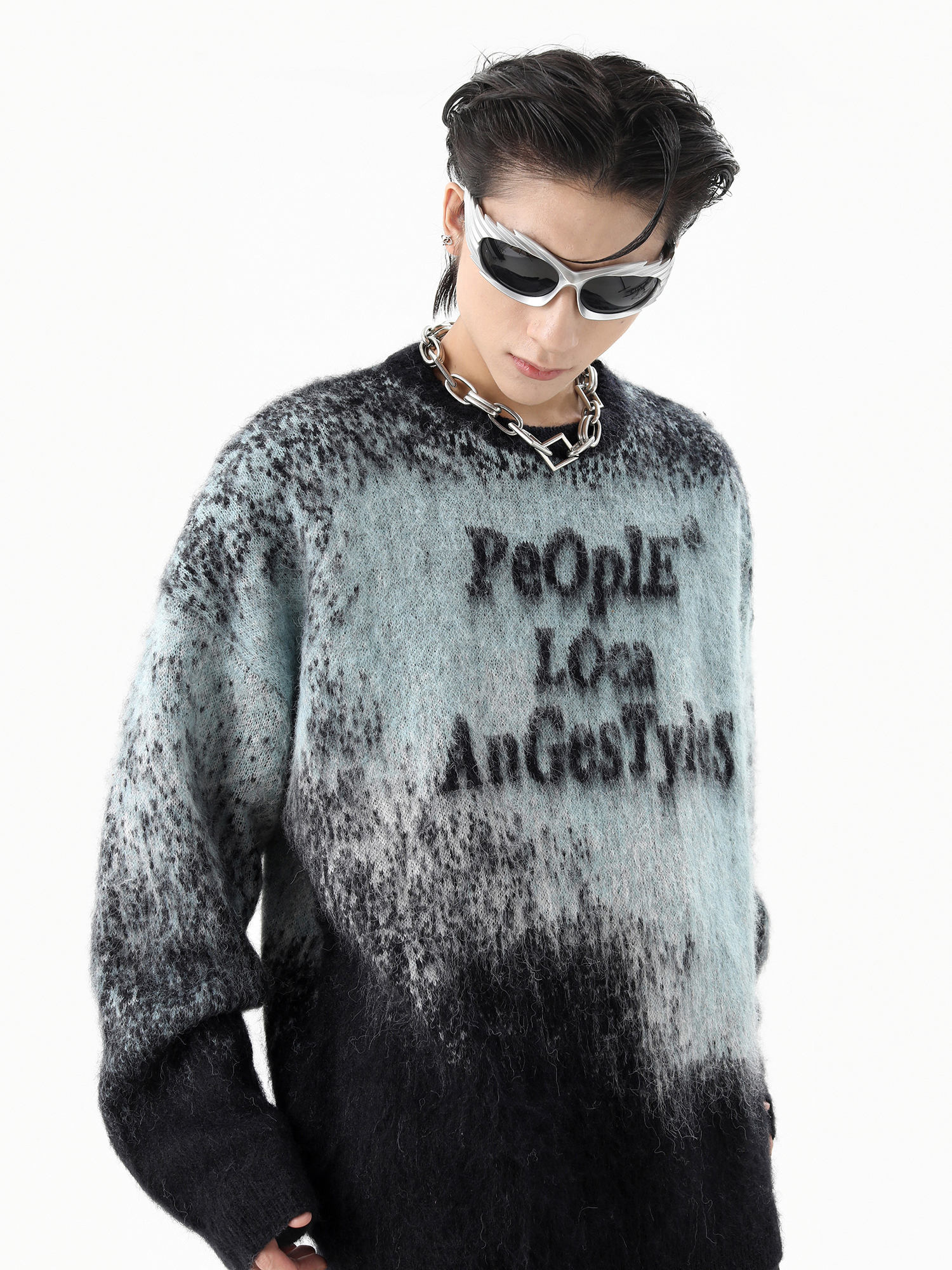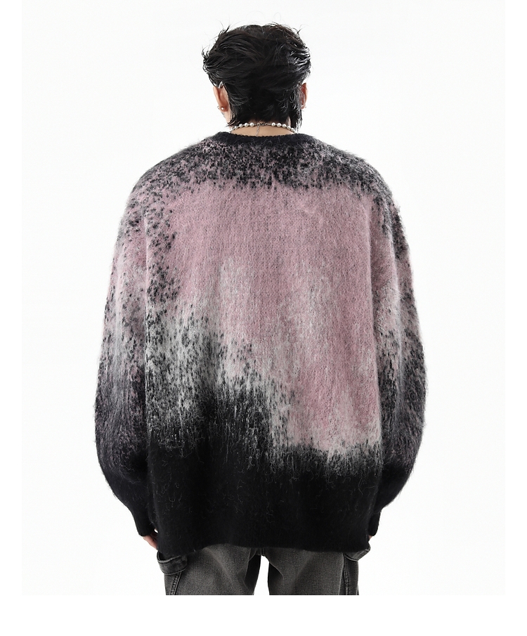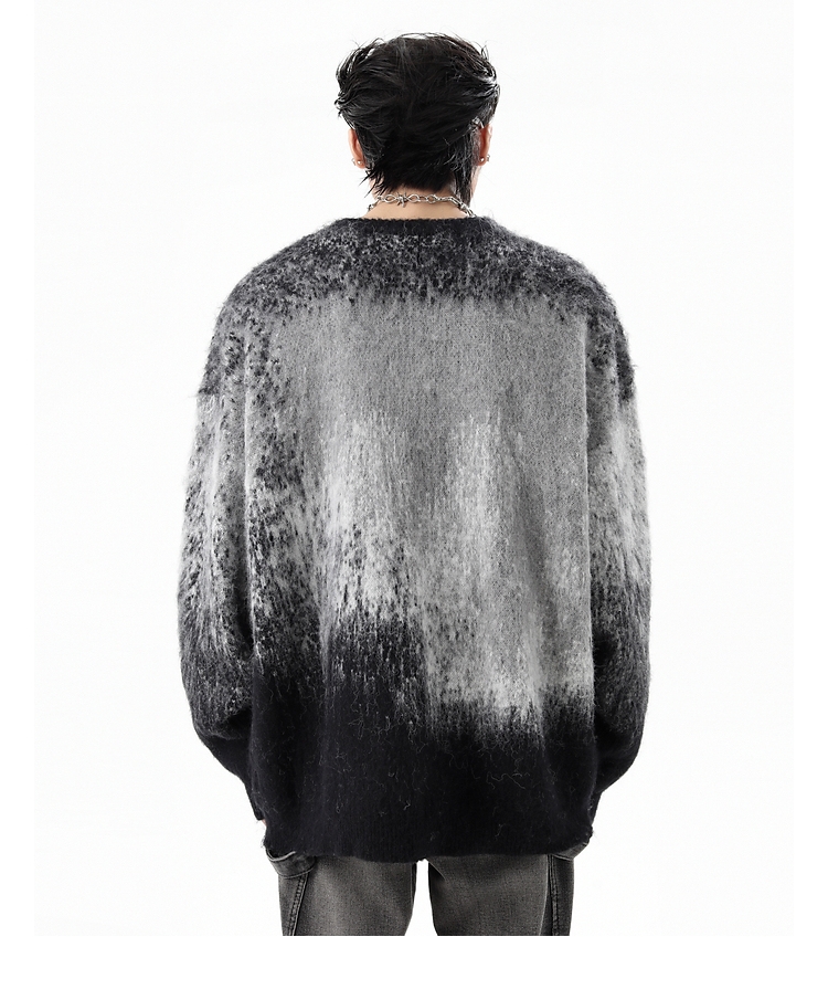 Gradient Shaggy Jacquard Knit Sweater WN10470