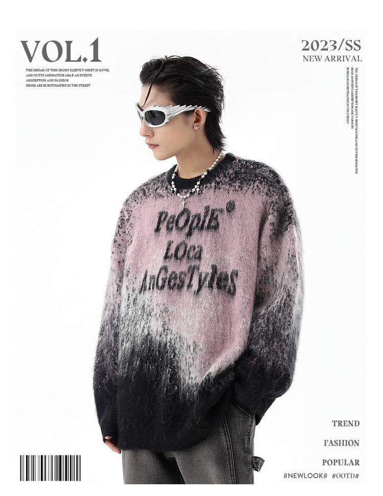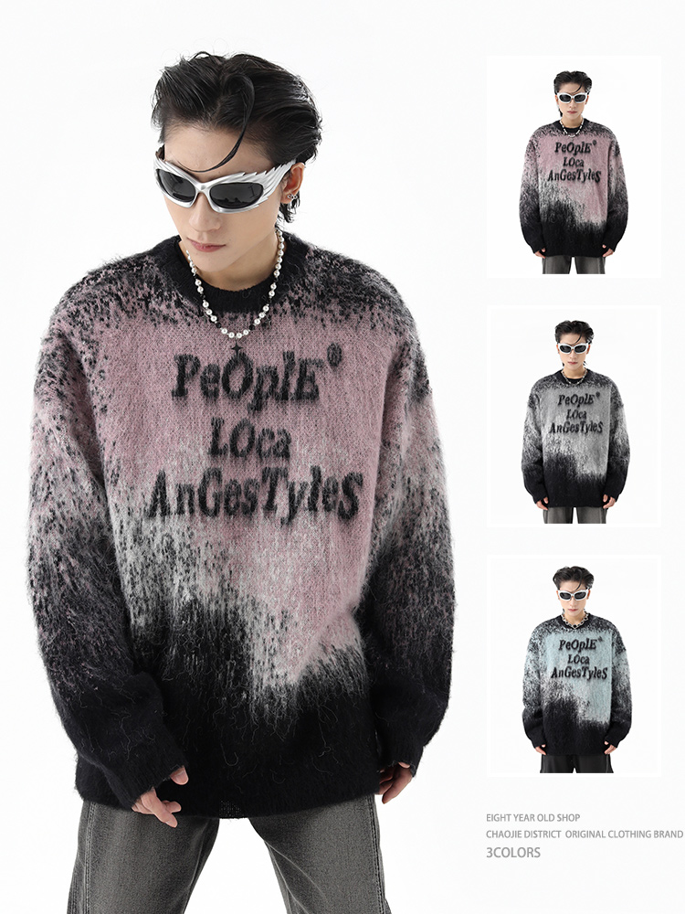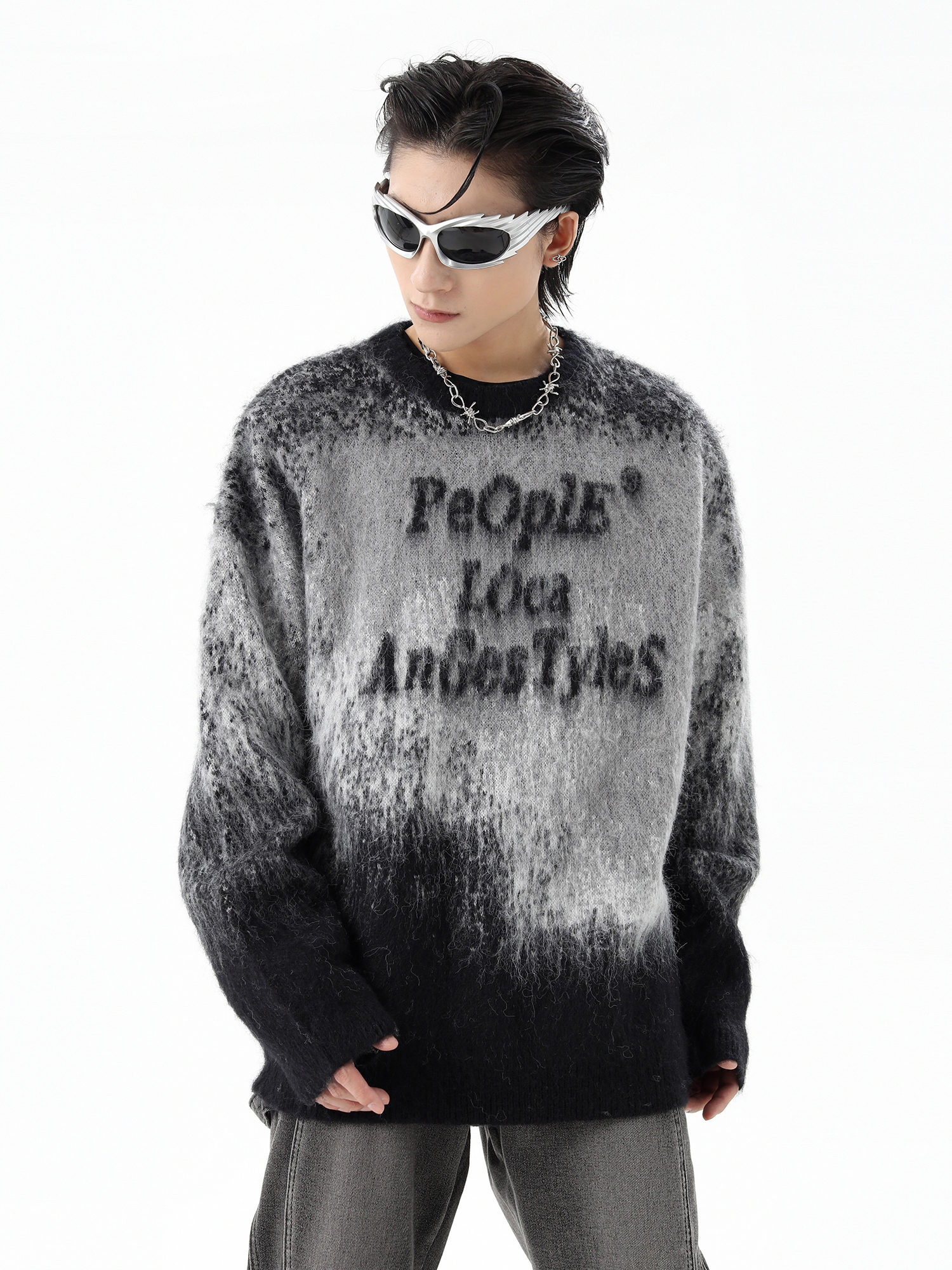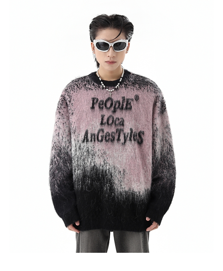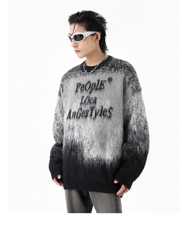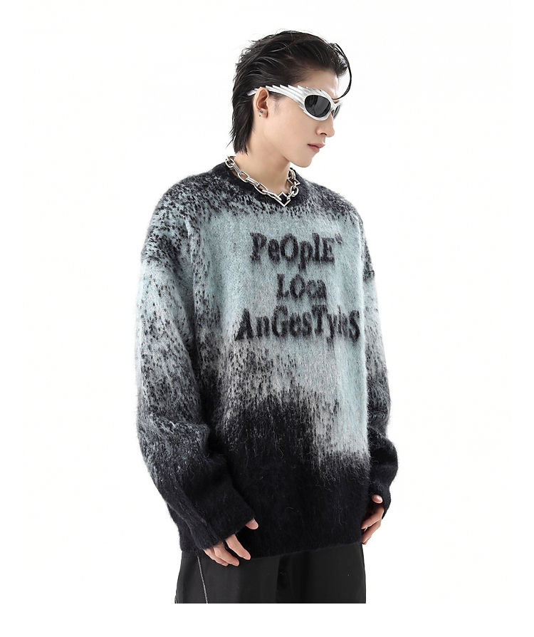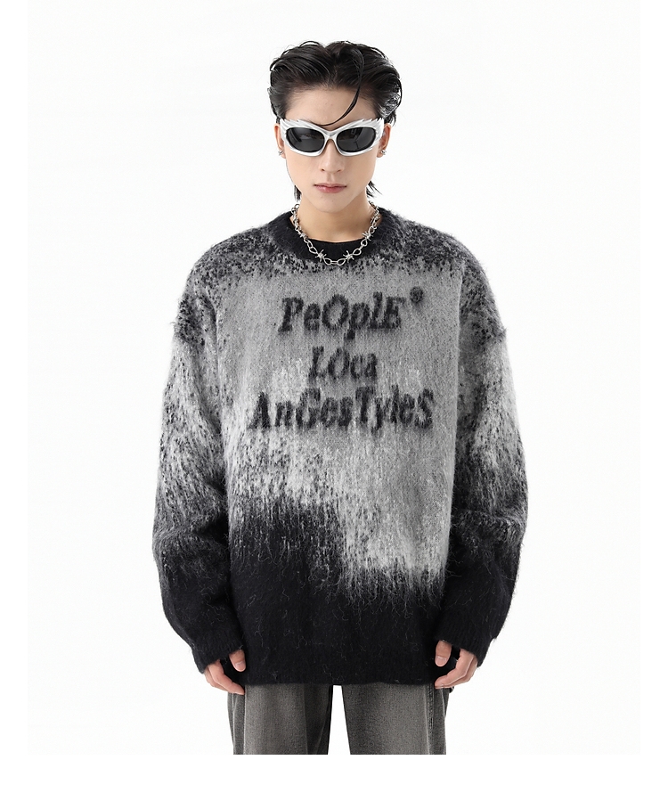 Gradient Shaggy Jacquard Knit Sweater WN10470
