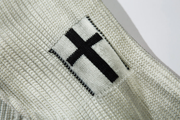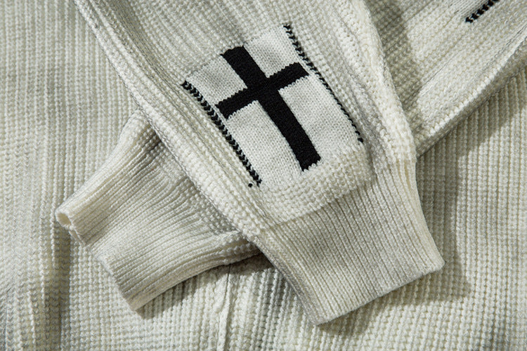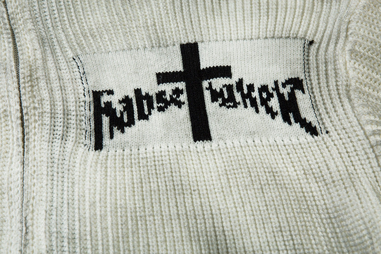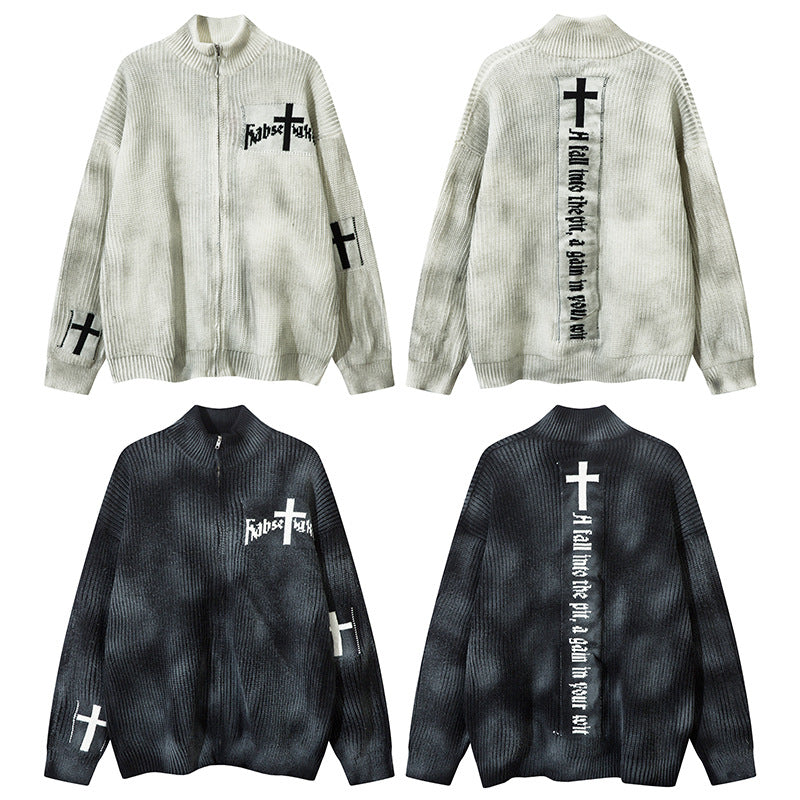 Spray-Paint Tie-Dye Cross Stand Neck Zipper Knit Cardigan WN11238