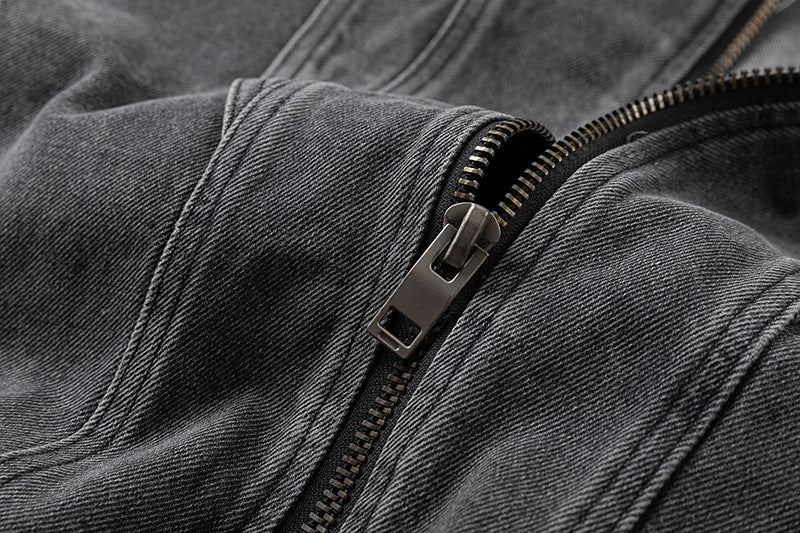 Washed Short Zipper Denim Jacket WN11291
