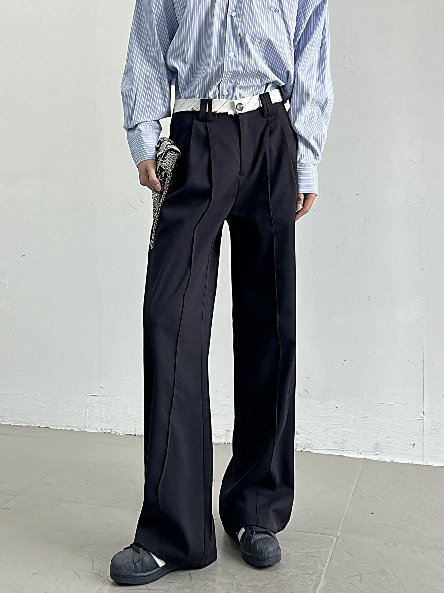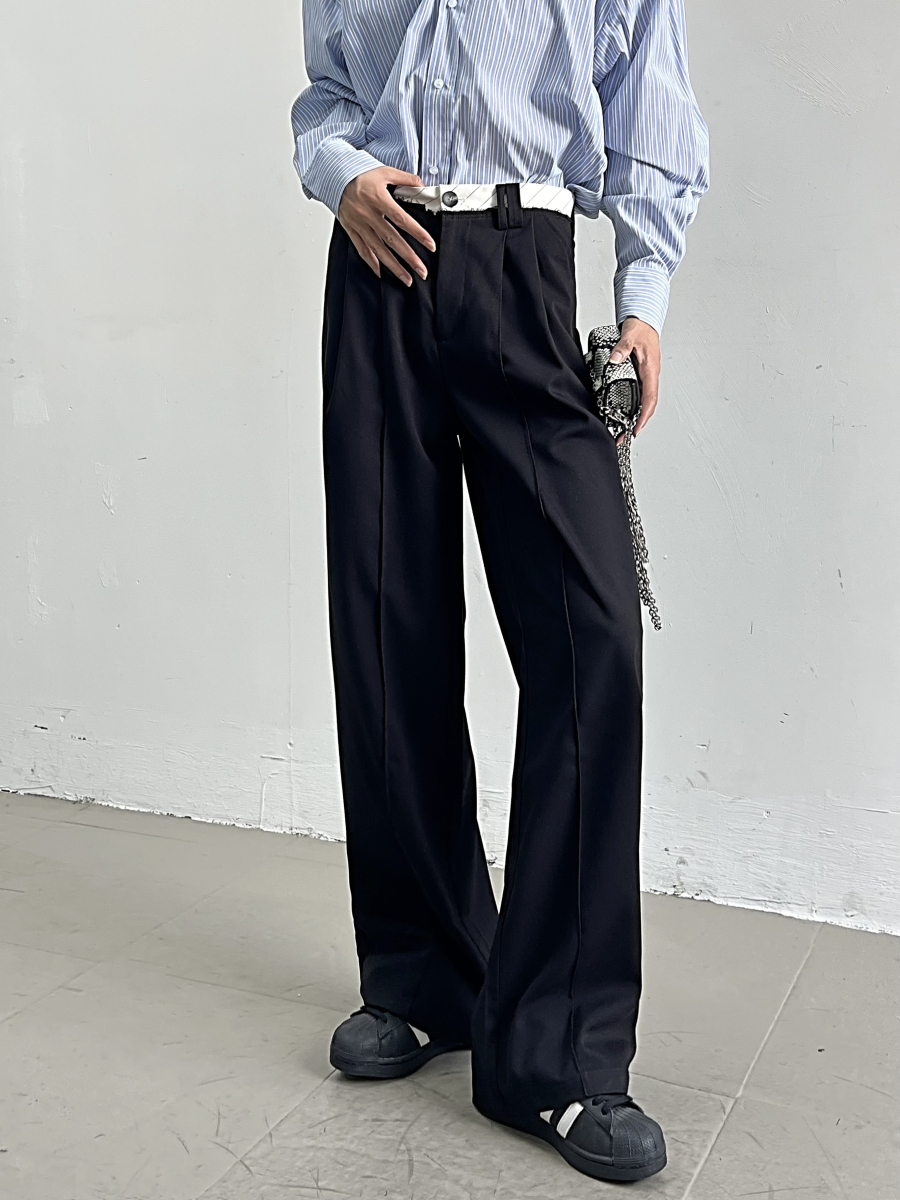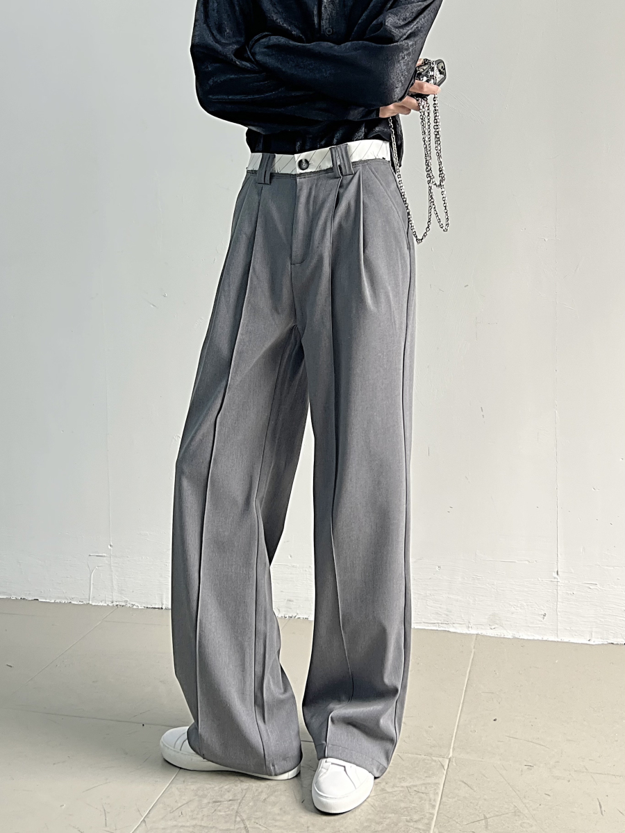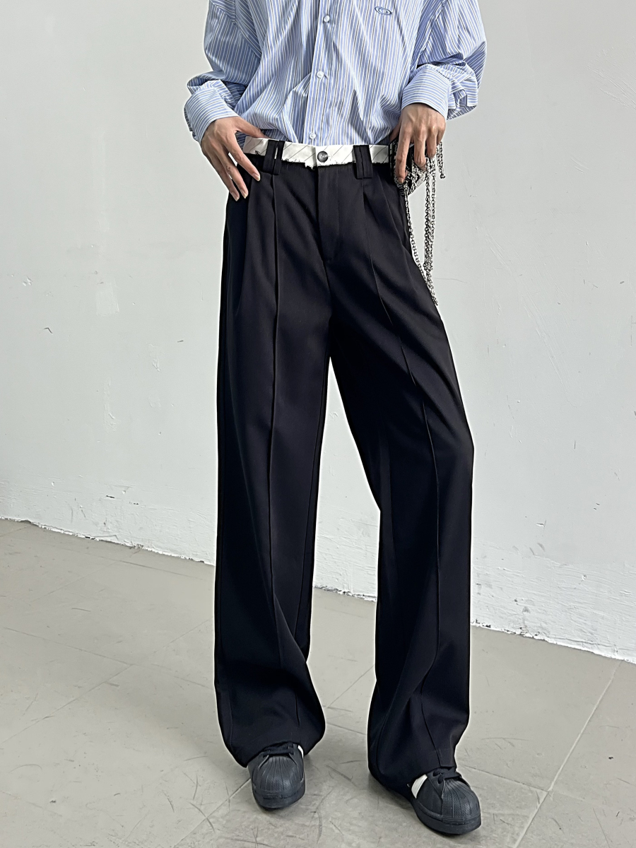 Contrast-Waist Wide Leg Straight Trousers WN11673