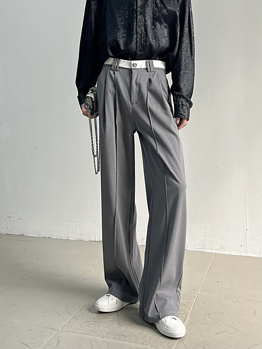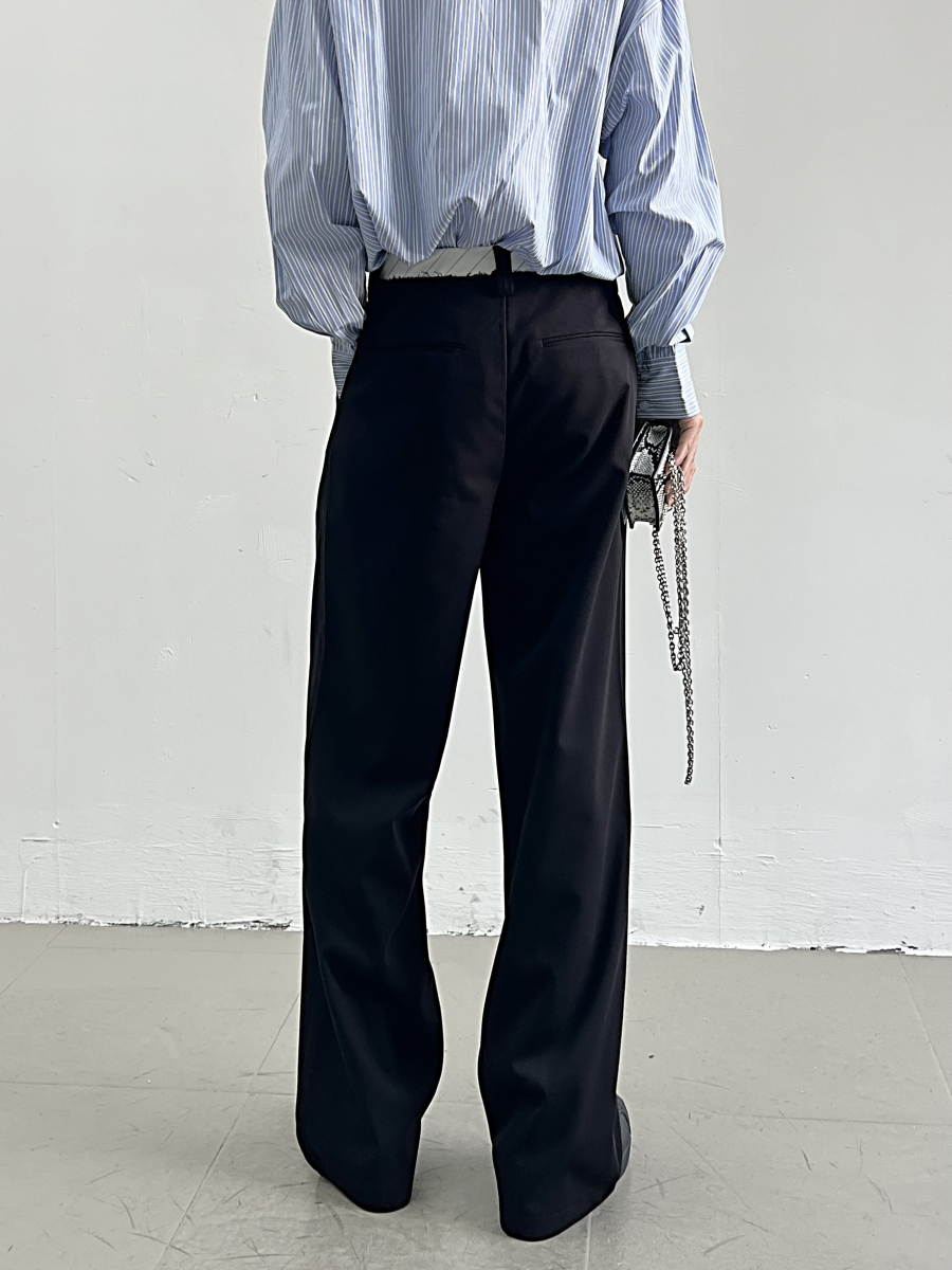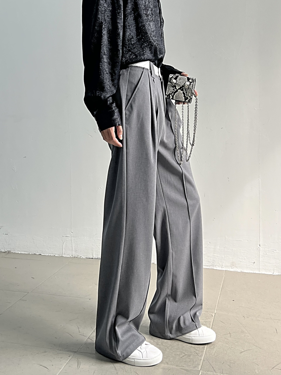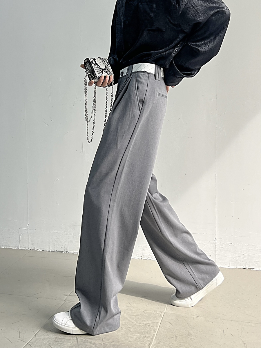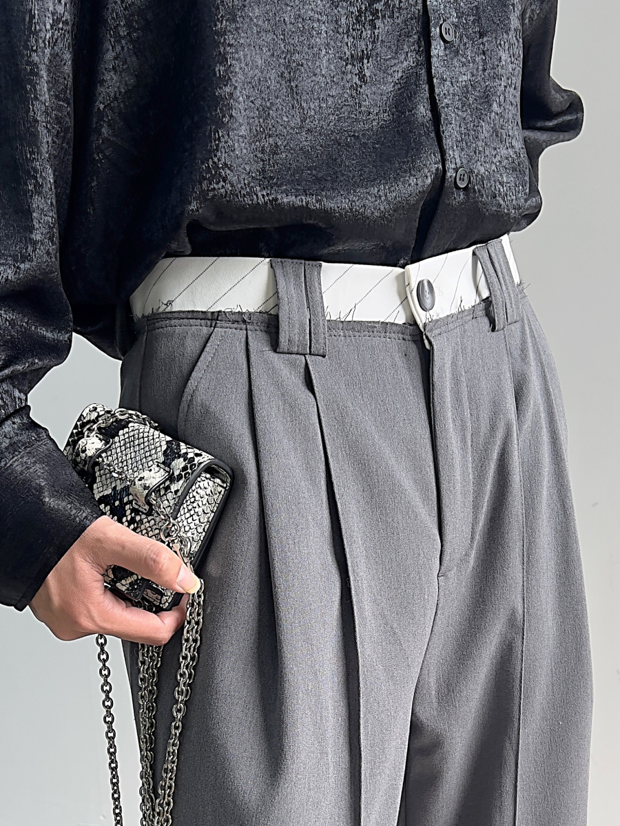 Contrast-Waist Wide Leg Straight Trousers WN11673