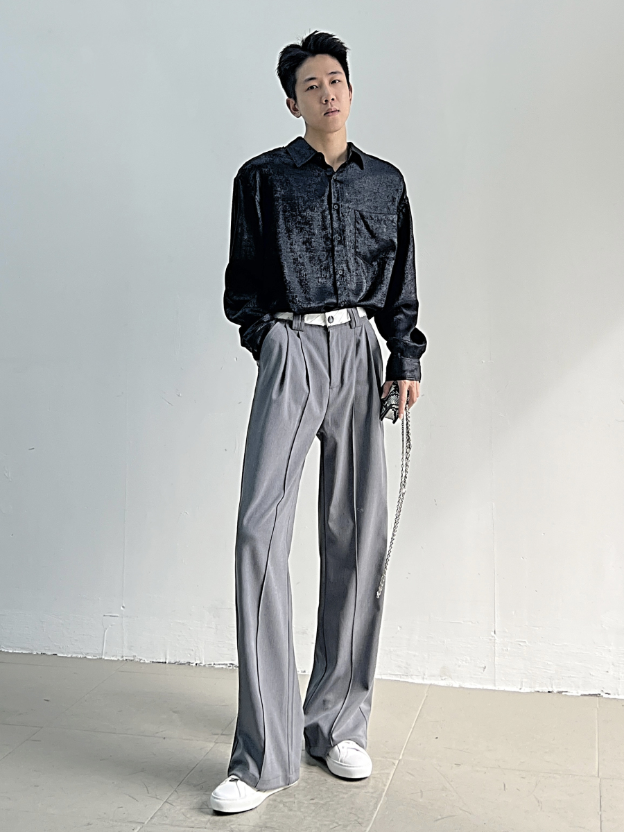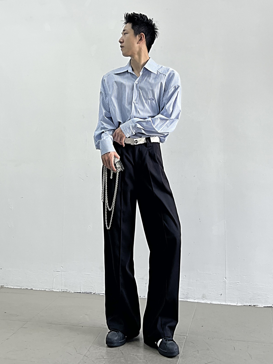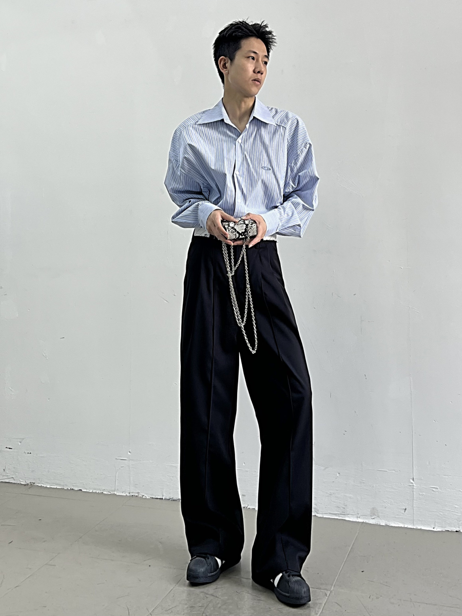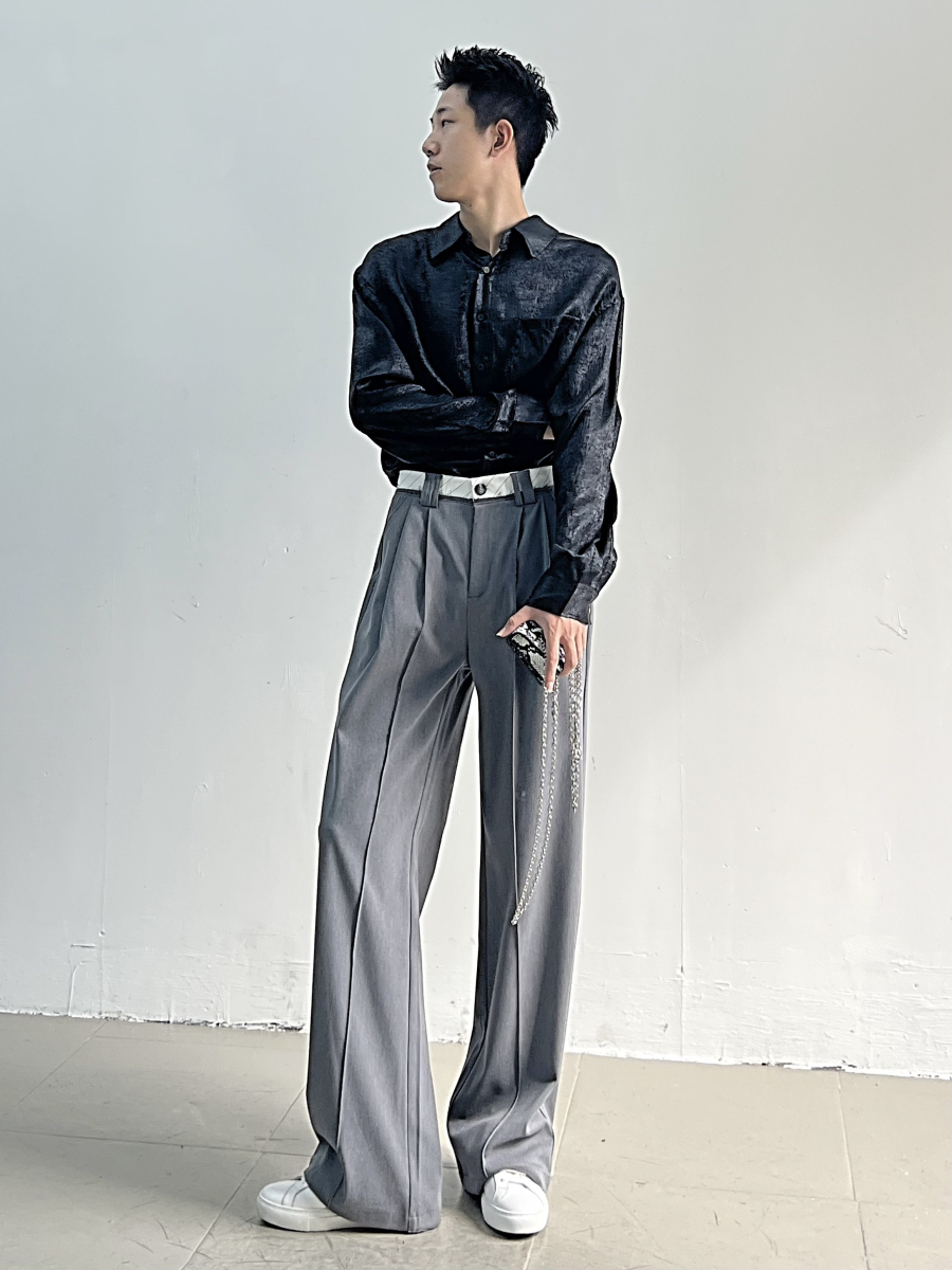 Contrast-Waist Wide Leg Straight Trousers WN11673