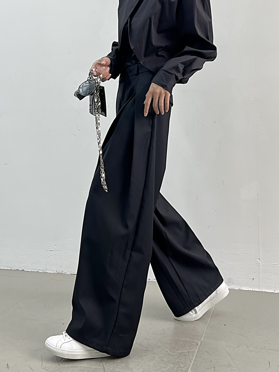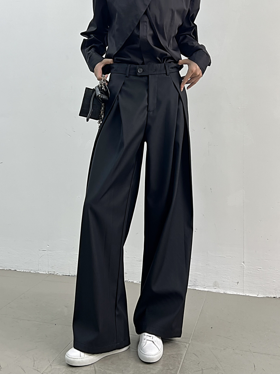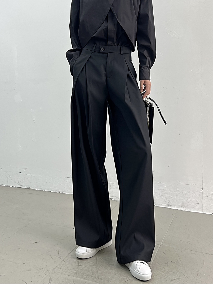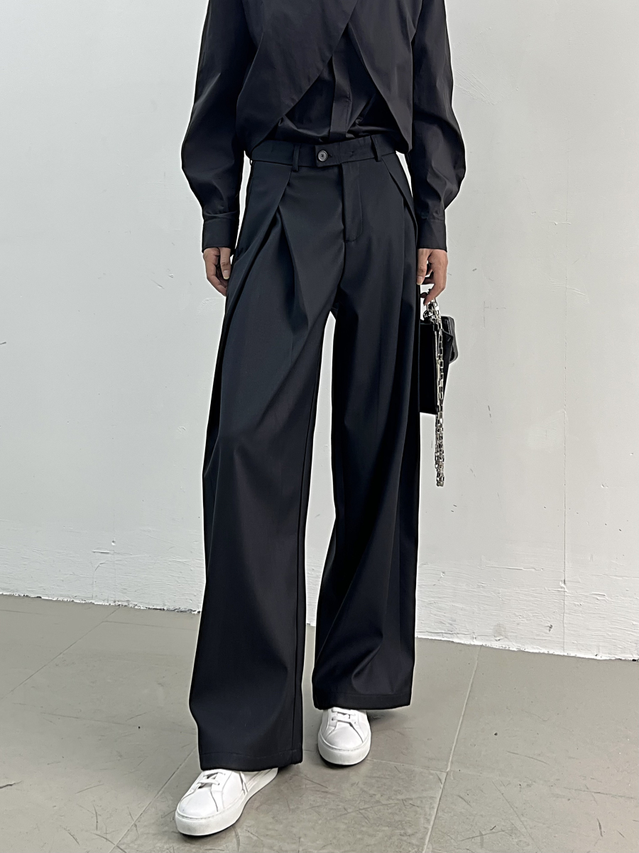 Cross-Waist Ruched Wide-Leg Trousers WN11676
