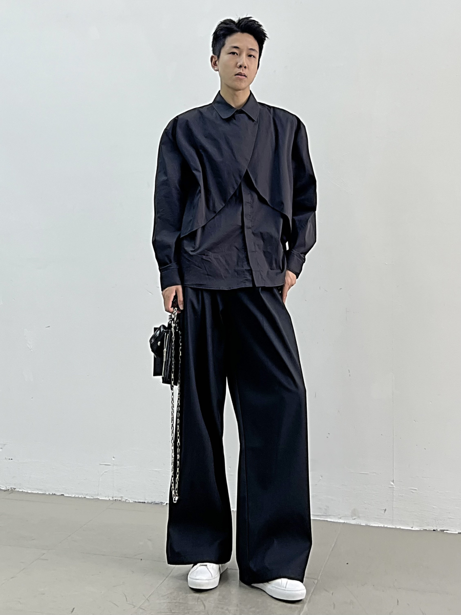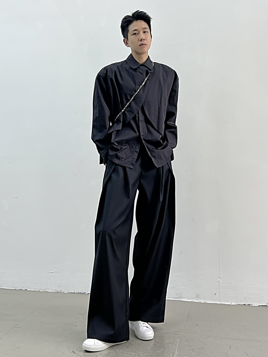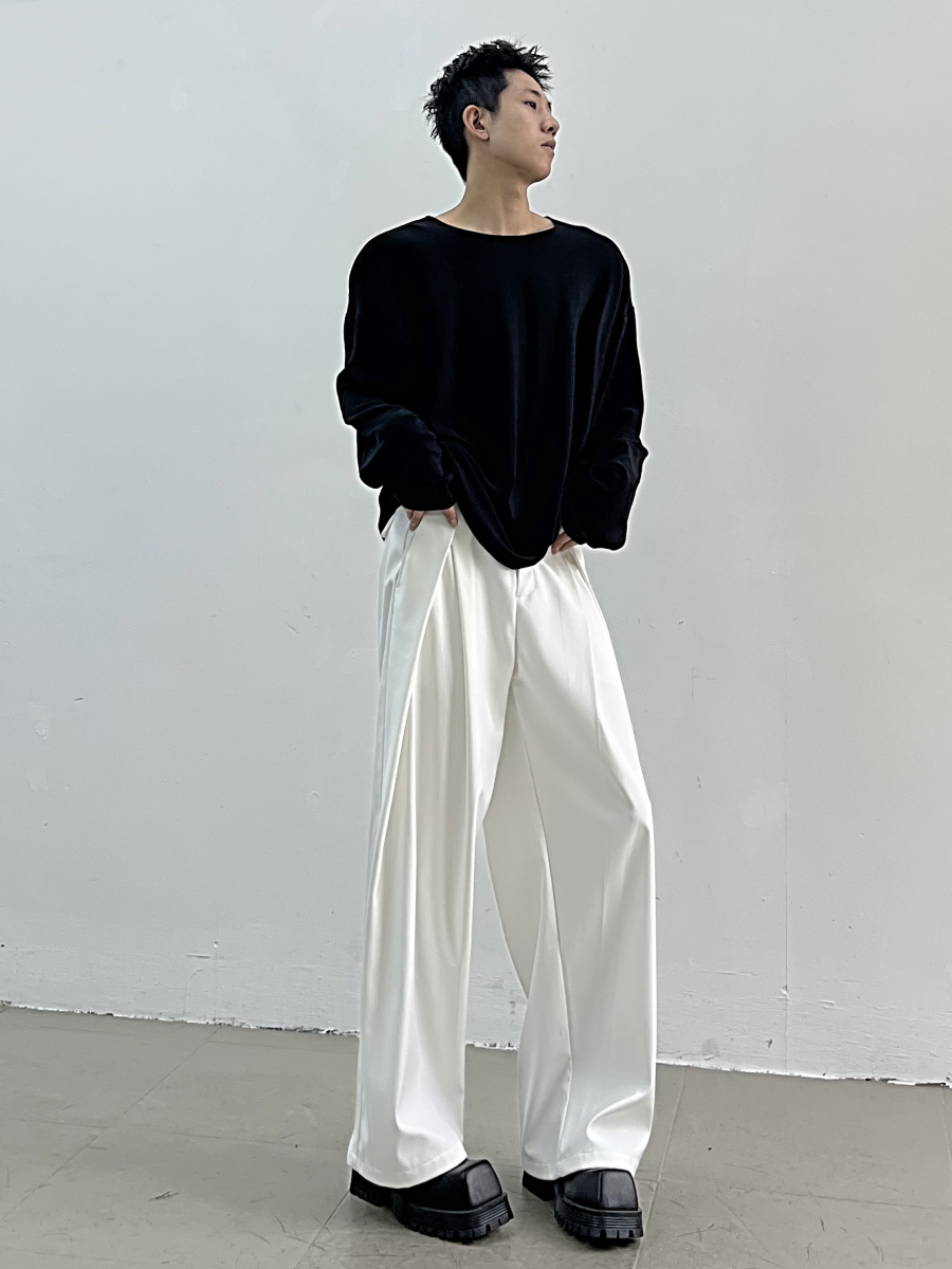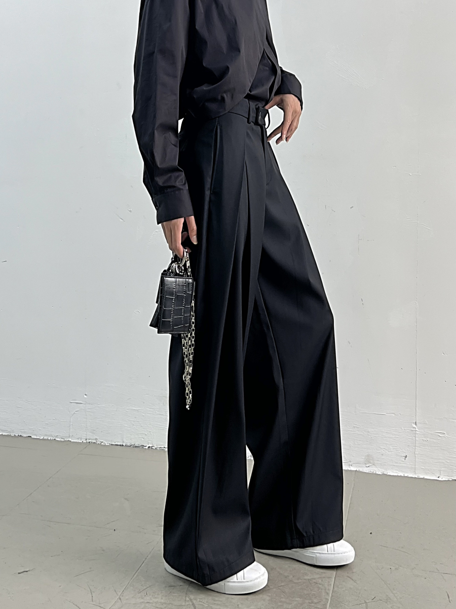 Cross-Waist Ruched Wide-Leg Trousers WN11676