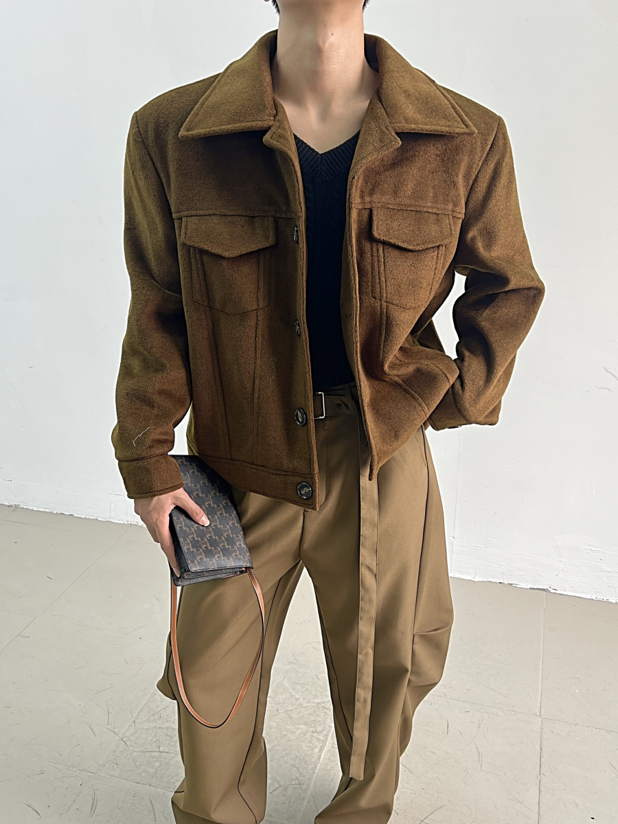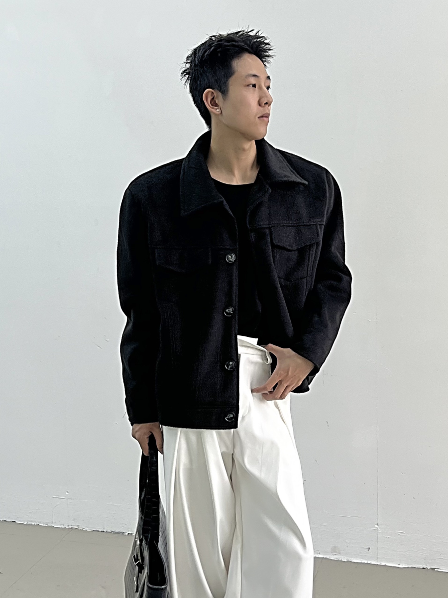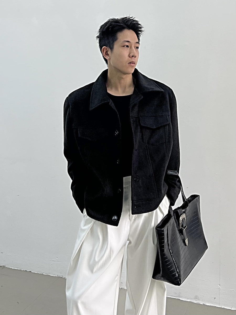 Notched Lapel Shoulder-Pad Jacket WN11677