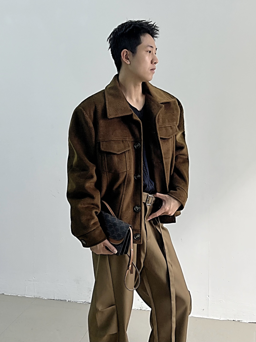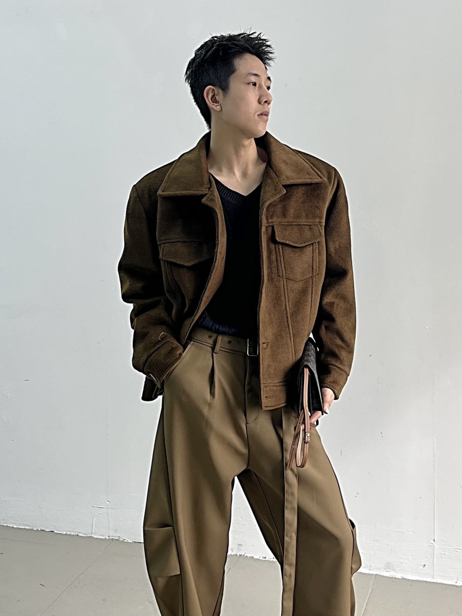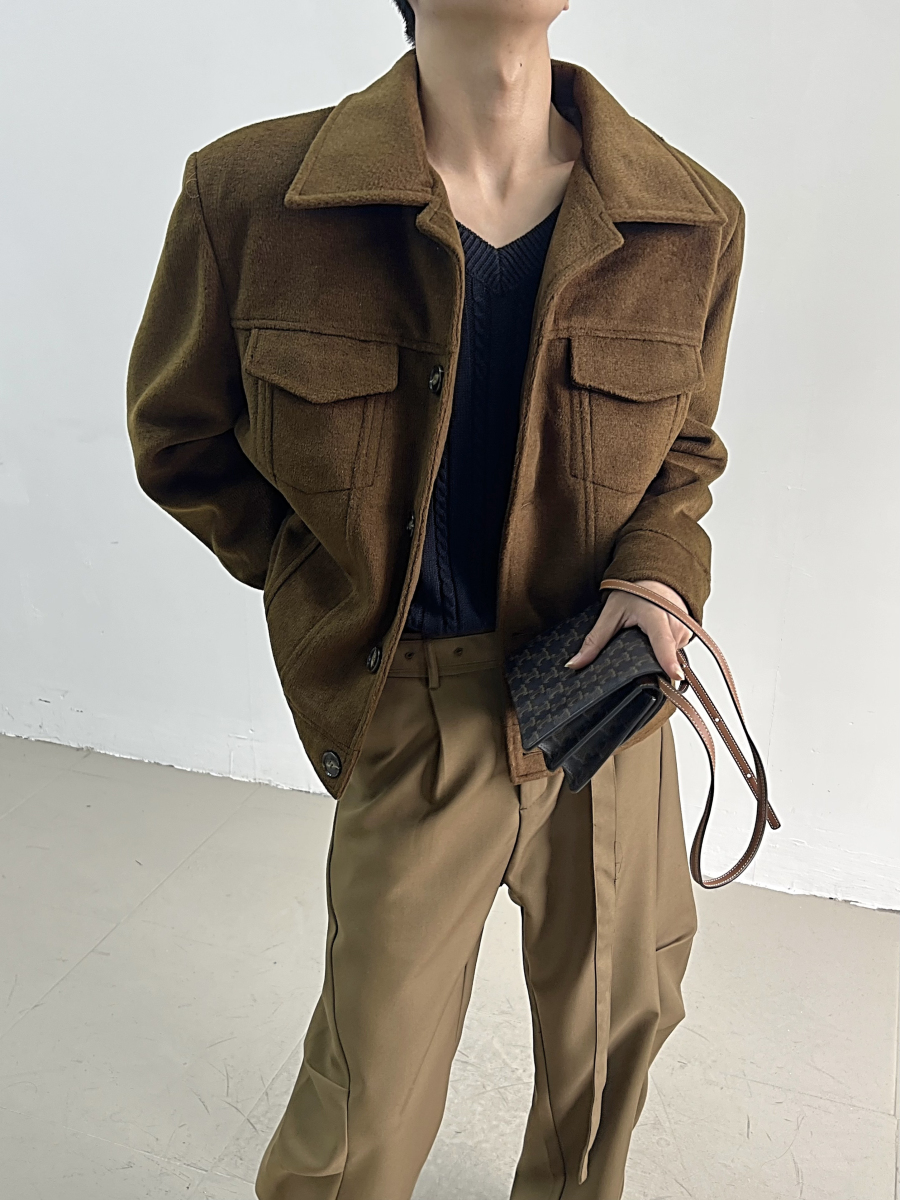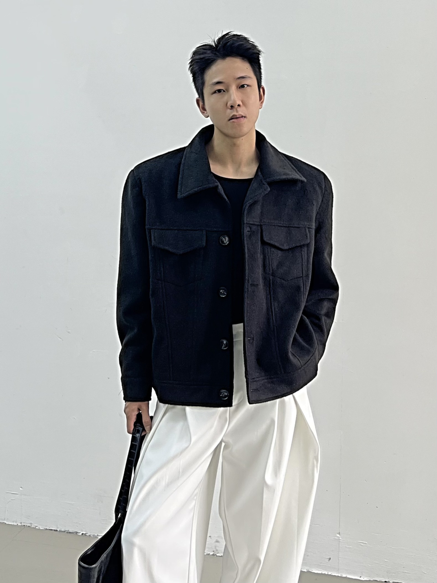 Notched Lapel Shoulder-Pad Jacket WN11677