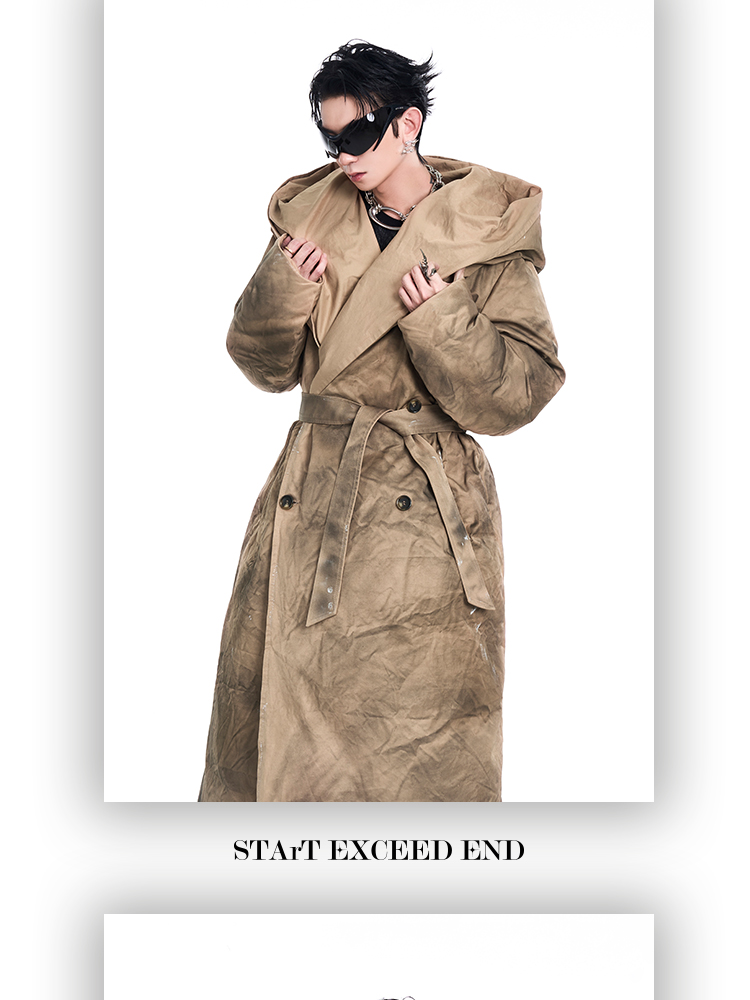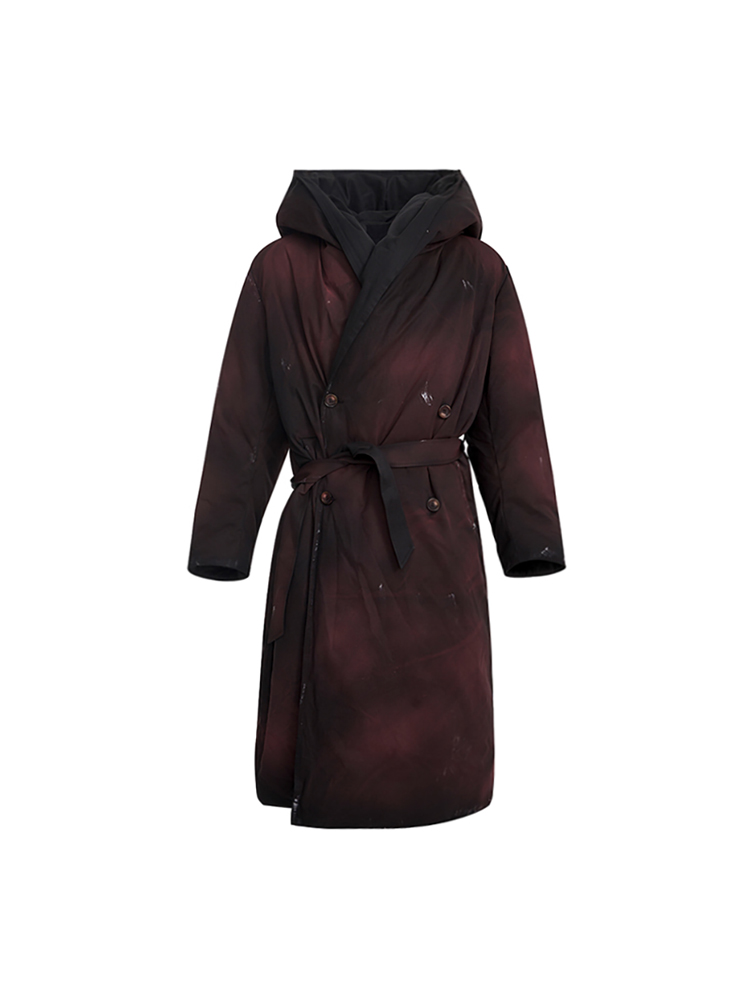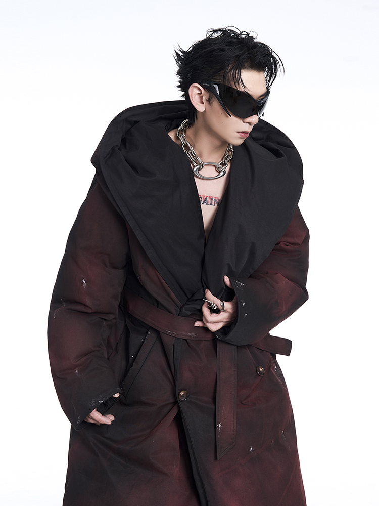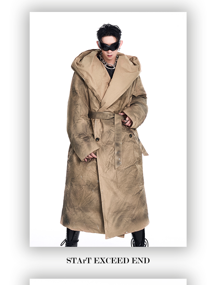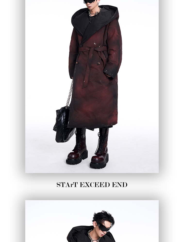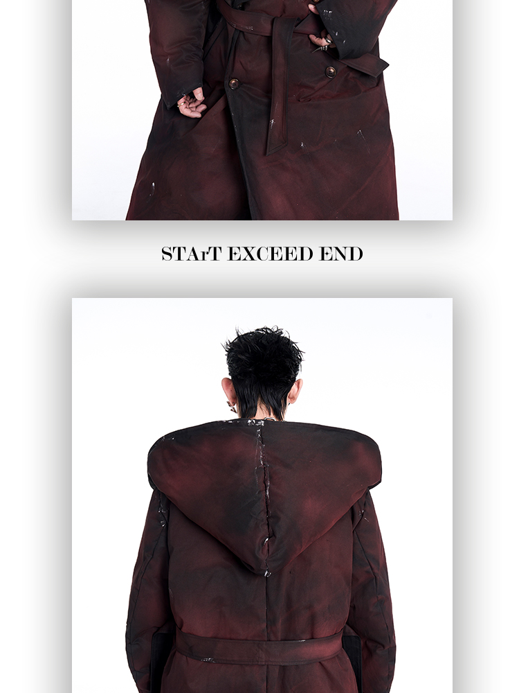 Spray-Paint Graffiti Hooded Mid-Length Coat WN11709
