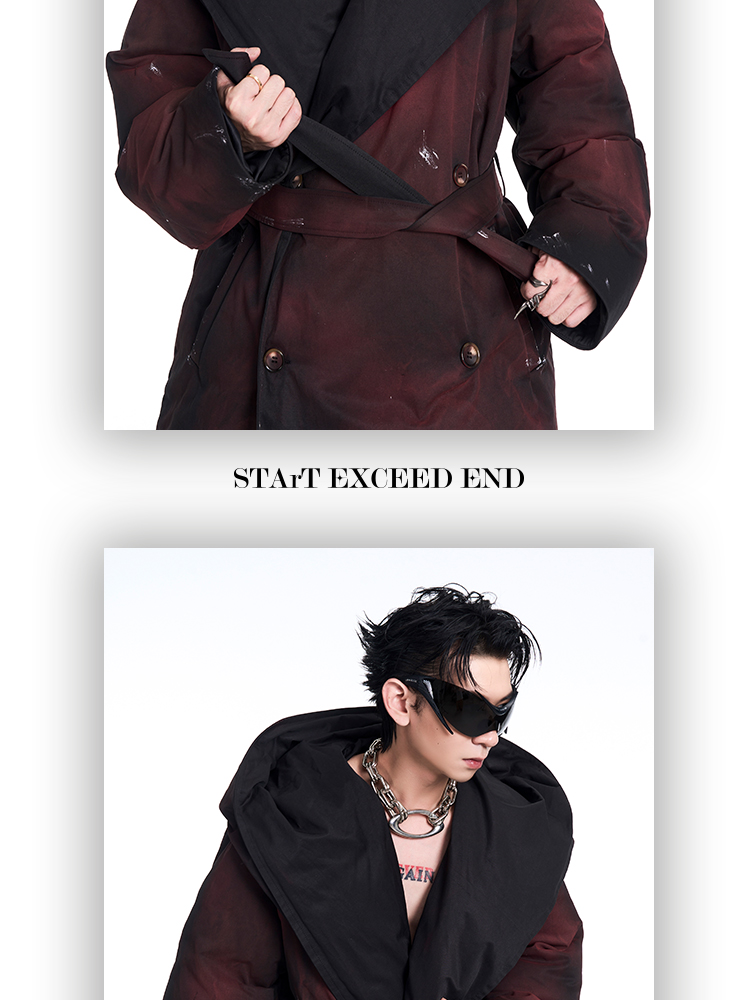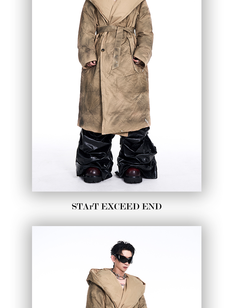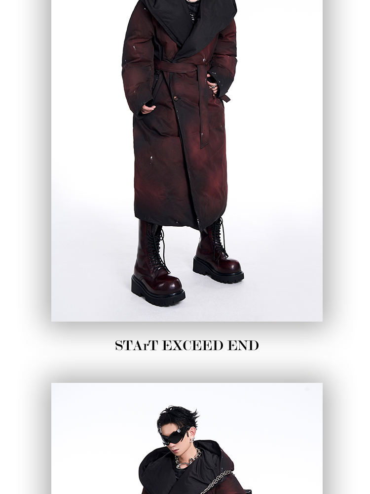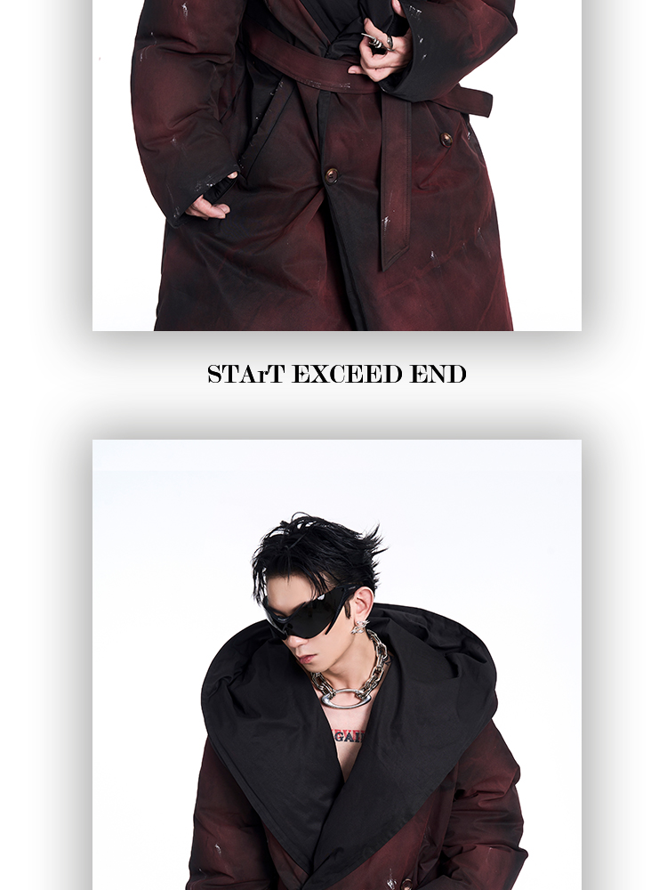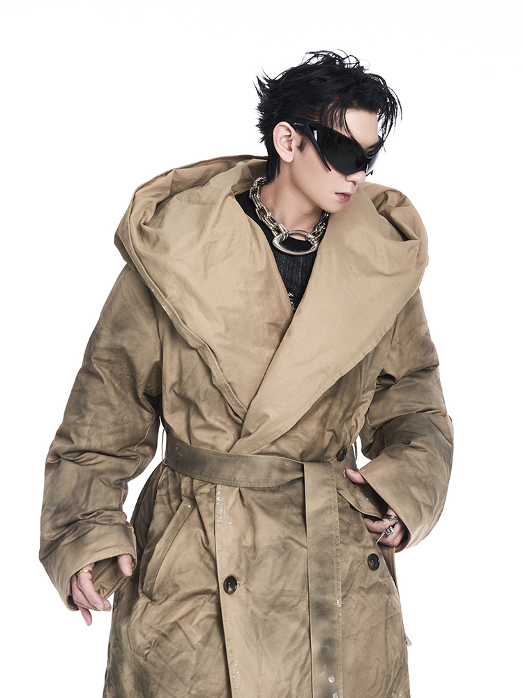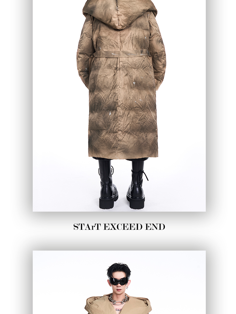 Spray-Paint Graffiti Hooded Mid-Length Coat WN11709