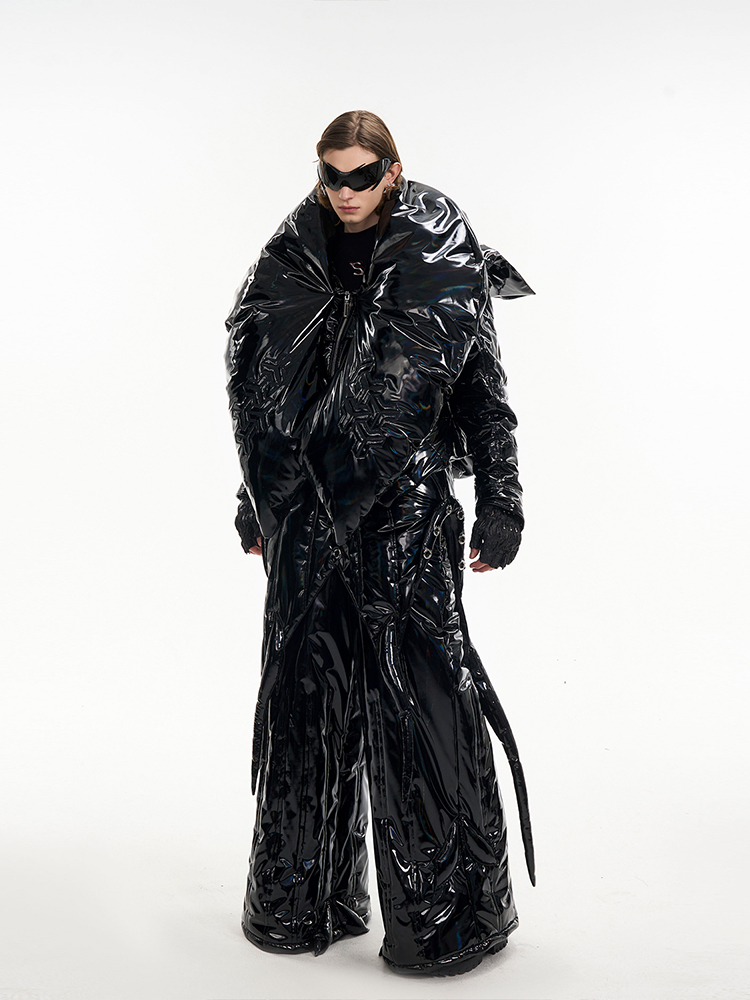 Glossy Heavyweight Asymmetric White Duck Down Jacket & Pants Setup WN12144