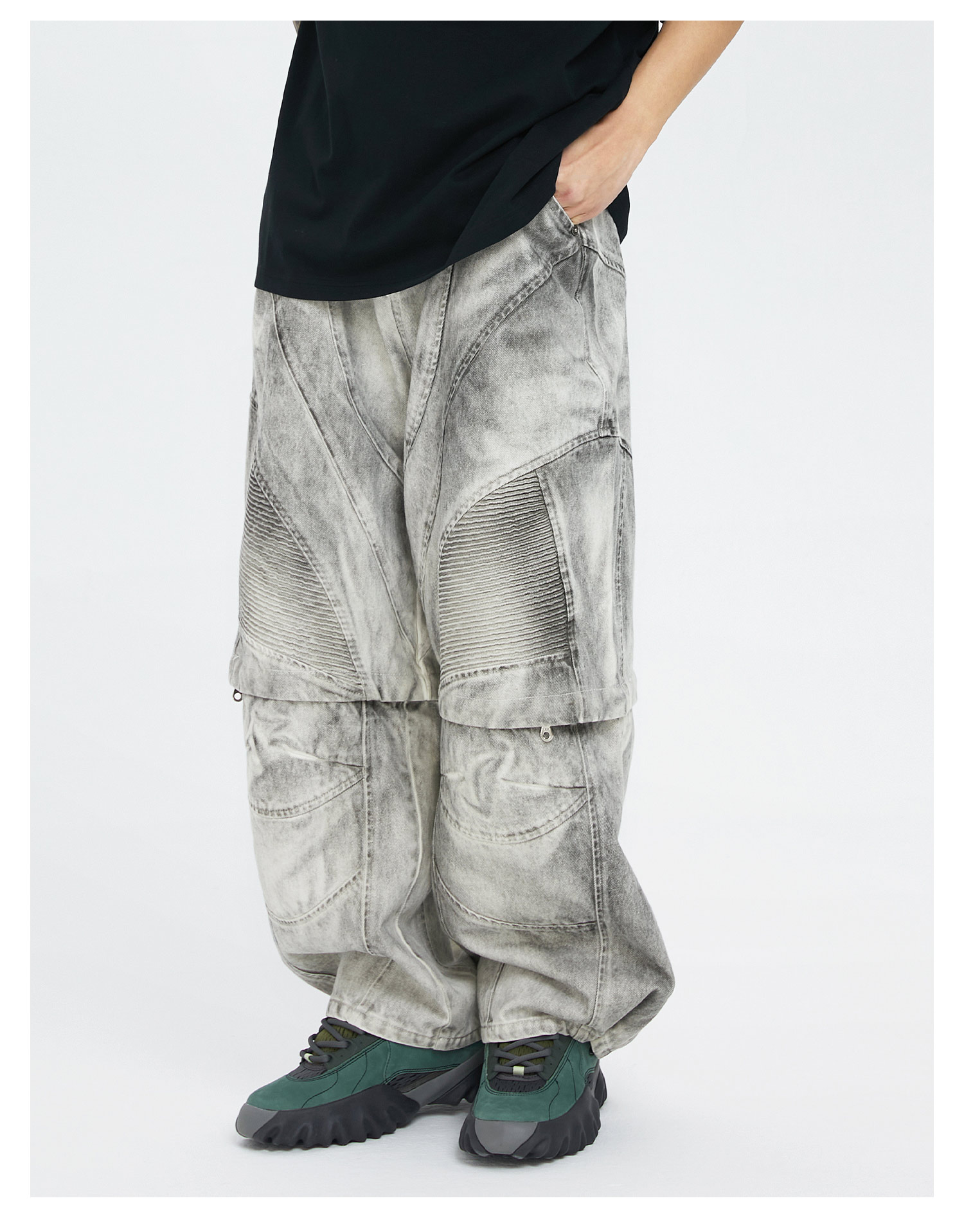 Convertible Paratrooper Ruched Denim Jeans WN12215
