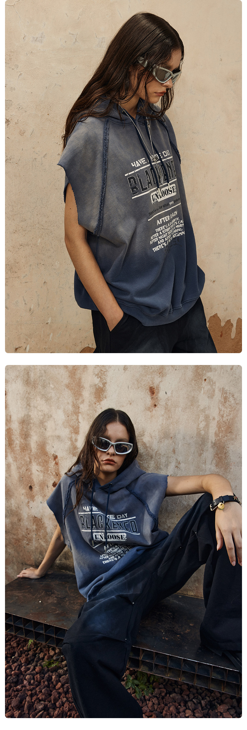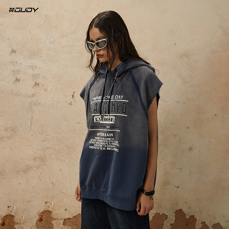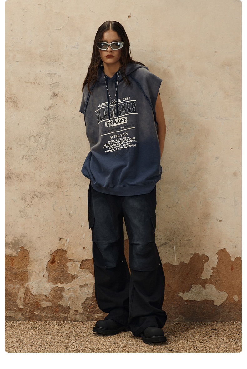 Washed Sleeveless Hooded Sleevelese Top WN12304