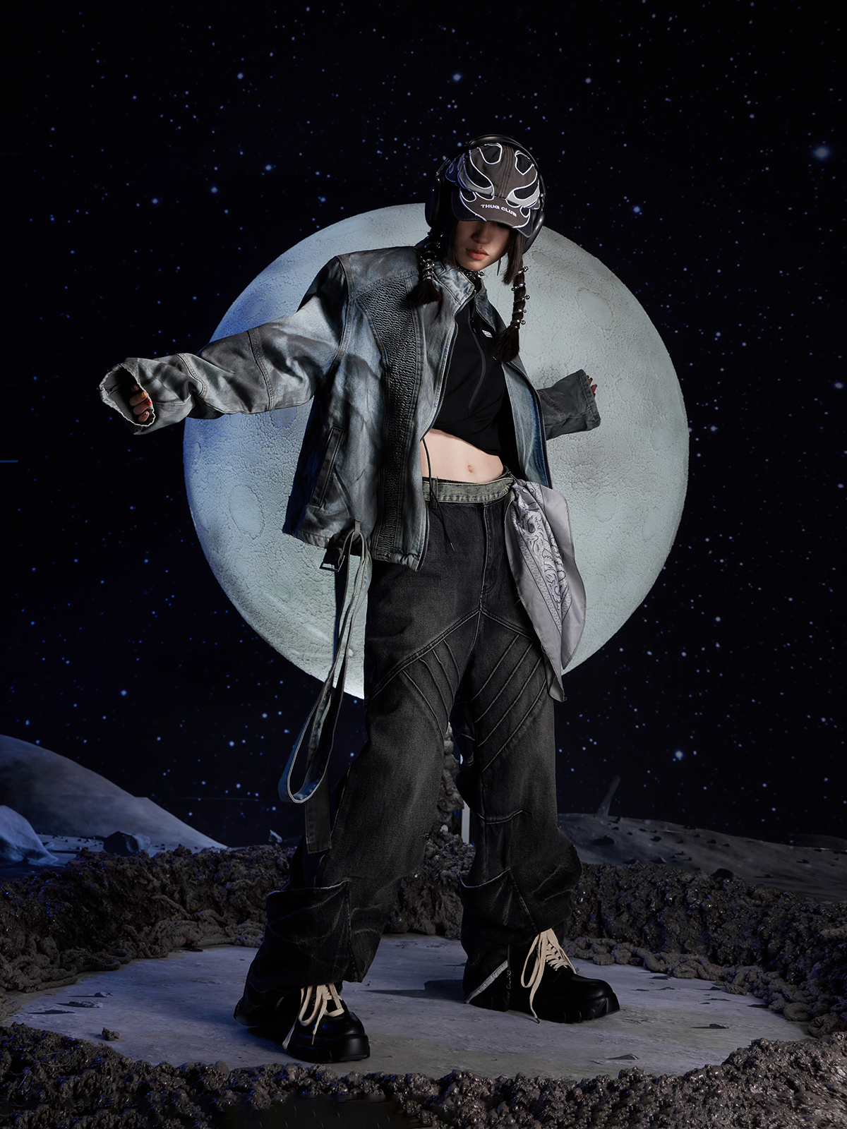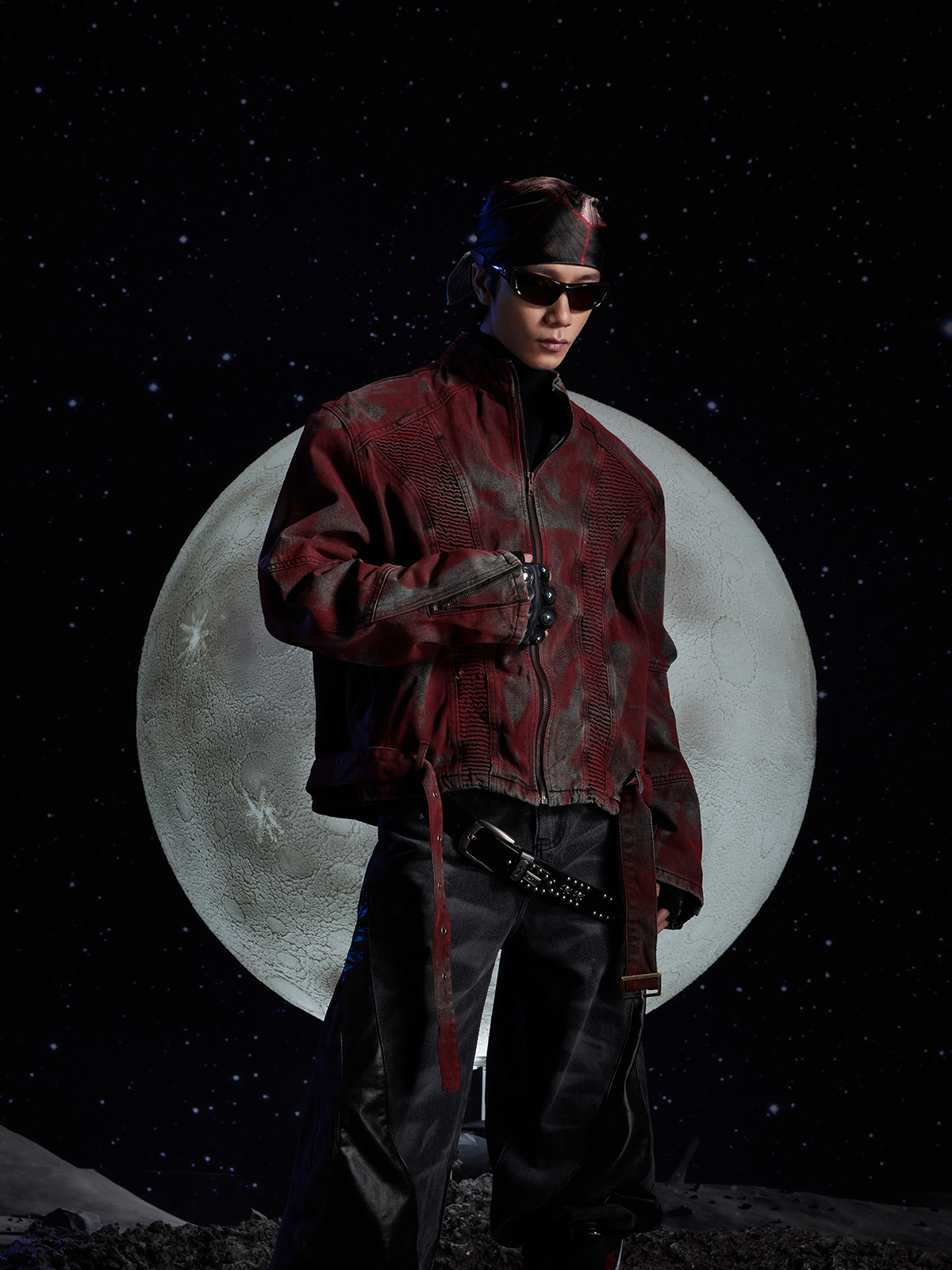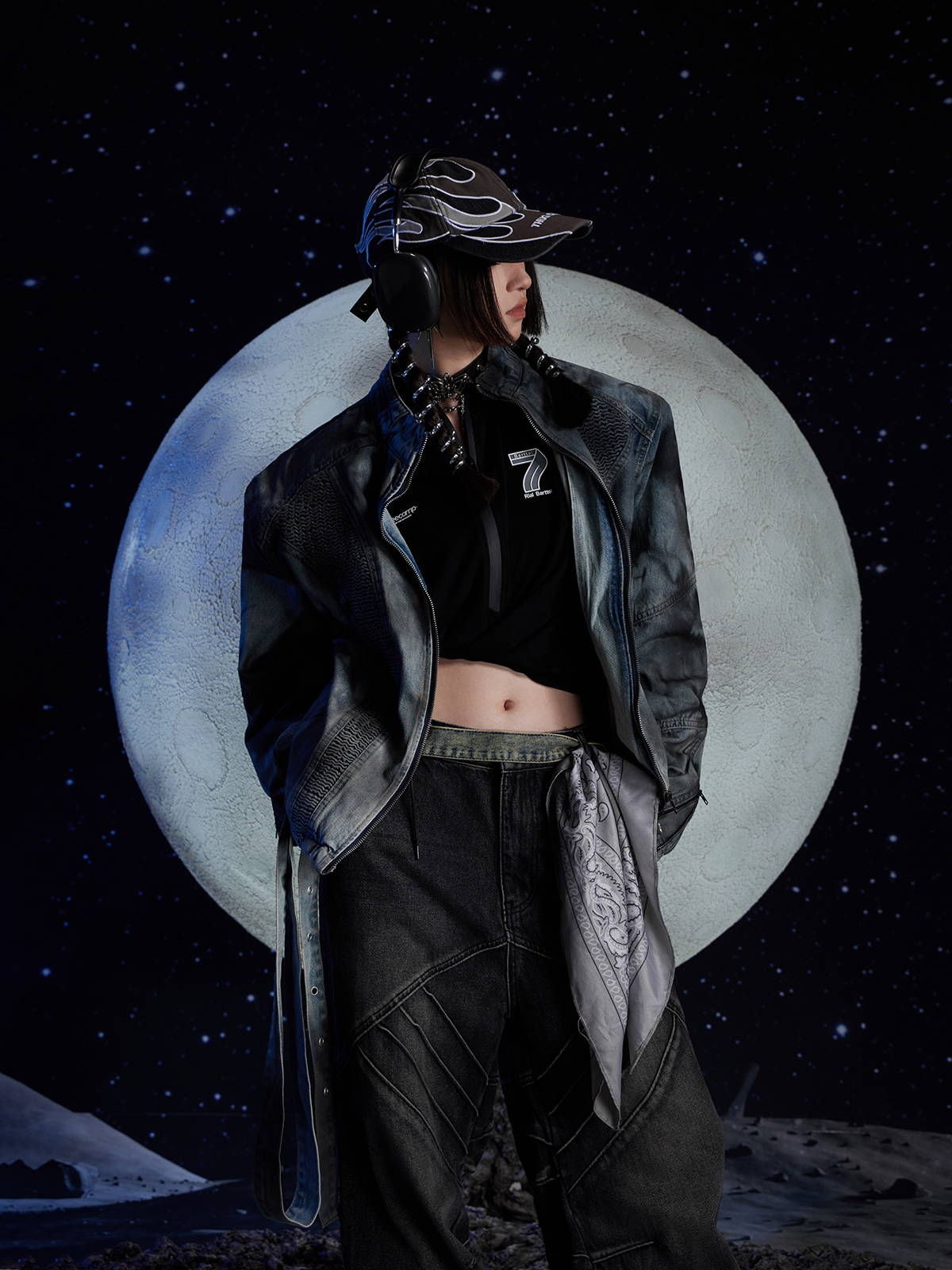 Wrinkled Patchwork Washed Strap Zipper Short Jacket WN13499