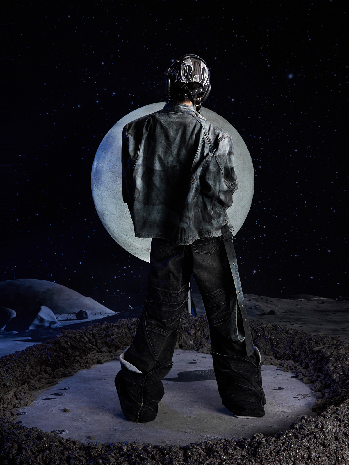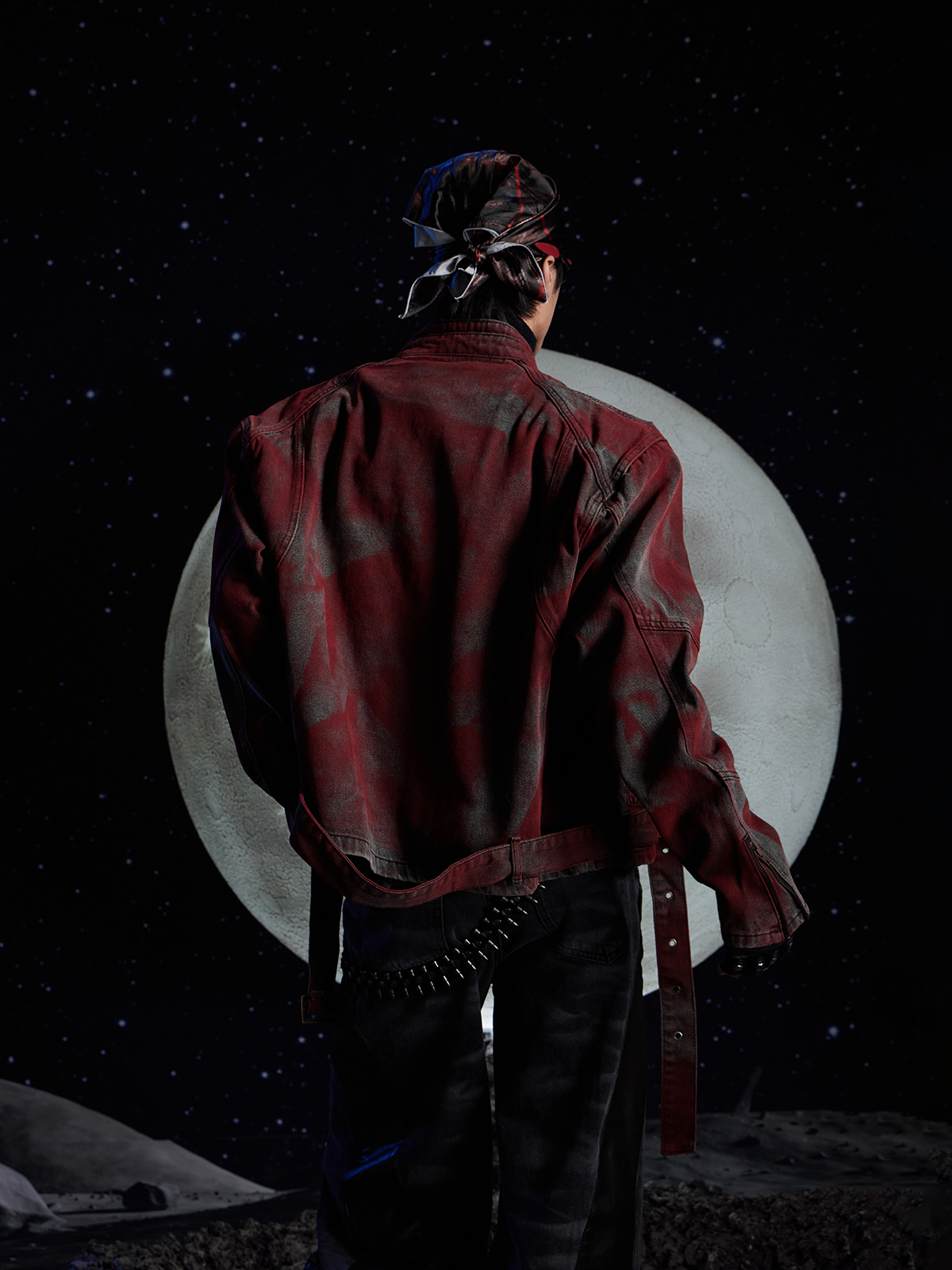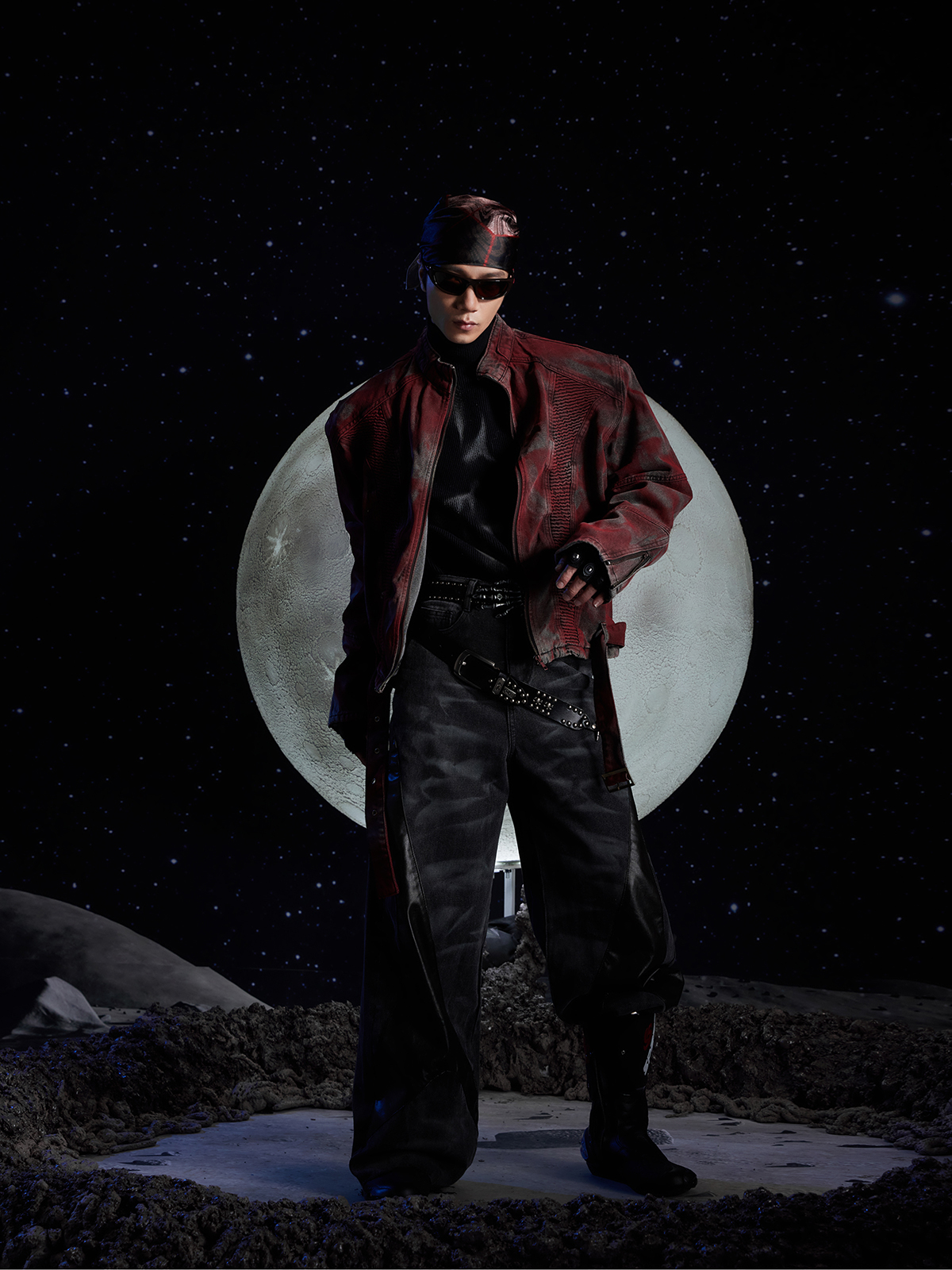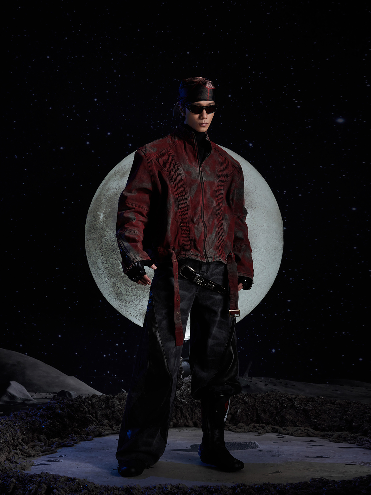 Wrinkled Patchwork Washed Strap Zipper Short Jacket WN13499