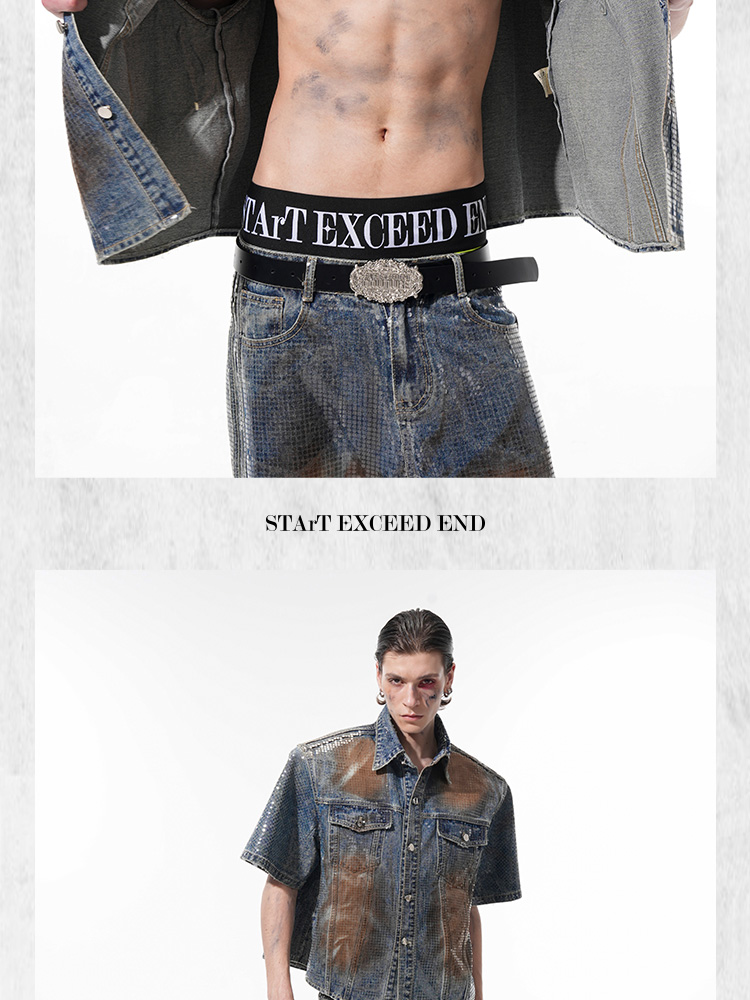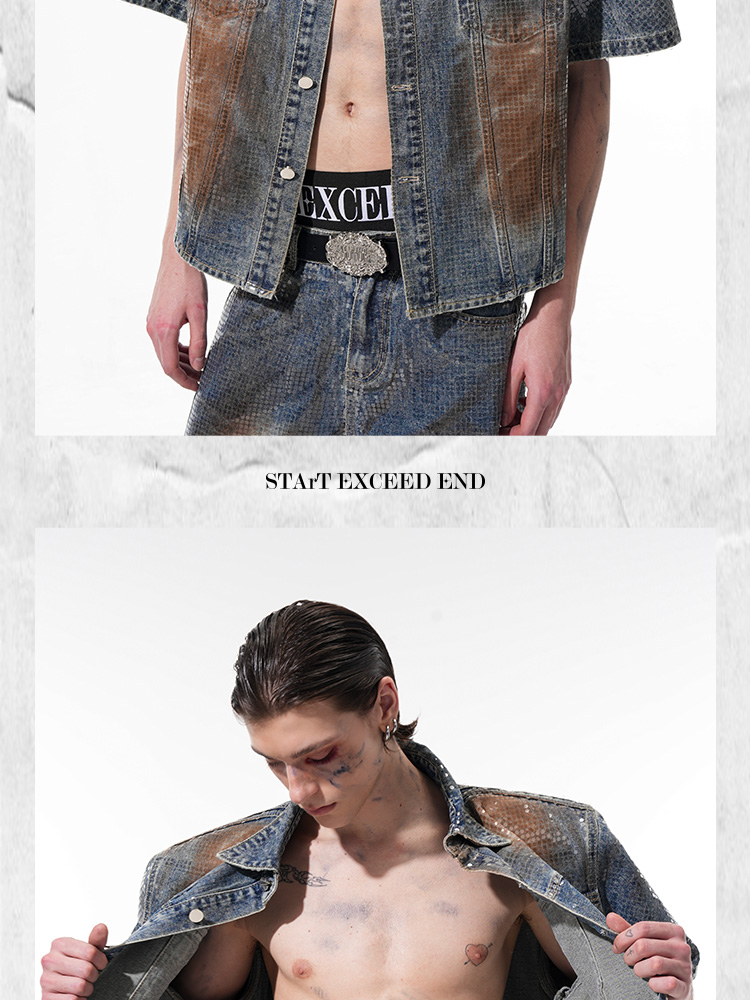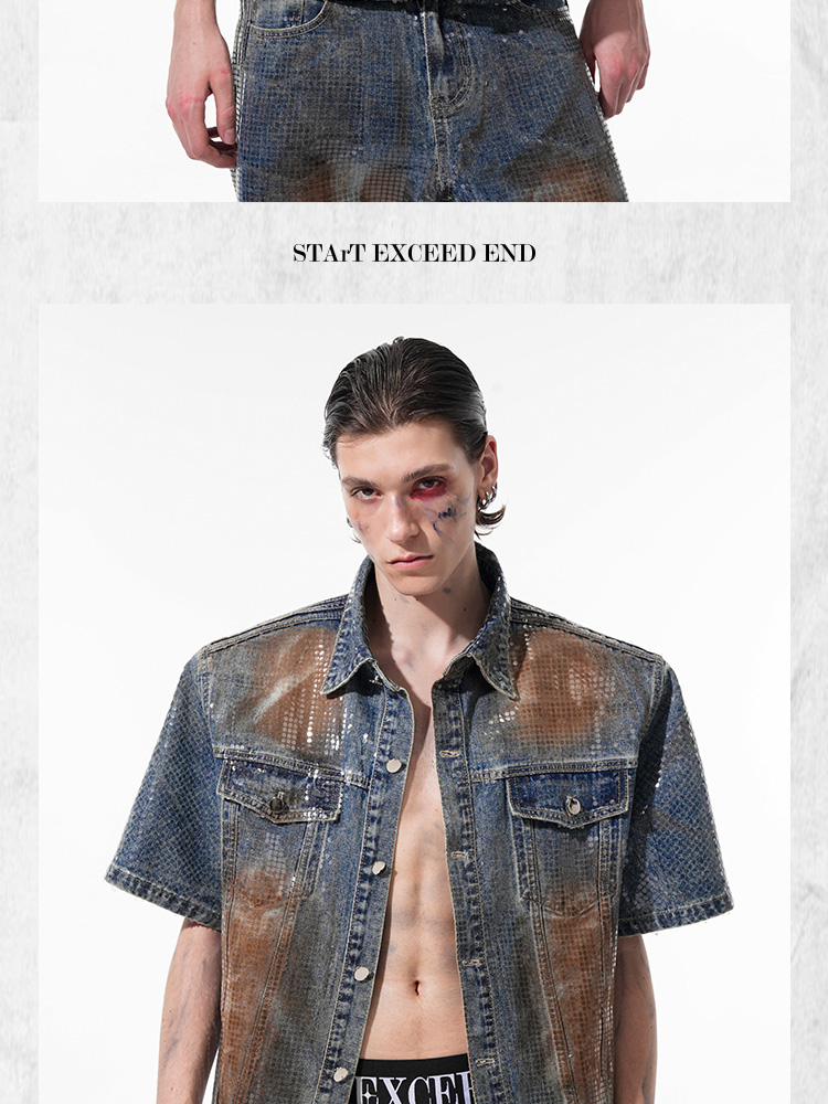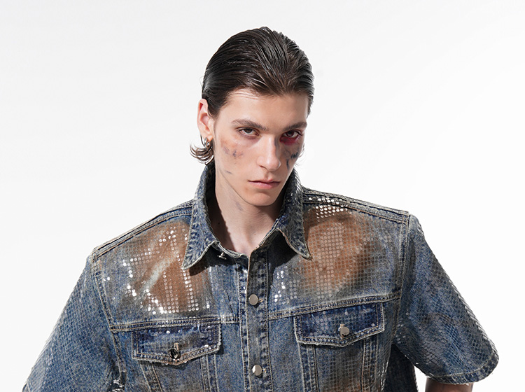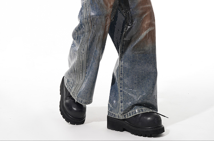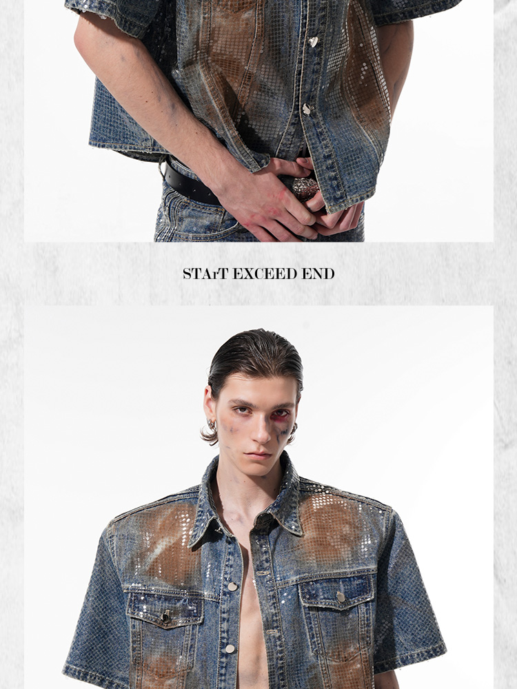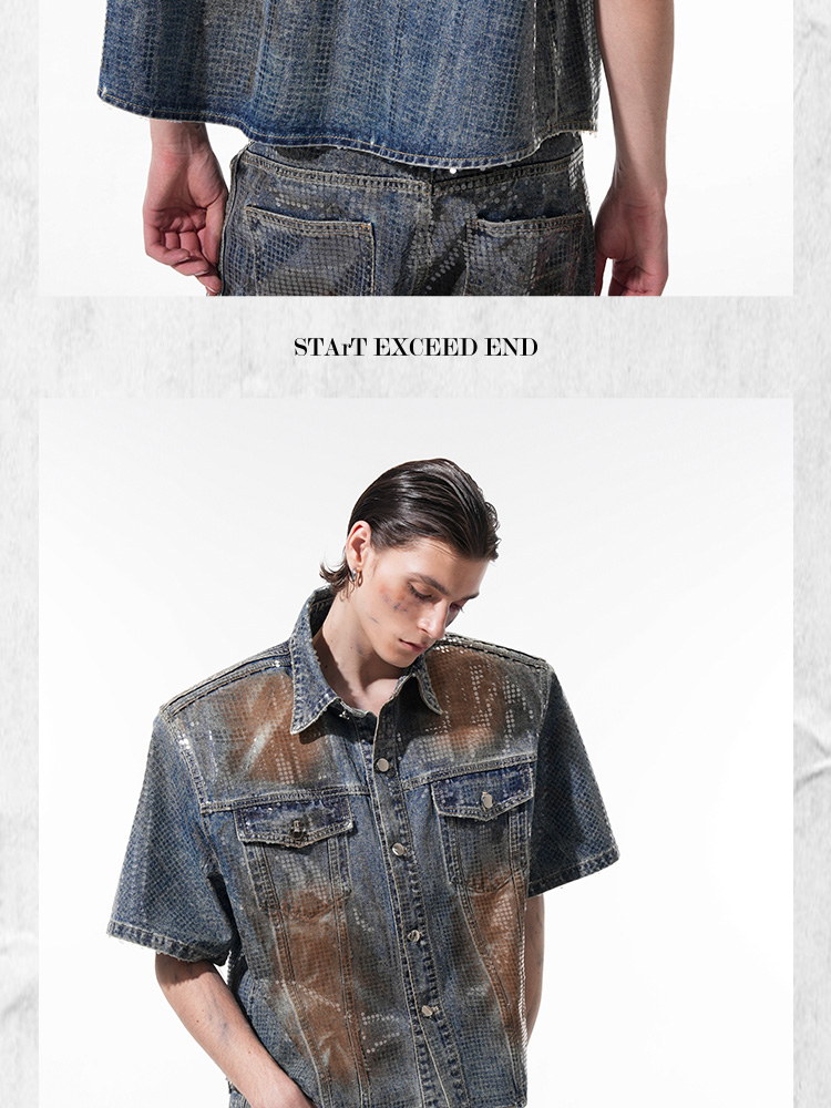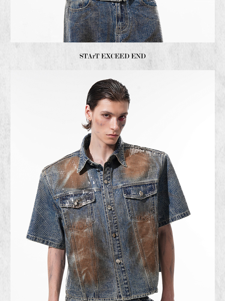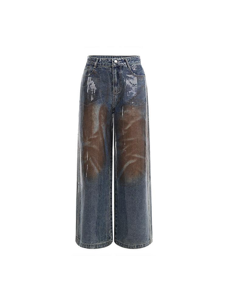 Hot Stamping Sequin Shoulder-pad Denim Short Jacket & Denim Jeans Setup WN14862
