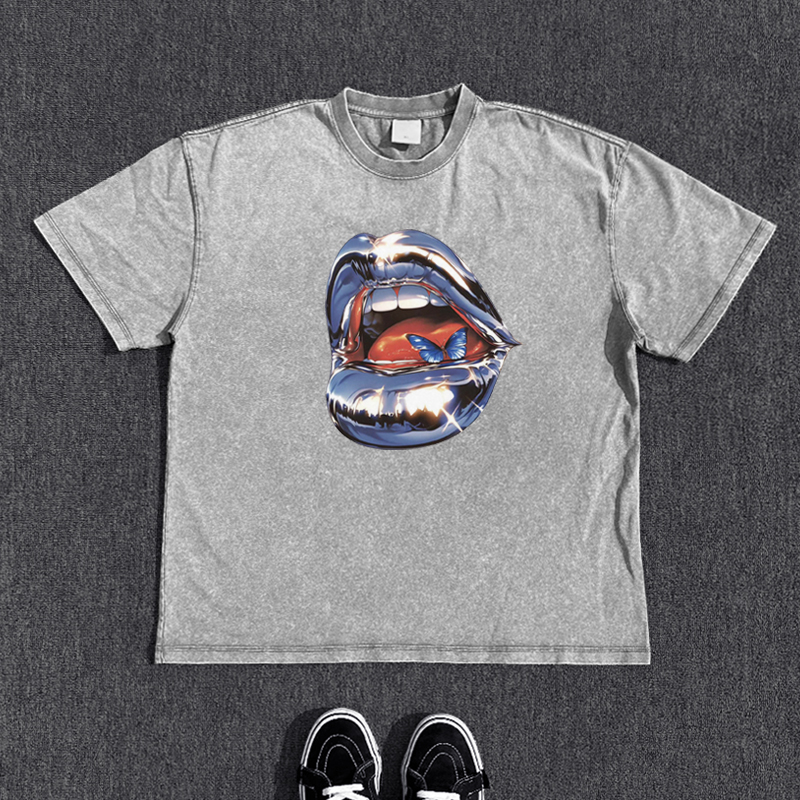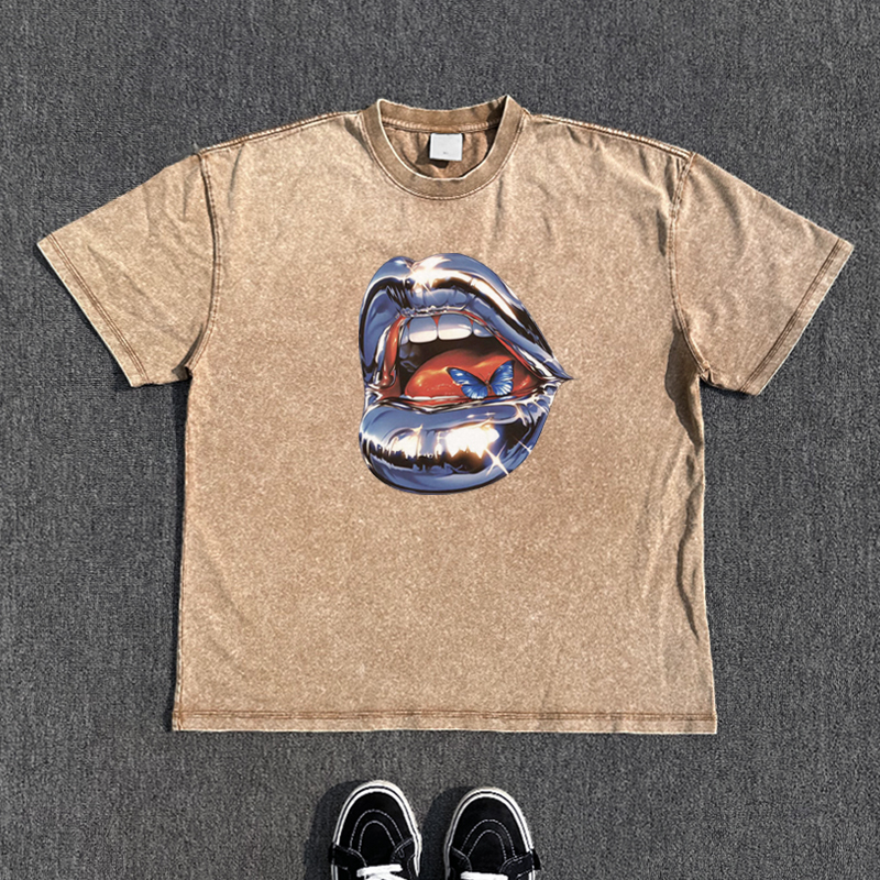 Washed Print Oversize Short Sleeve T-Shirt WN15822