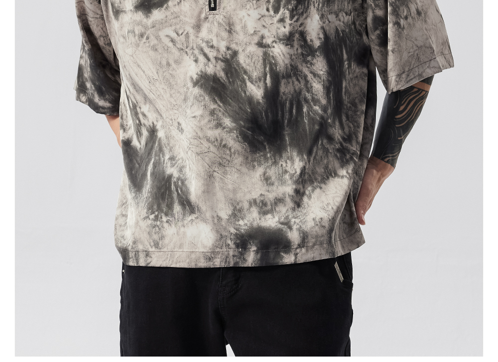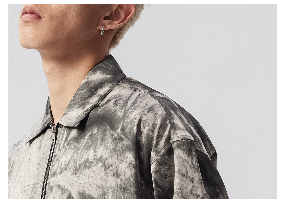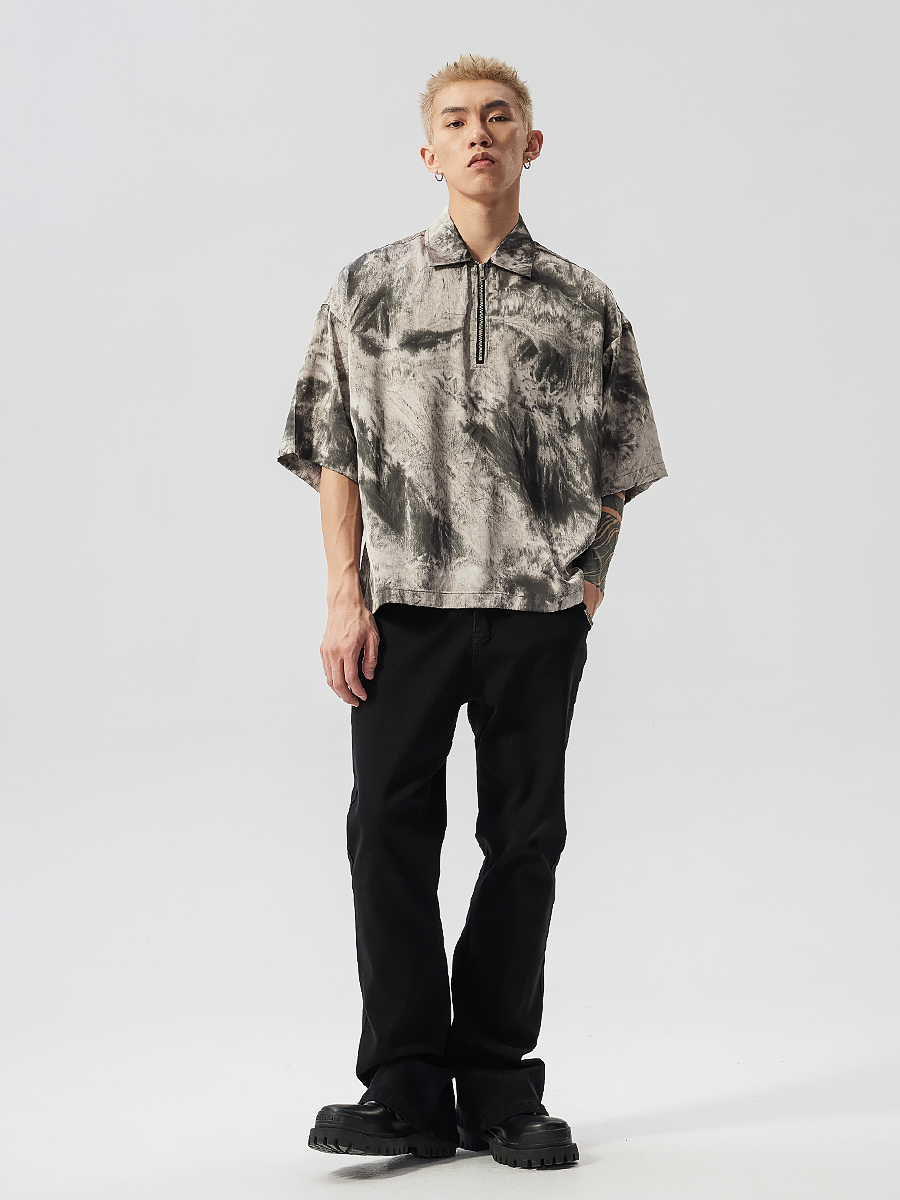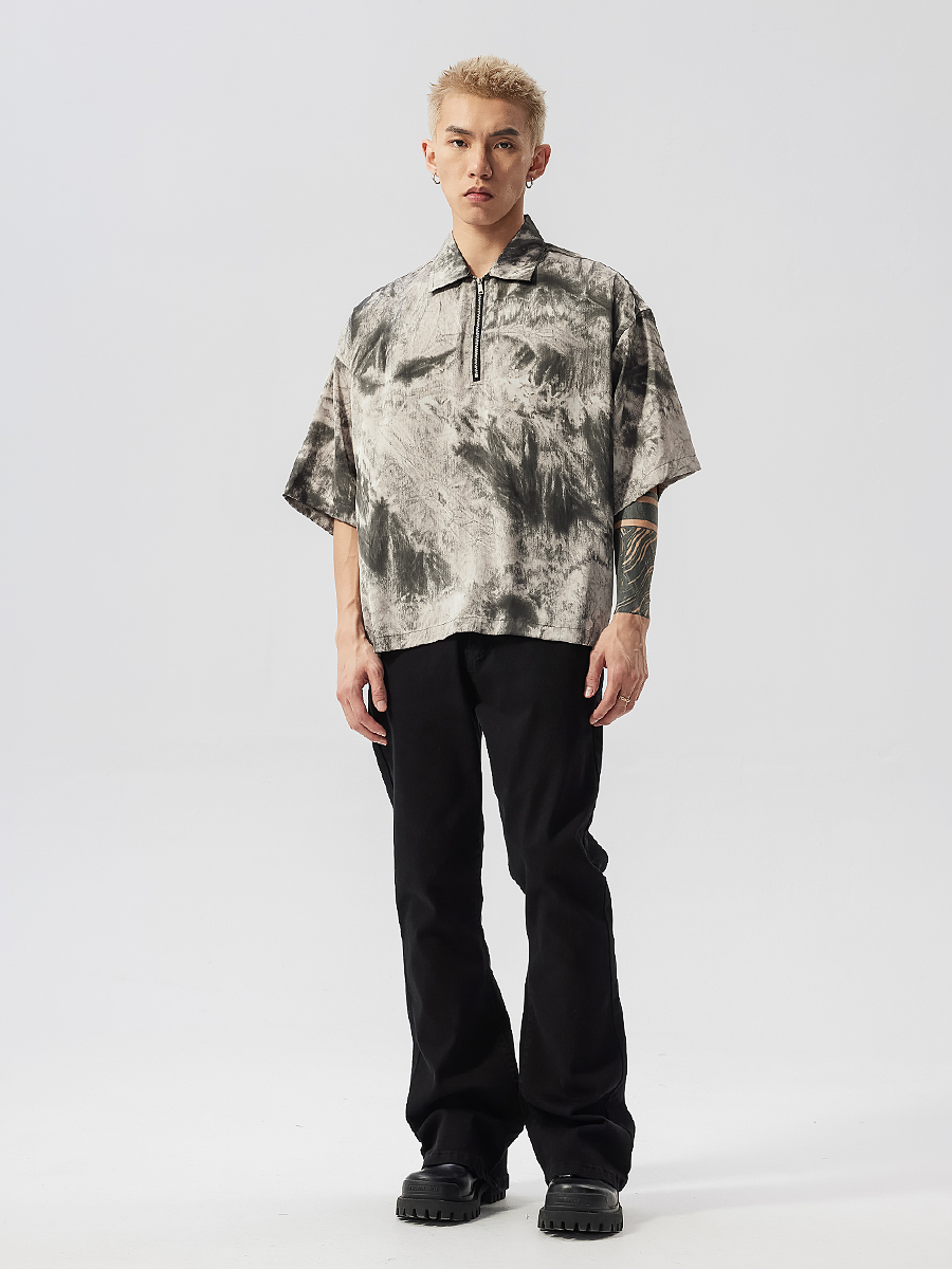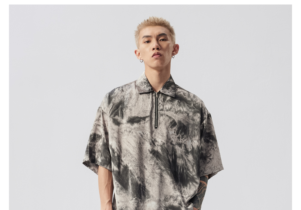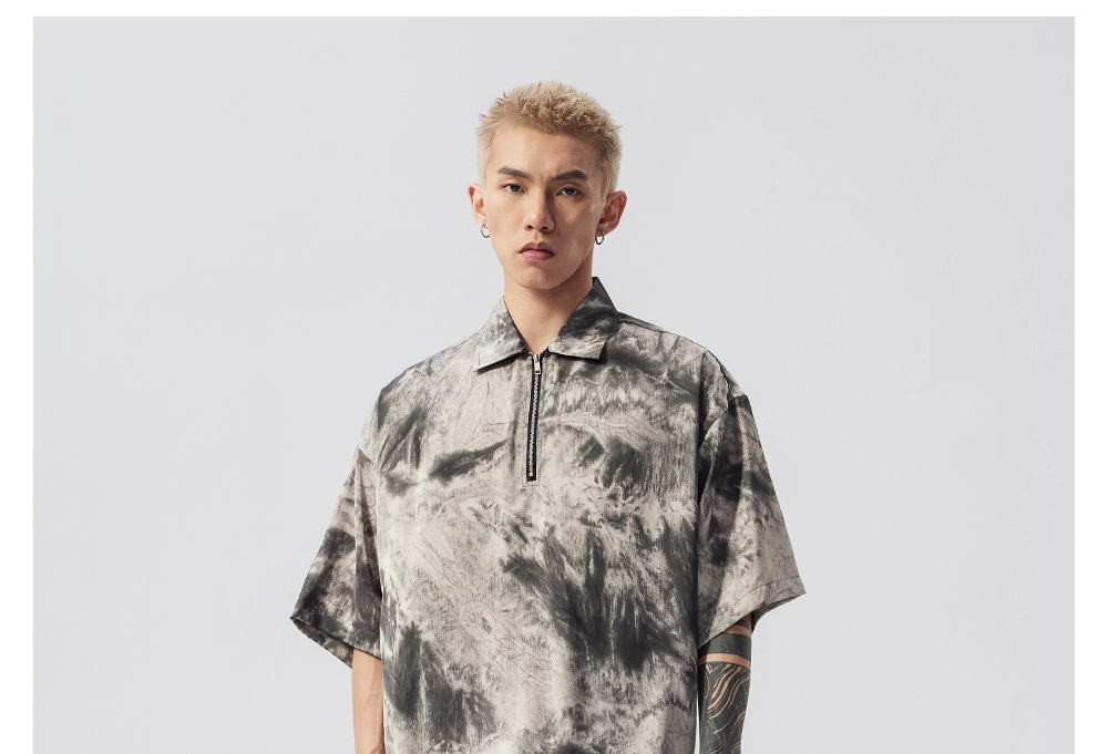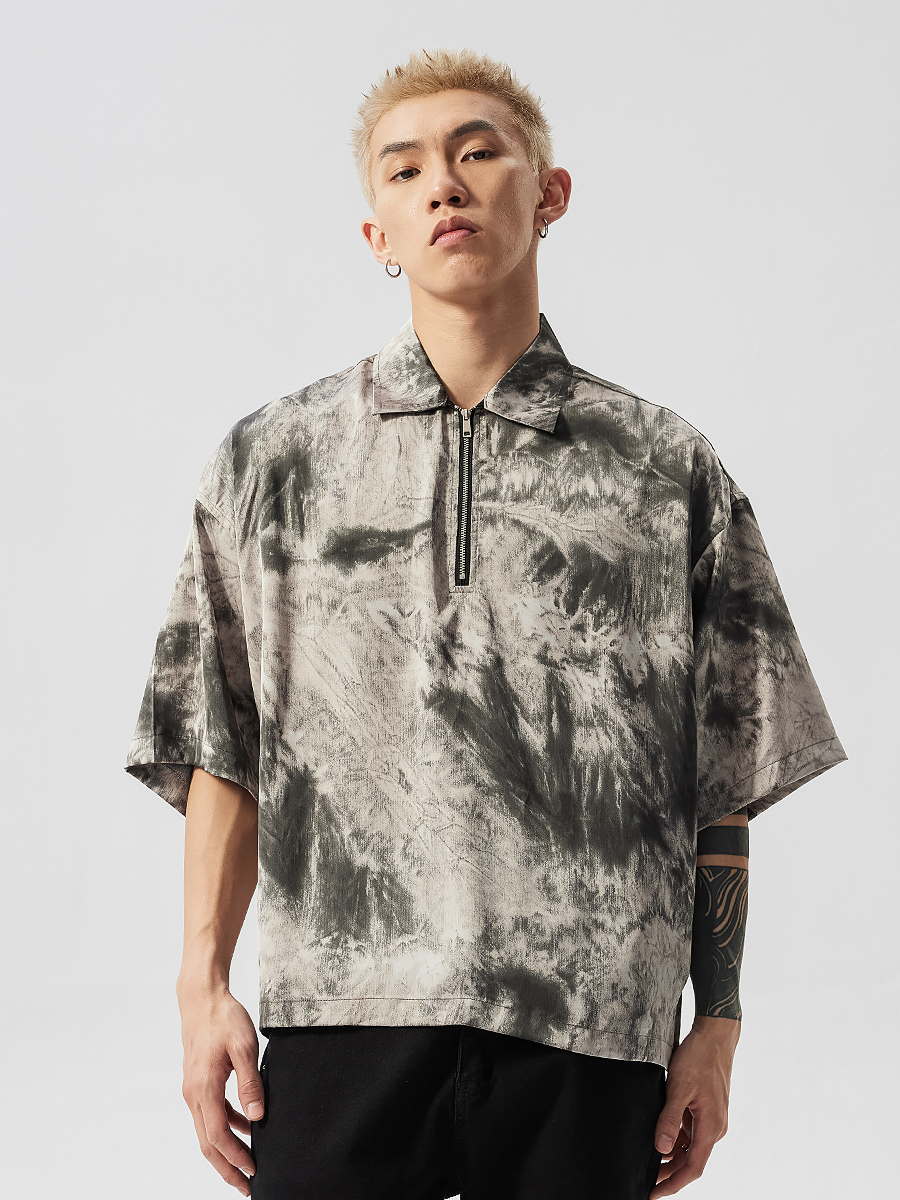 Tie-Dye Ink Design Half Zipper Polo Shirt WN17487