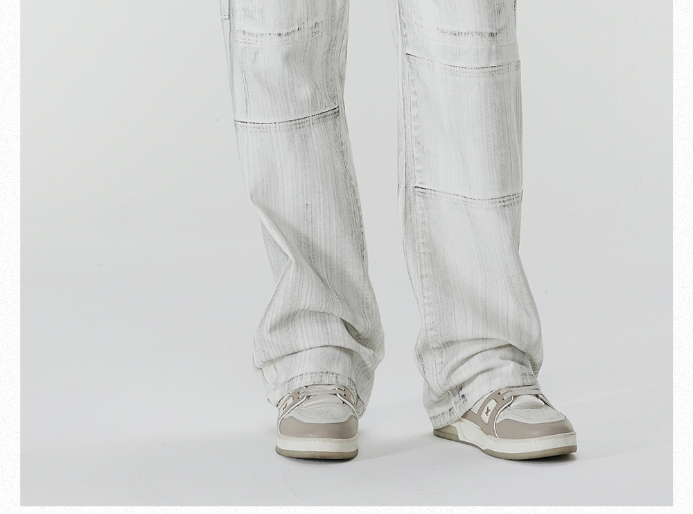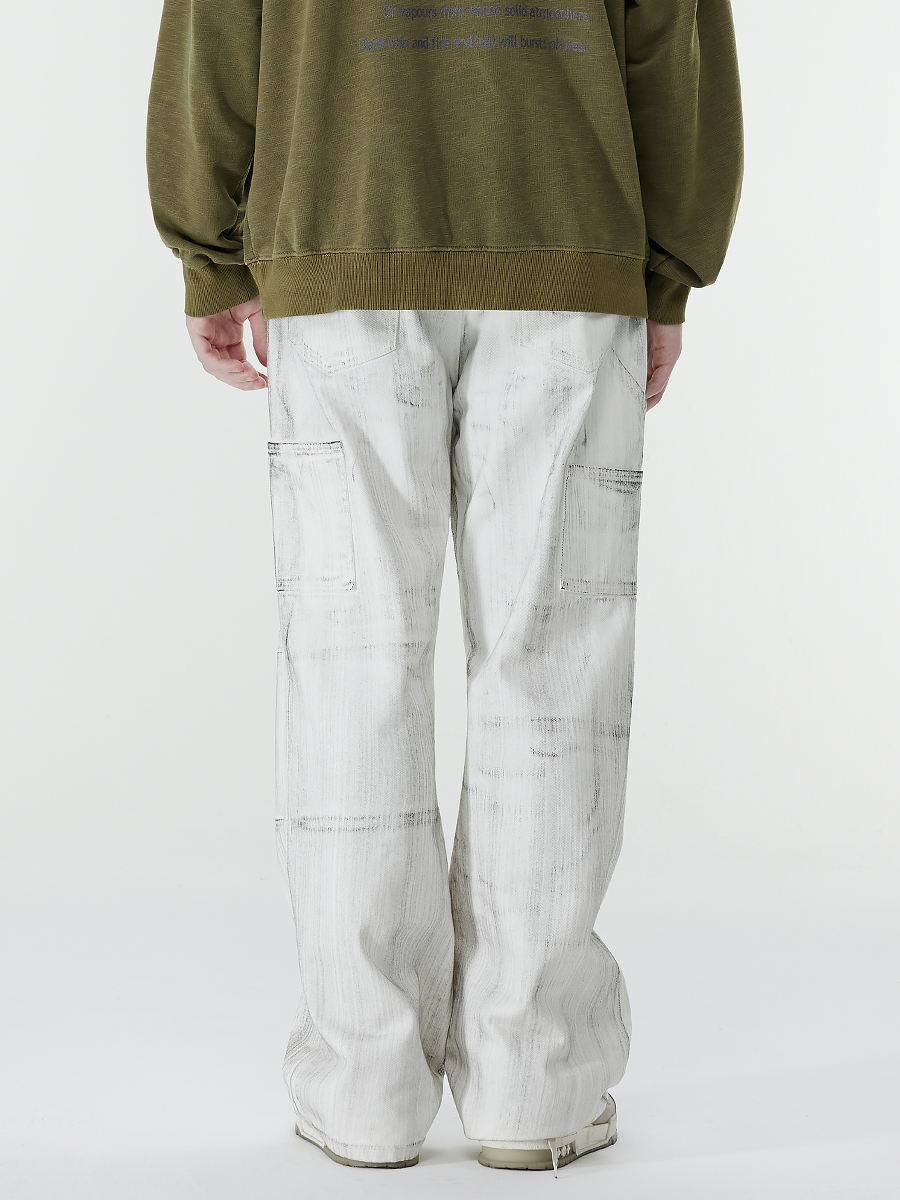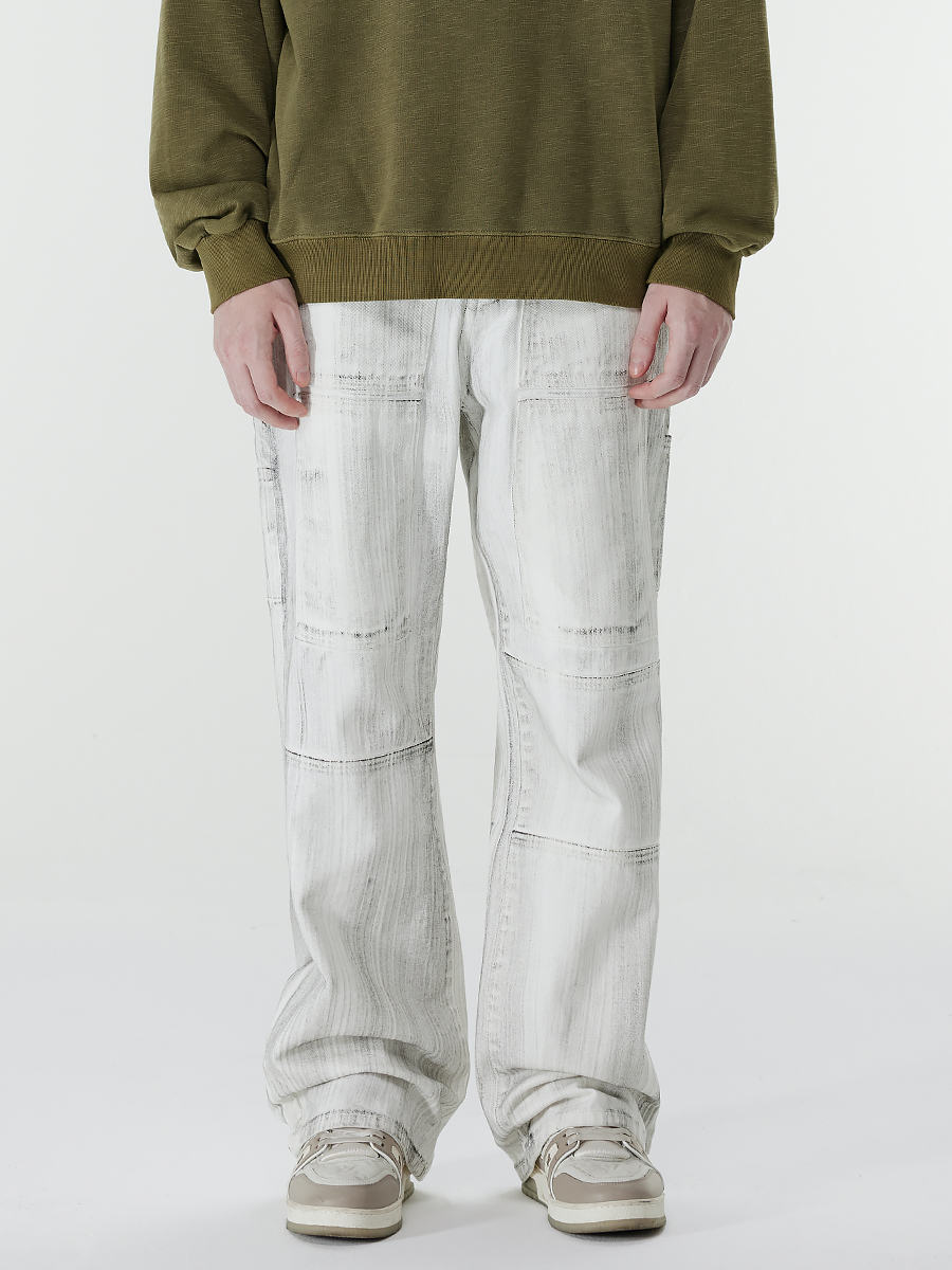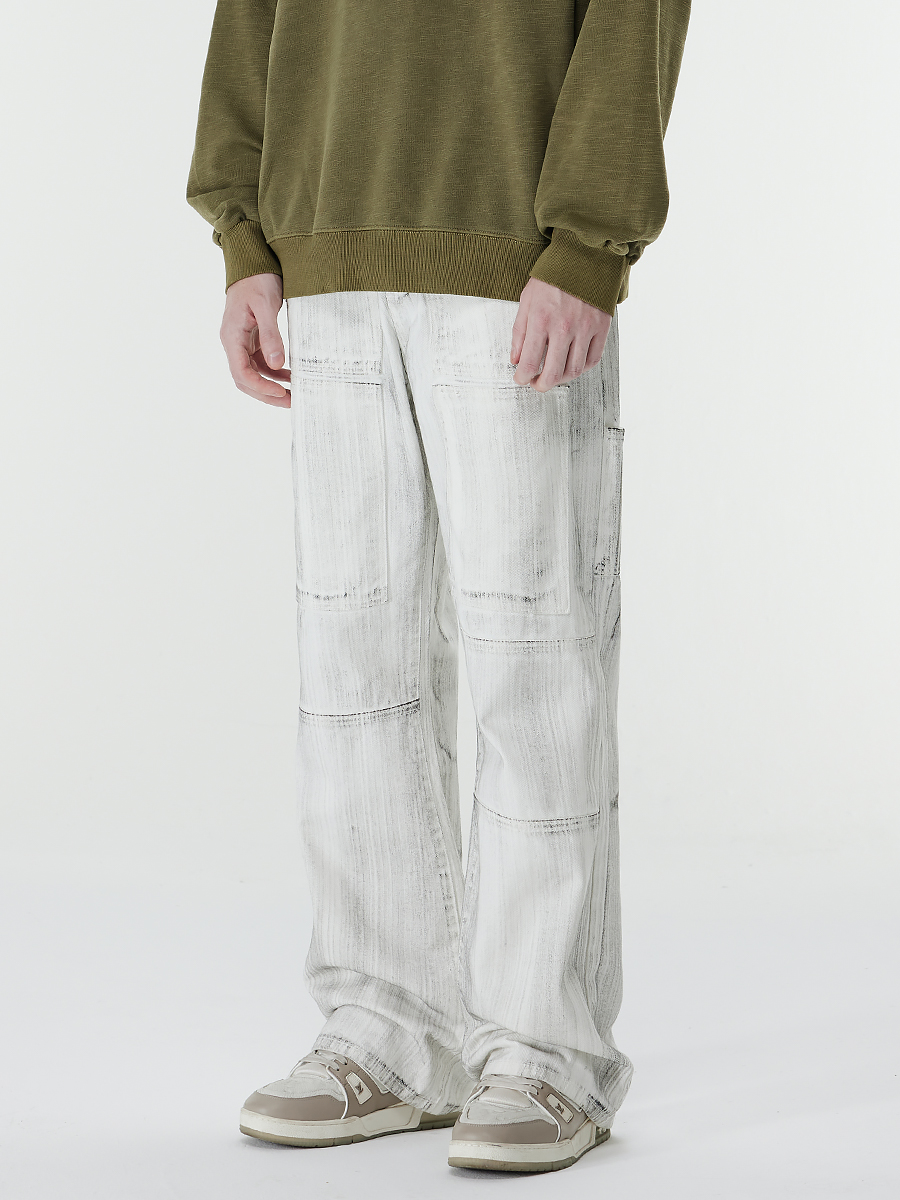 Dirty Wash Wide-Leg Straight Denim Jeans WN17536