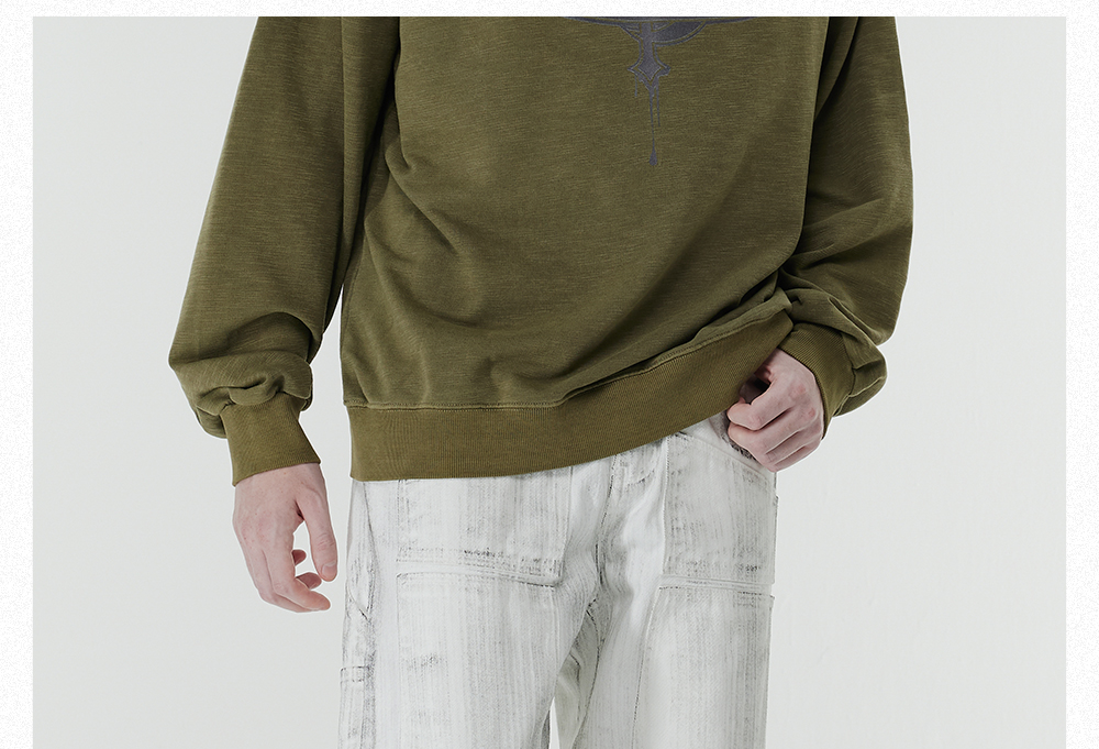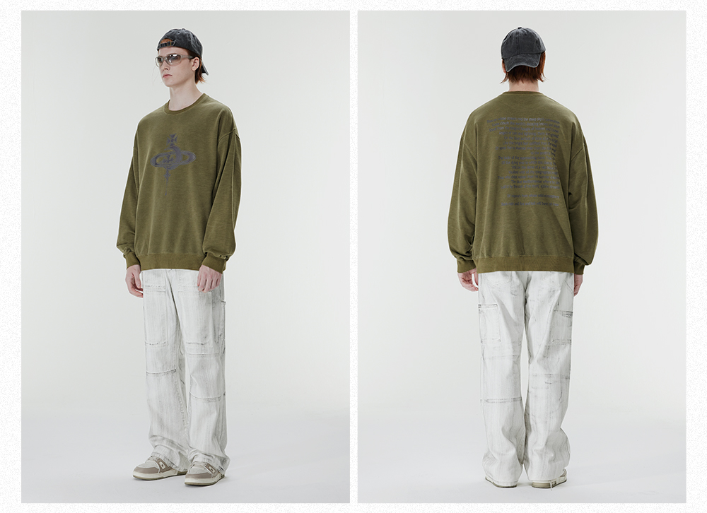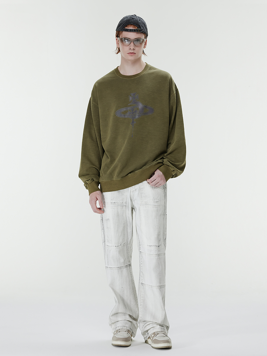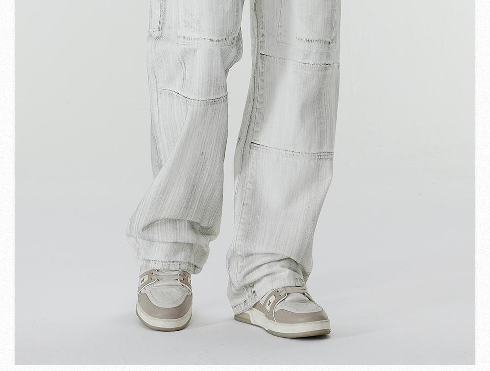 Dirty Wash Wide-Leg Straight Denim Jeans WN17536