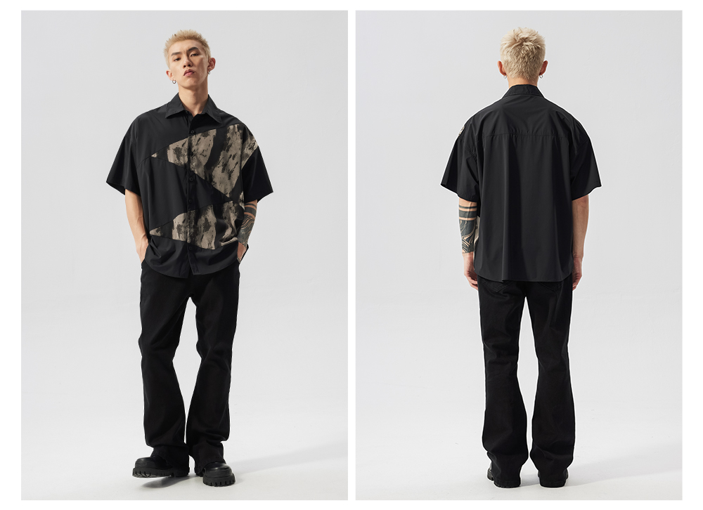 Deconstruction Tie-Dye Patchwork Oversize Short Sleeve Shirt WN17540