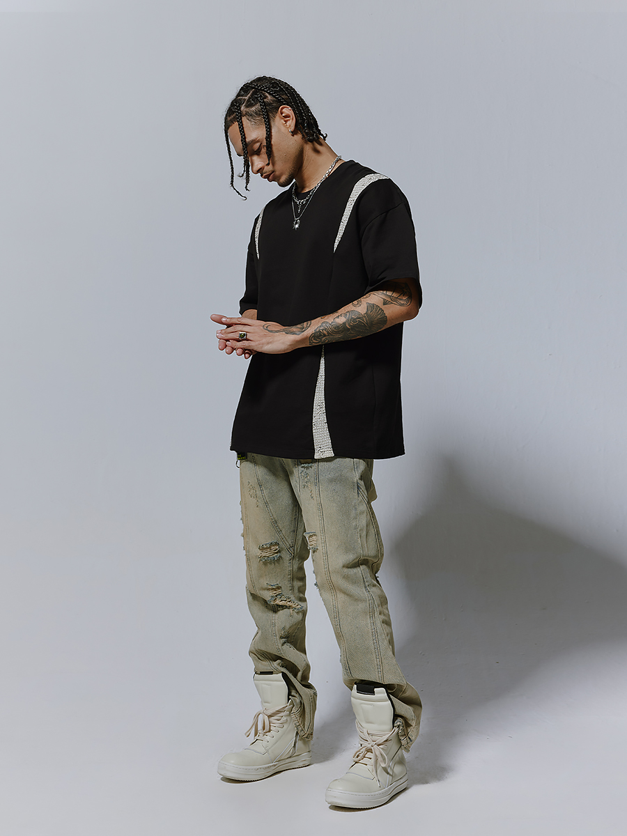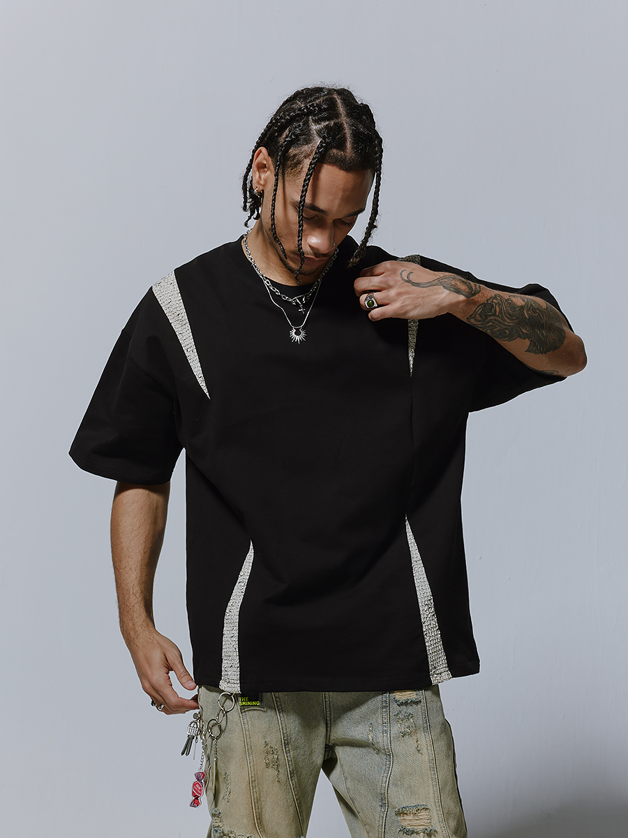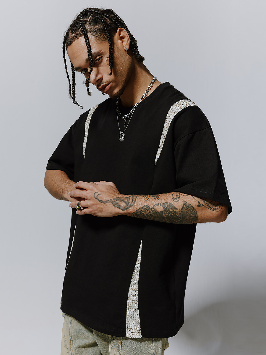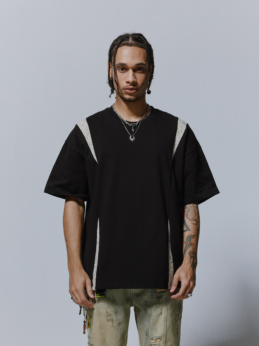 Snake Pattern Patchwork Style Oversize Short Sleeve T-Shirt WN17561