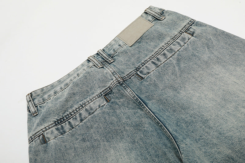 Wash Curved Wide Leg Denim Jeans WN18529