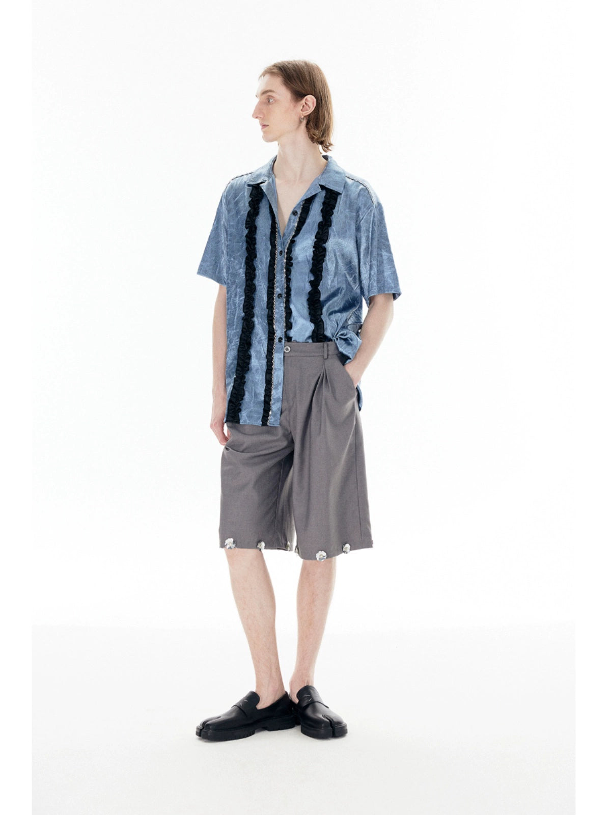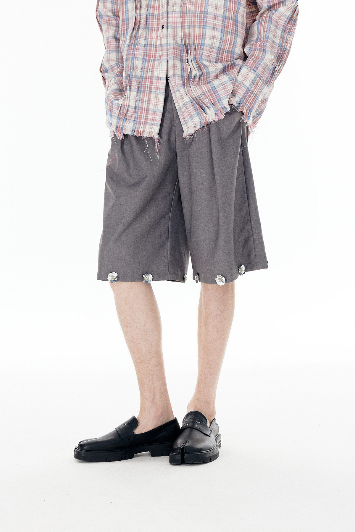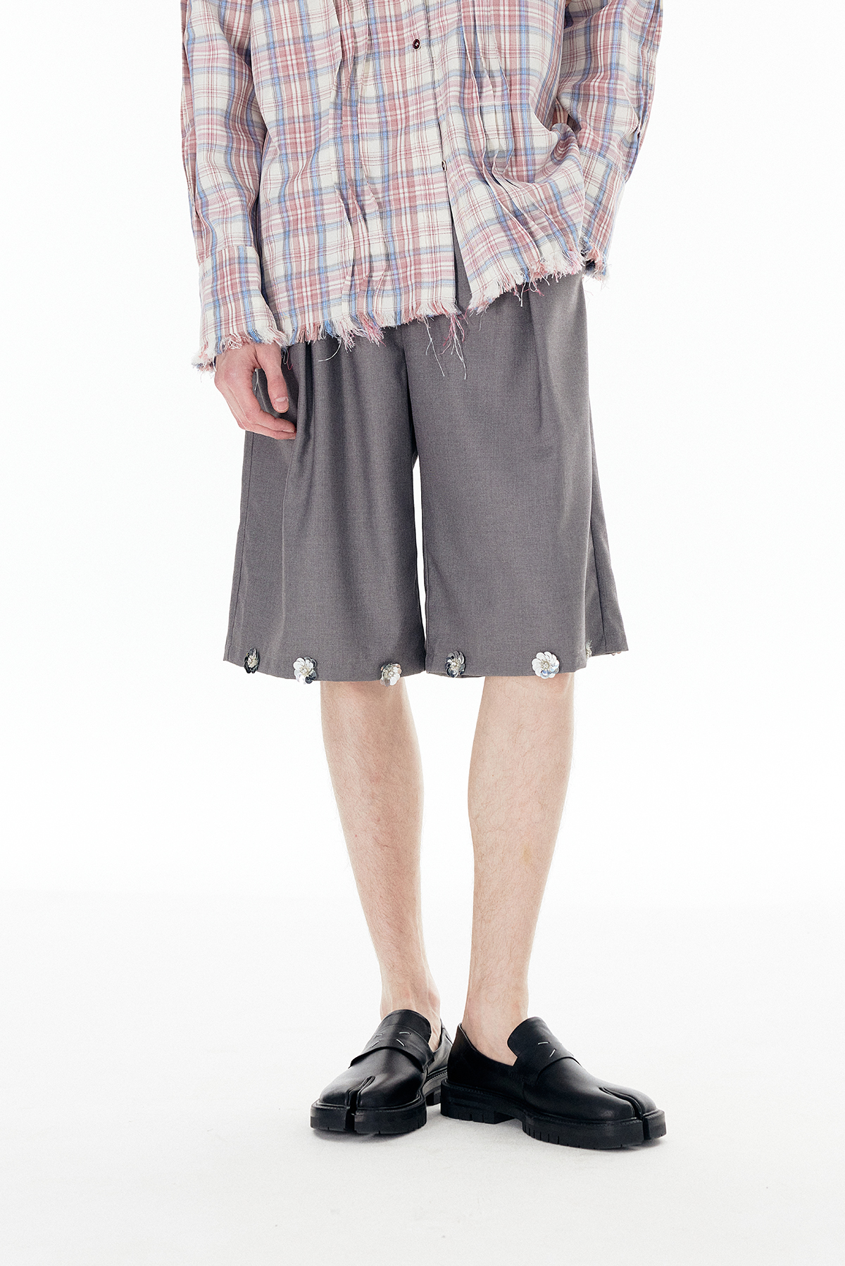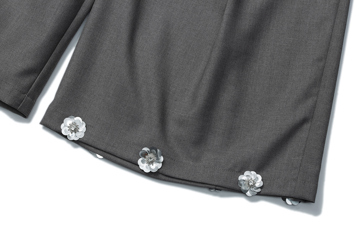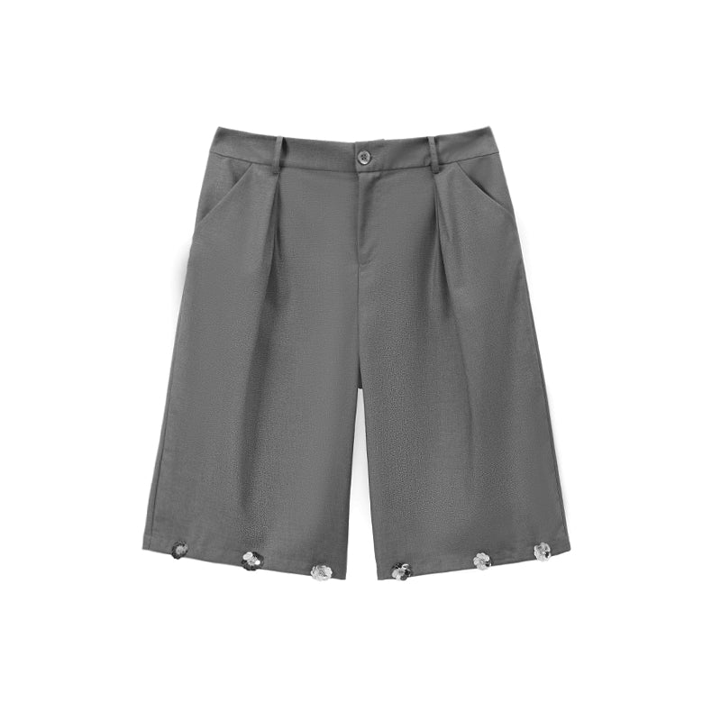 Pleated Design Floral Sequin and Bead Embellished Wide Leg Half Pants WN18873
