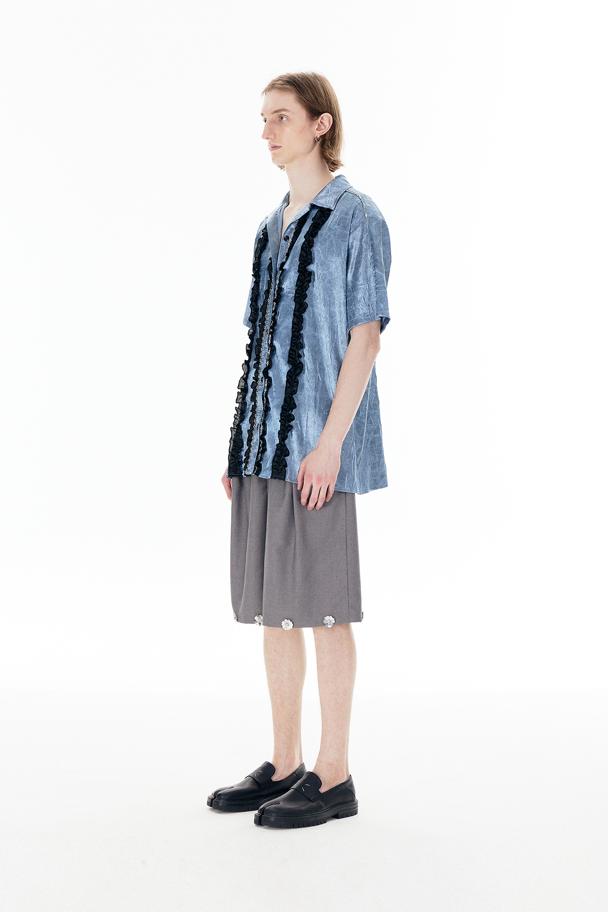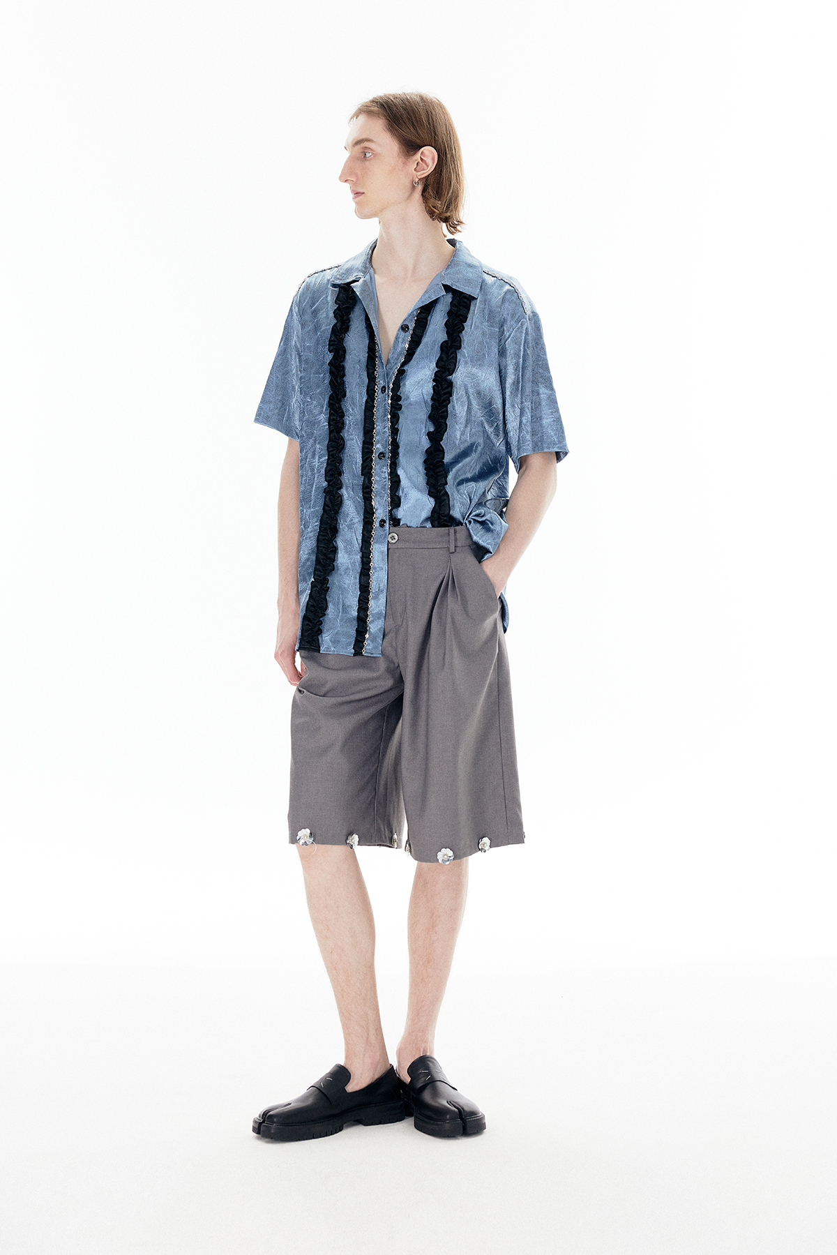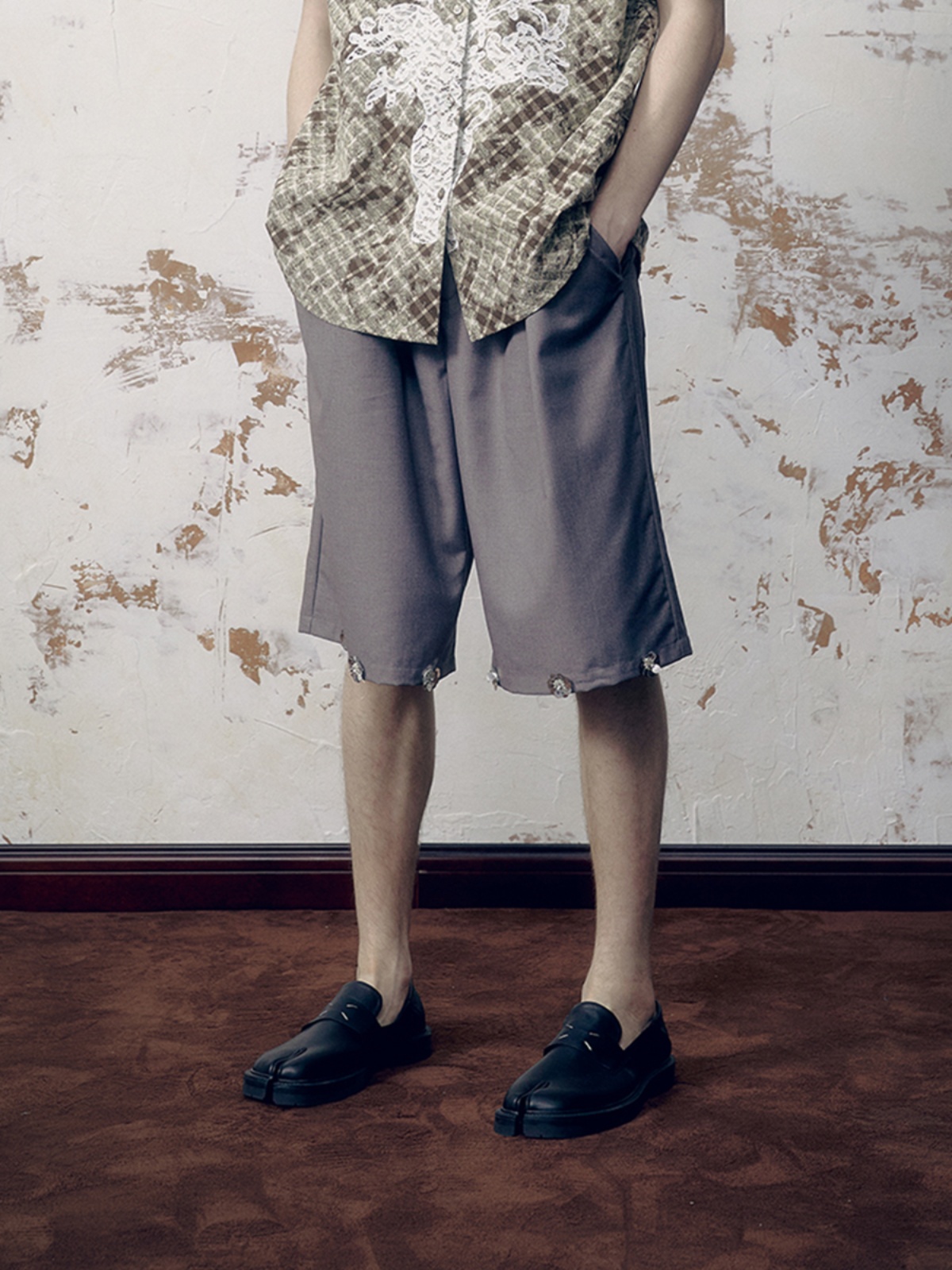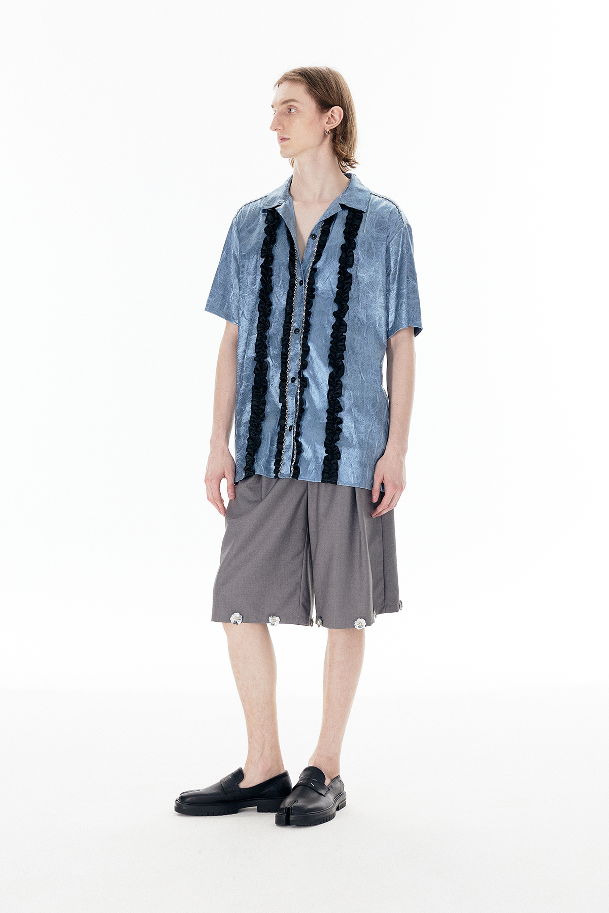 Pleated Design Floral Sequin and Bead Embellished Wide Leg Half Pants WN18873