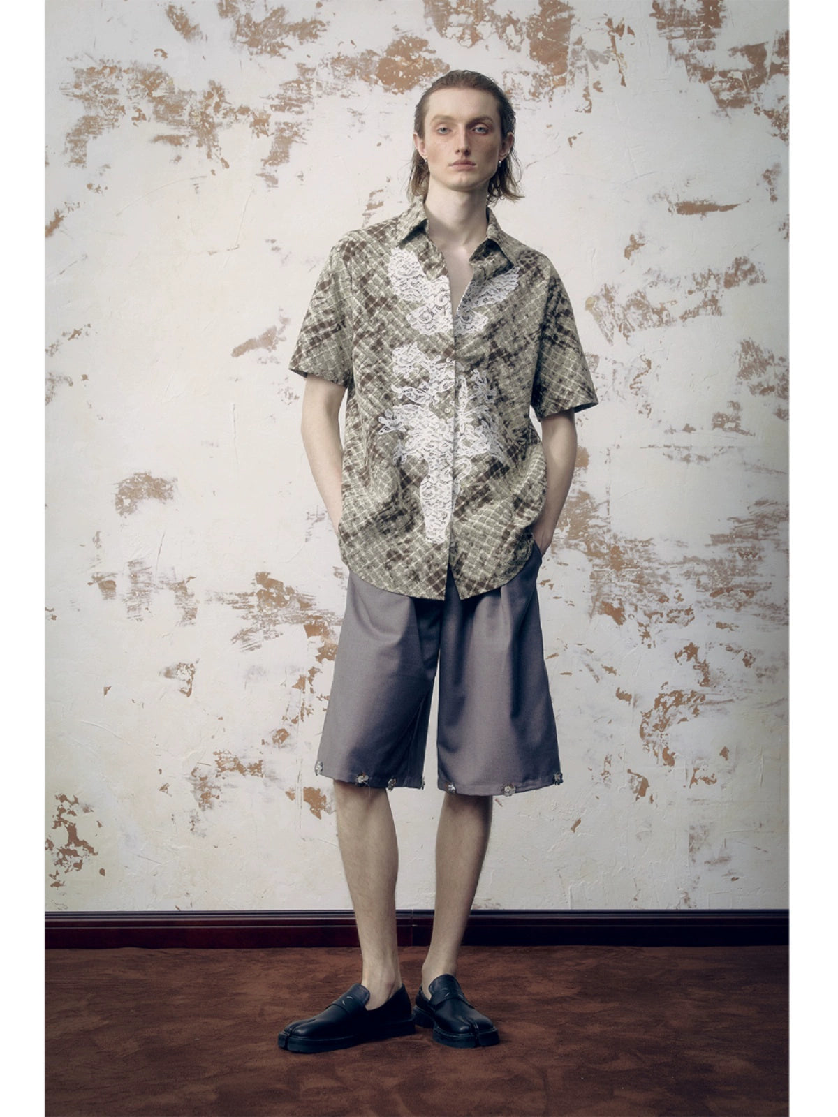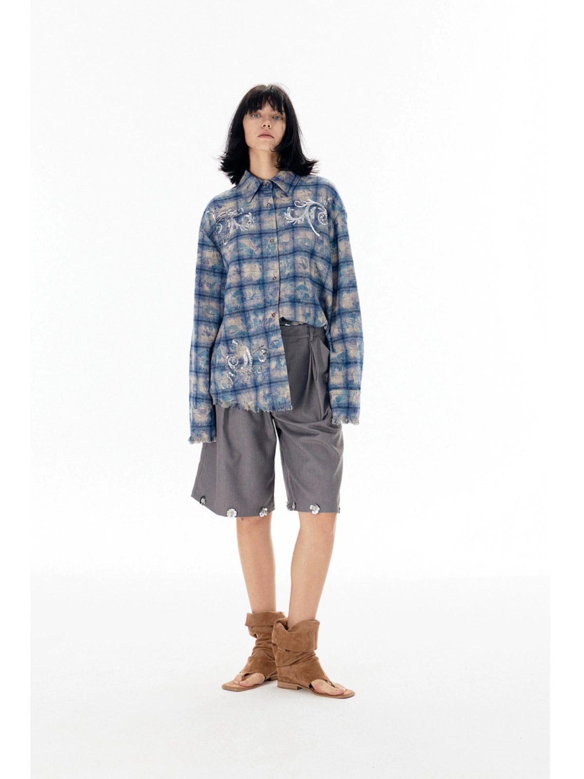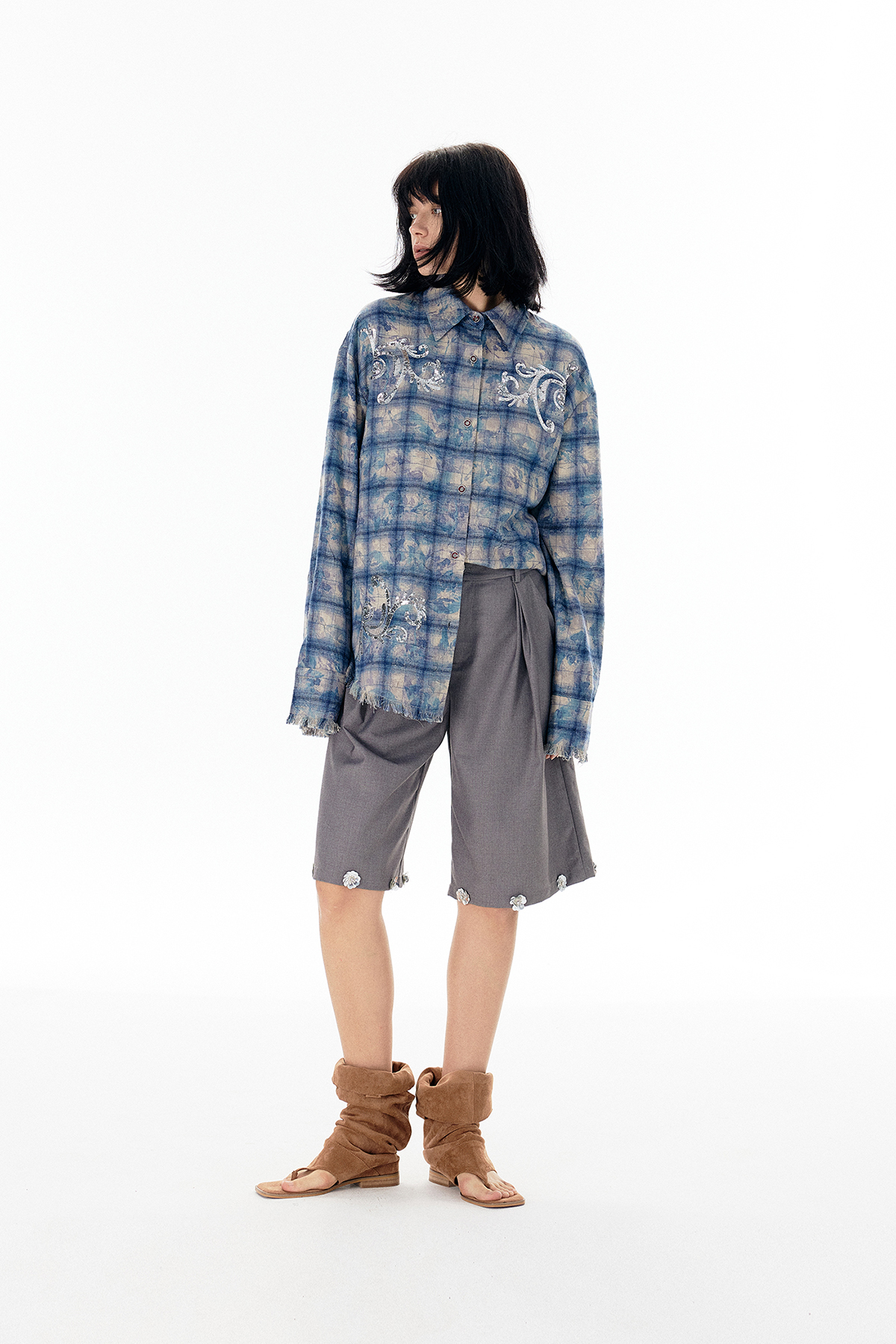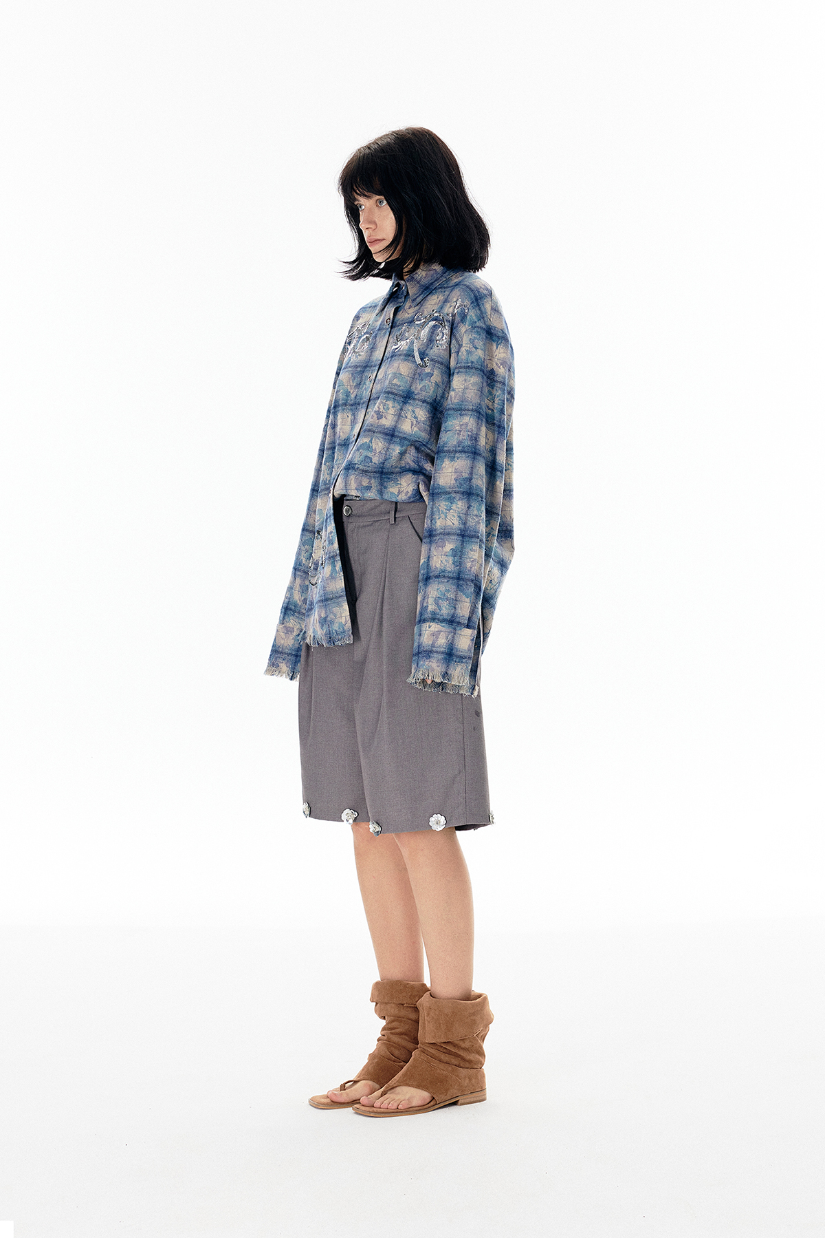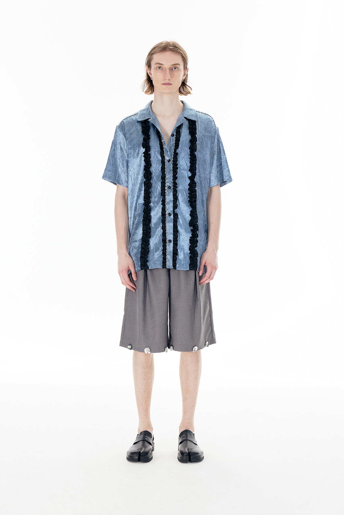 Pleated Design Floral Sequin and Bead Embellished Wide Leg Half Pants WN18873