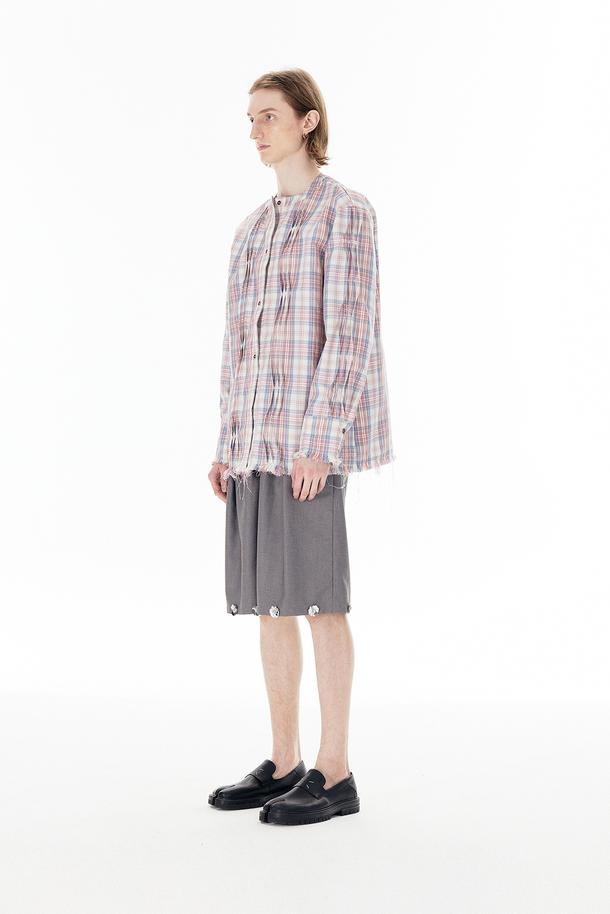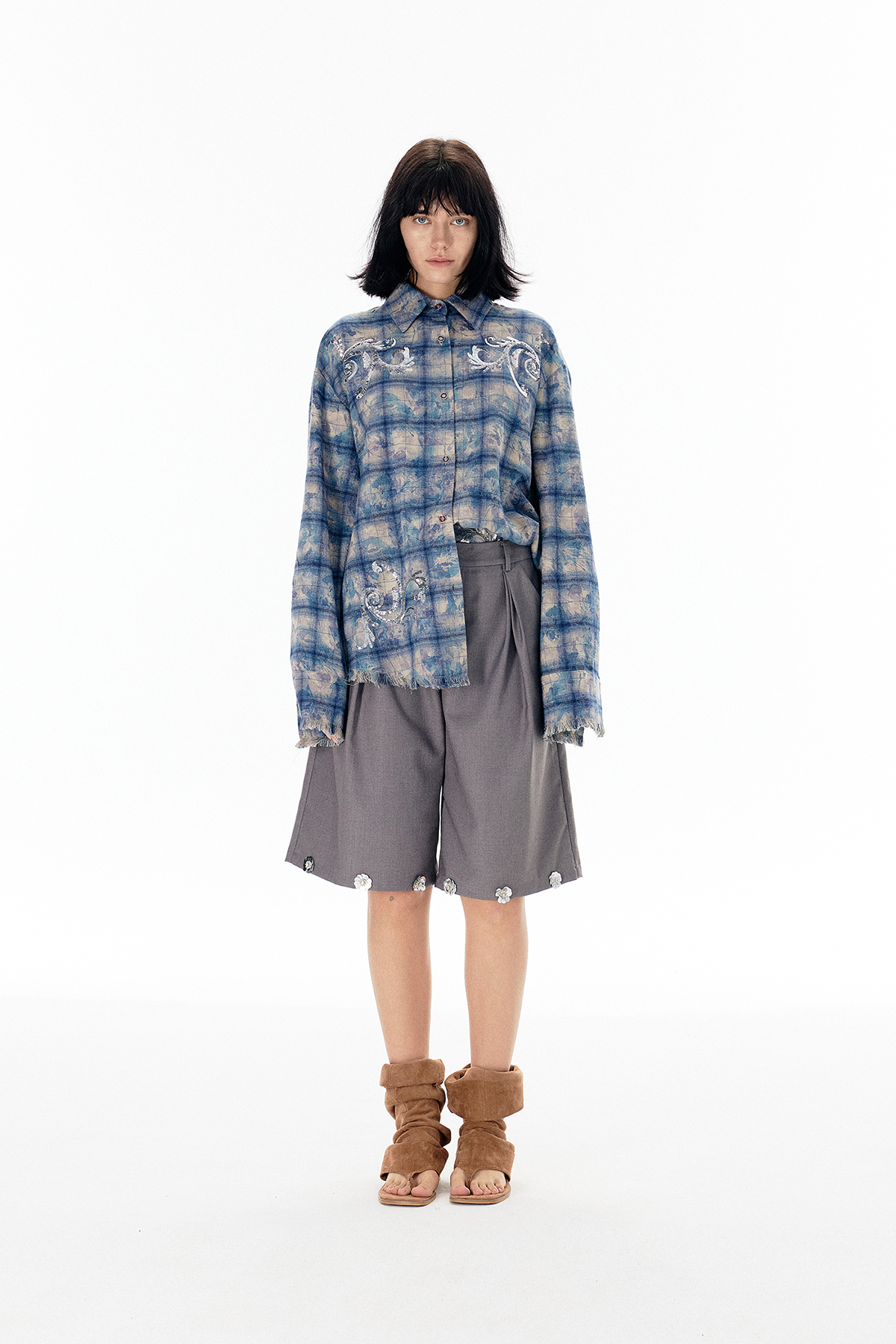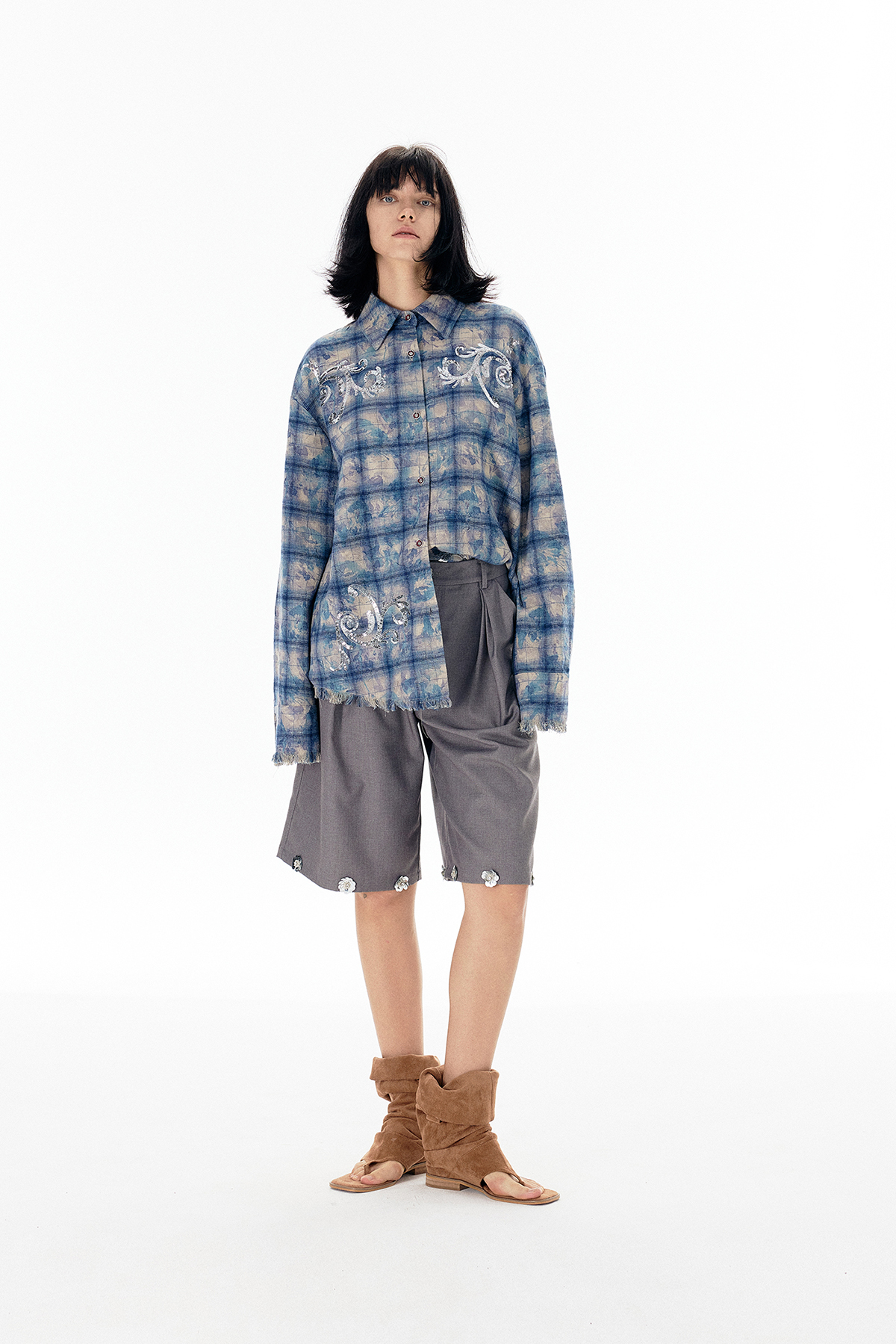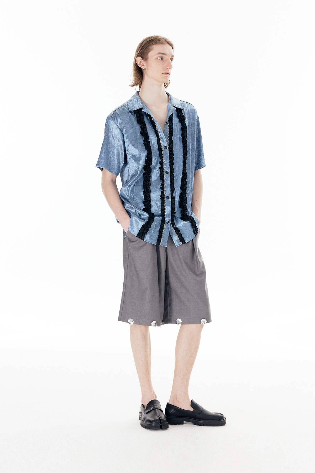 Pleated Design Floral Sequin and Bead Embellished Wide Leg Half Pants WN18873