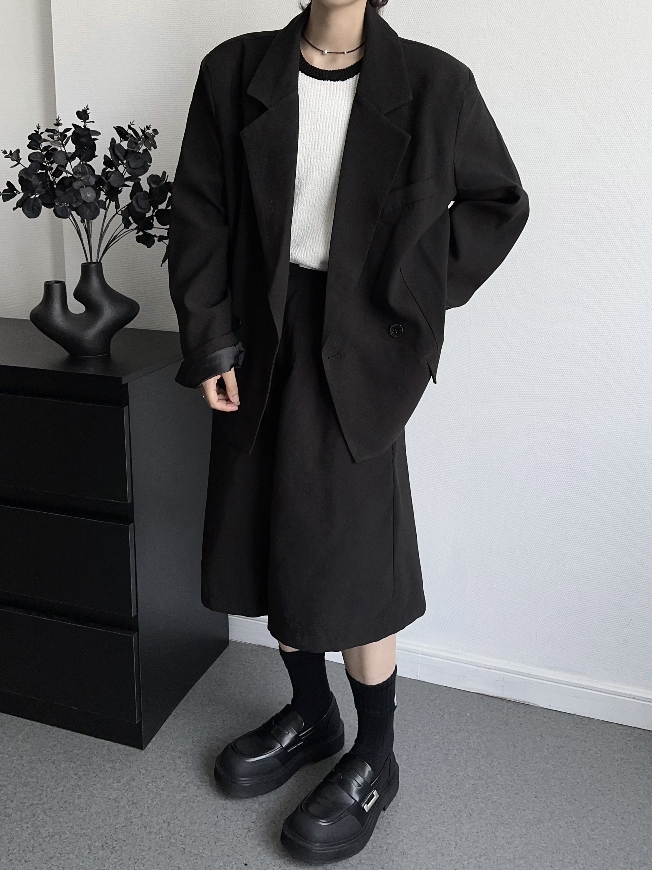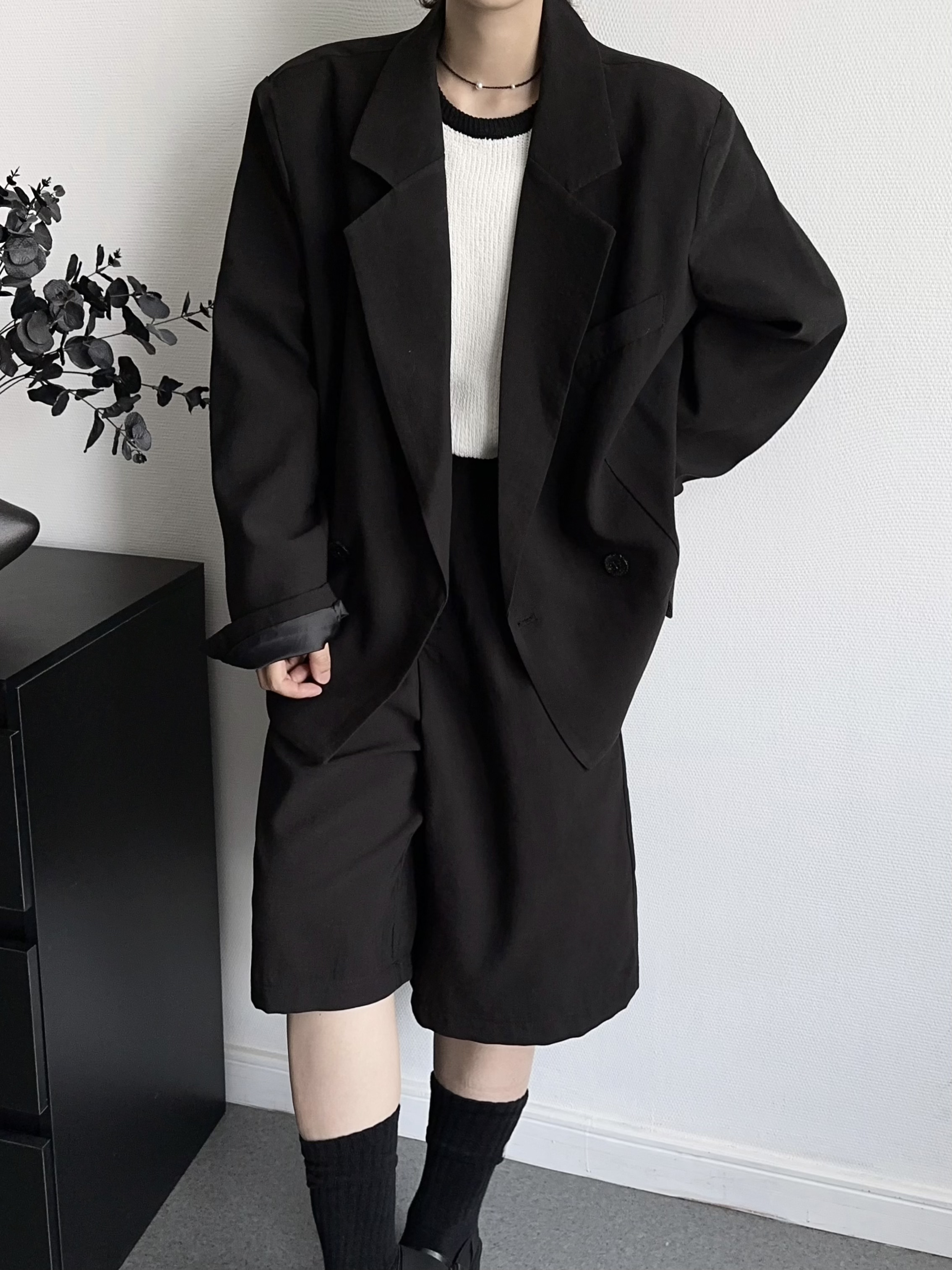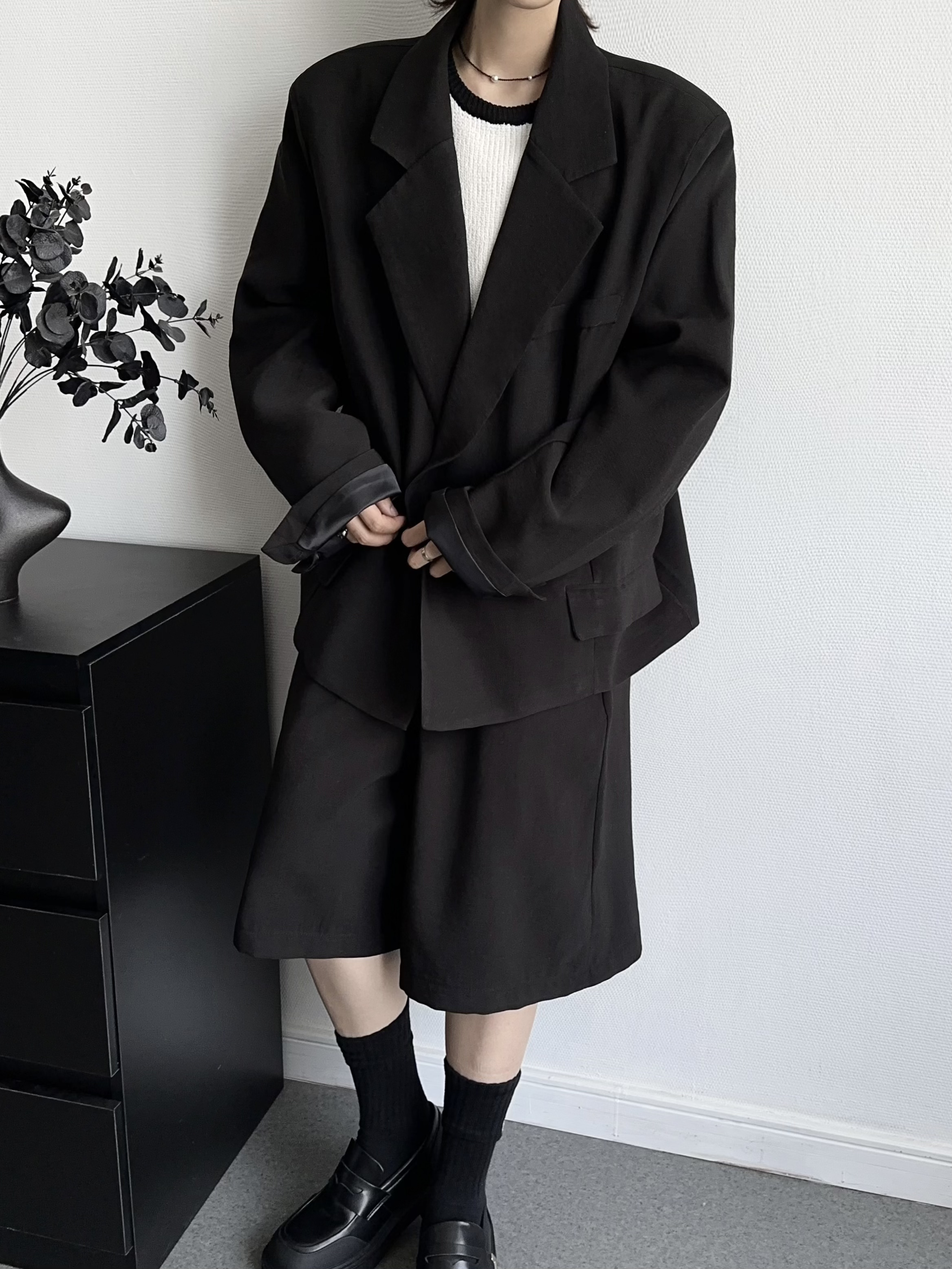 Basic Oversize Tailored Jacket & Wide Leg Half Pants Setup WN19369