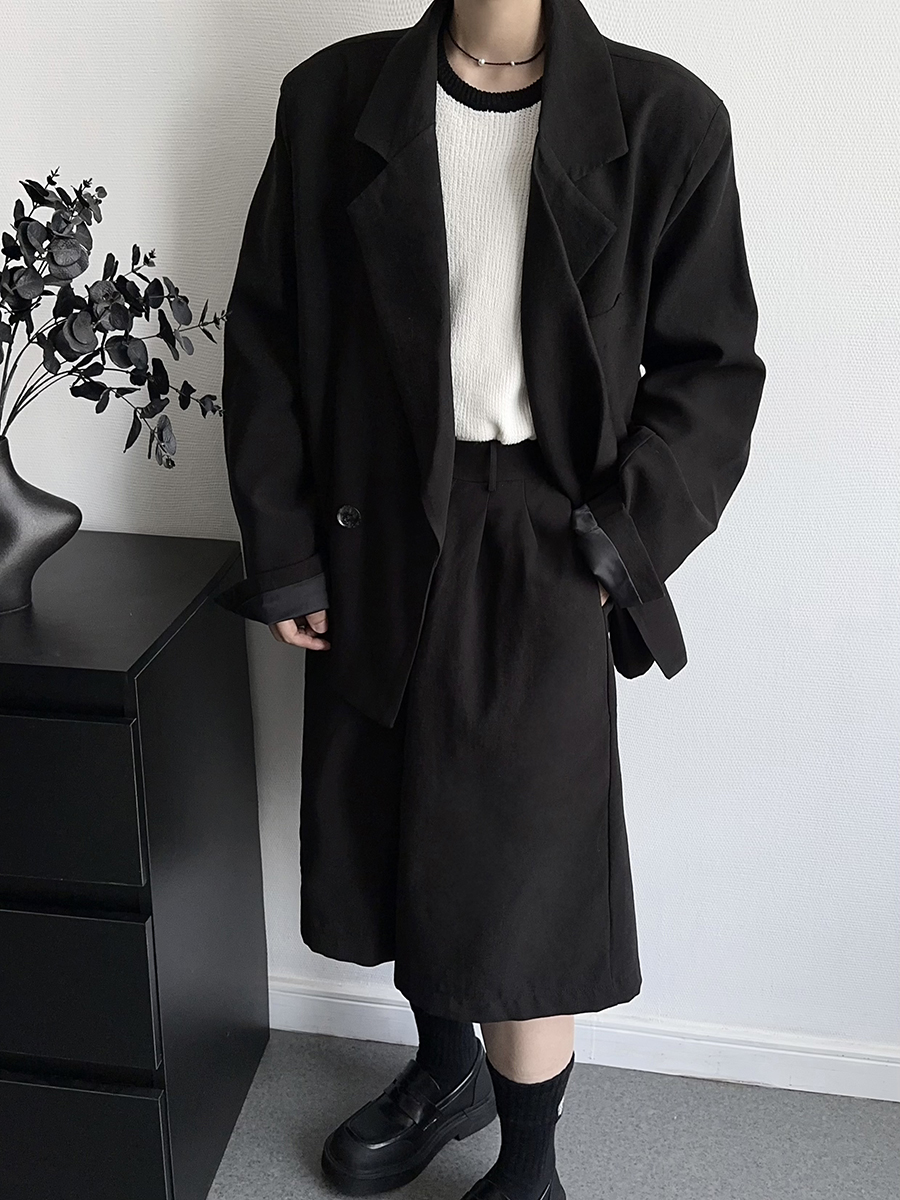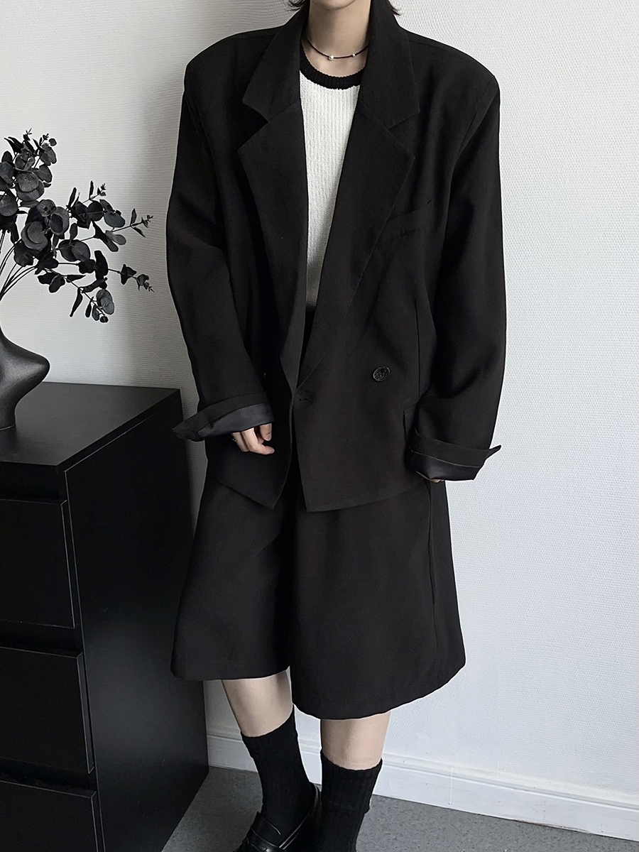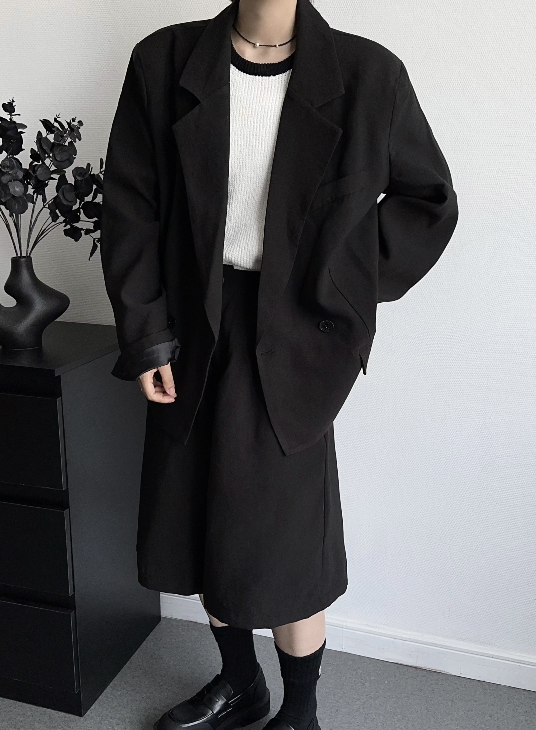 Basic Oversize Tailored Jacket & Wide Leg Half Pants Setup WN19369