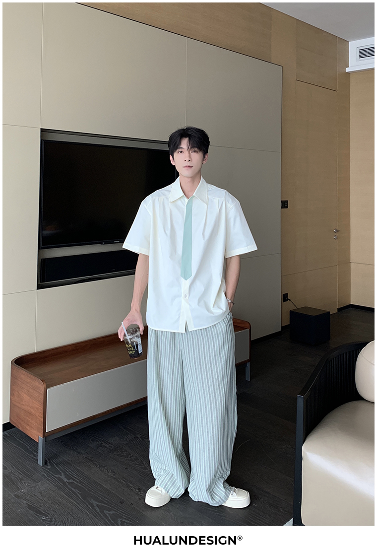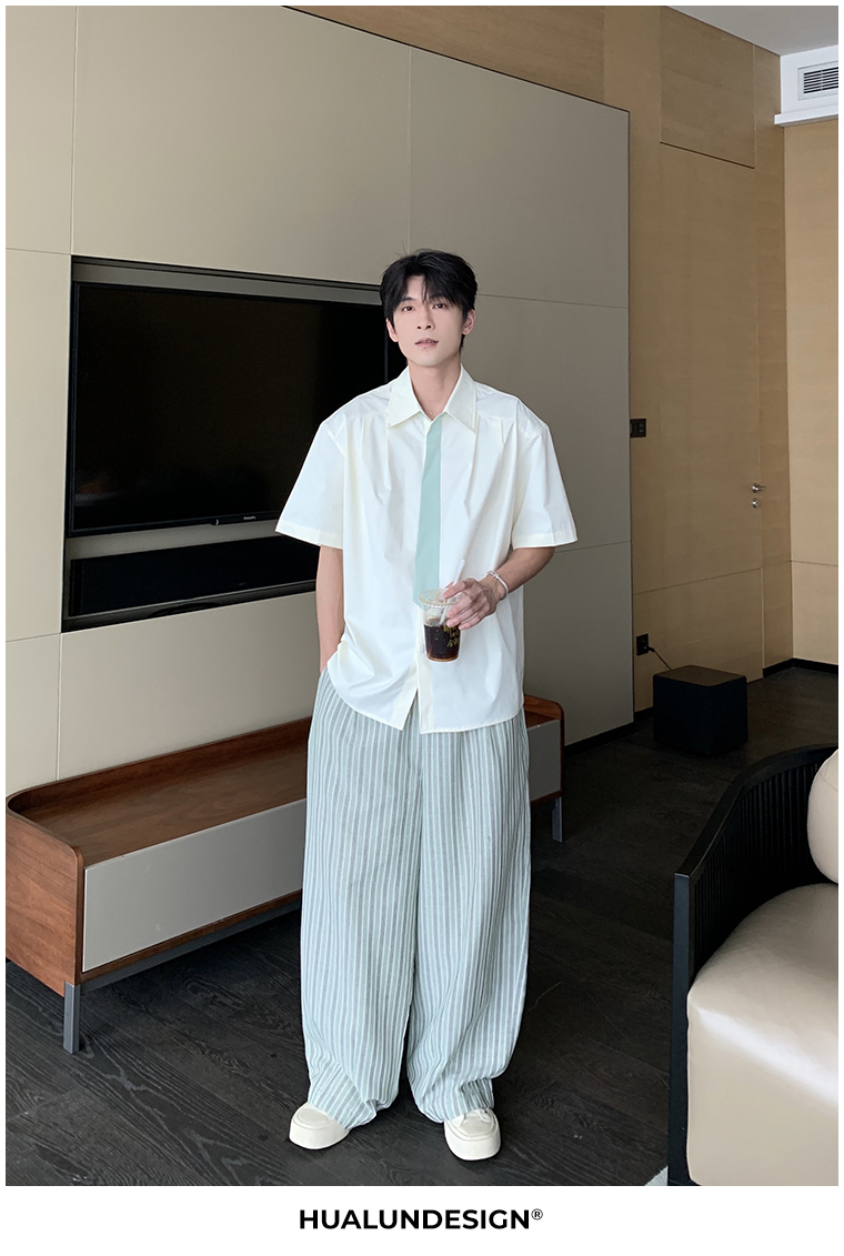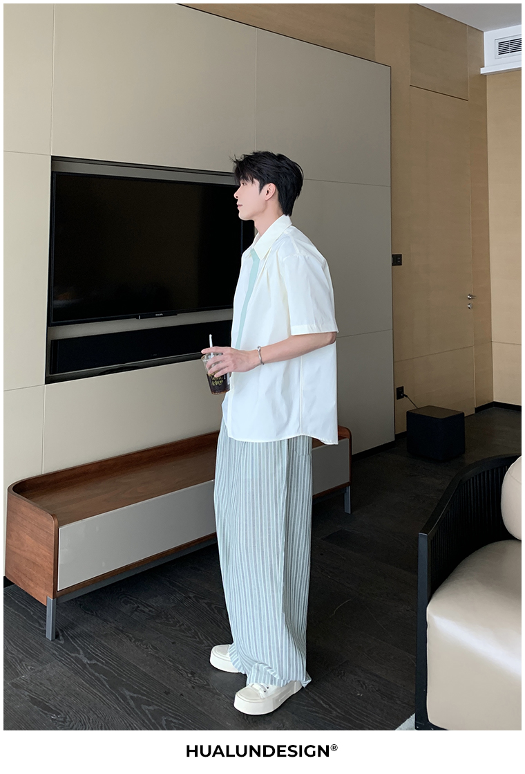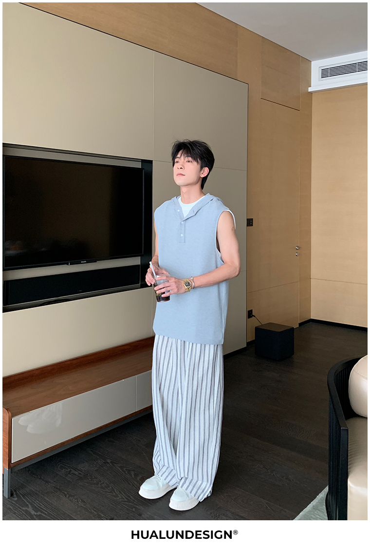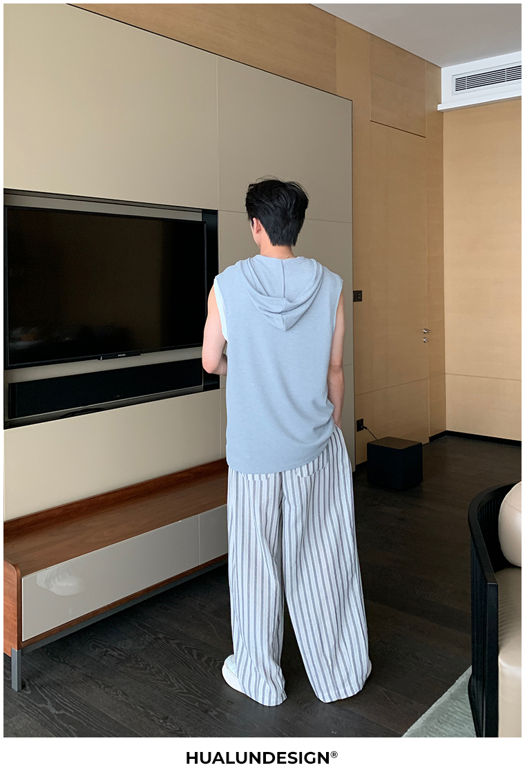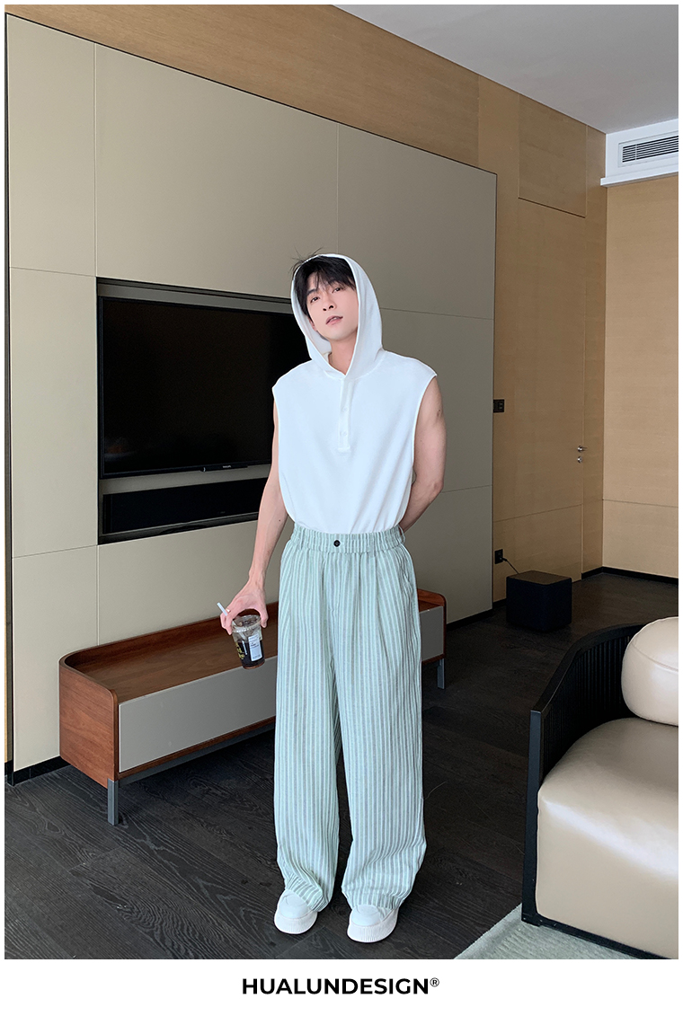 Striped Cotton Elastic Waist Wide Leg Straight Pants WN20442