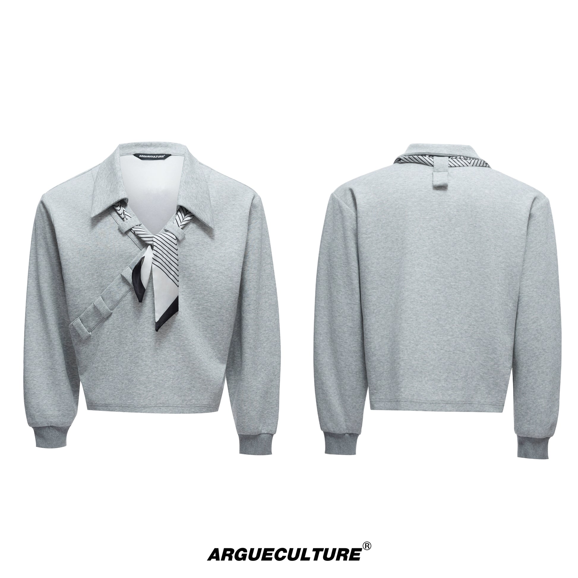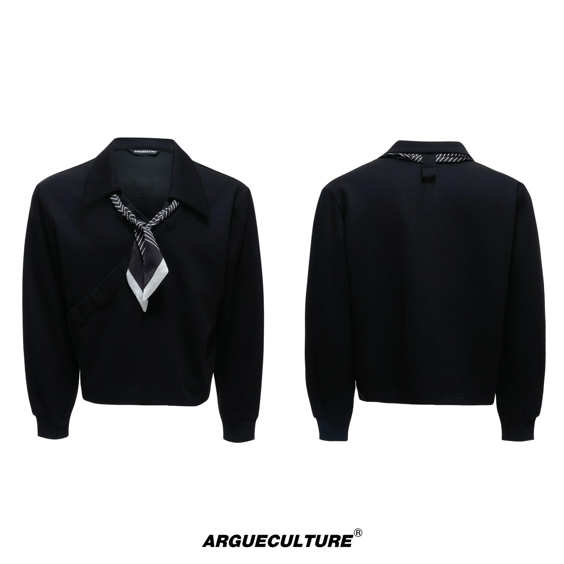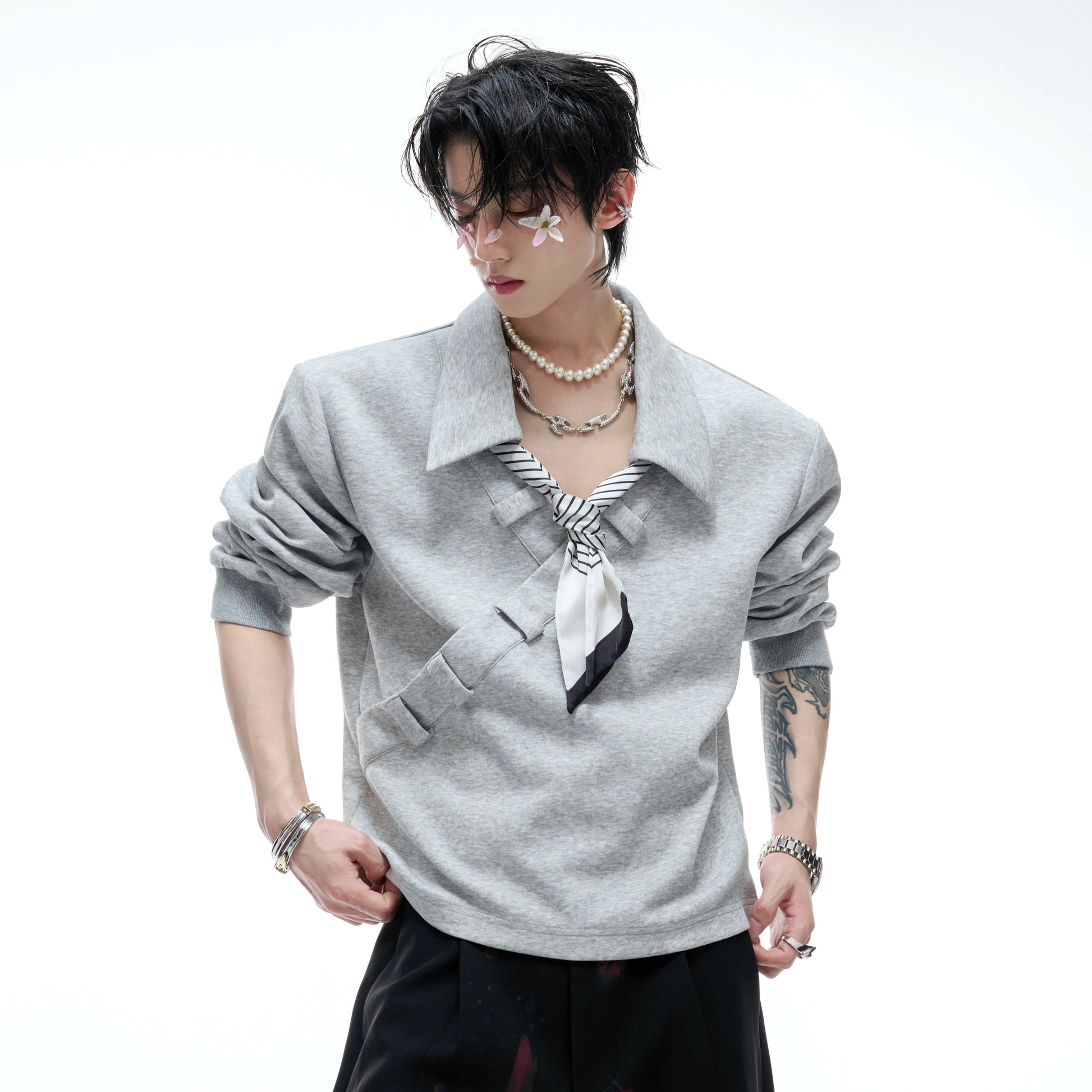 Stripe Scarf Ribbon V-Neck Long Sleeve Shirt WN20534