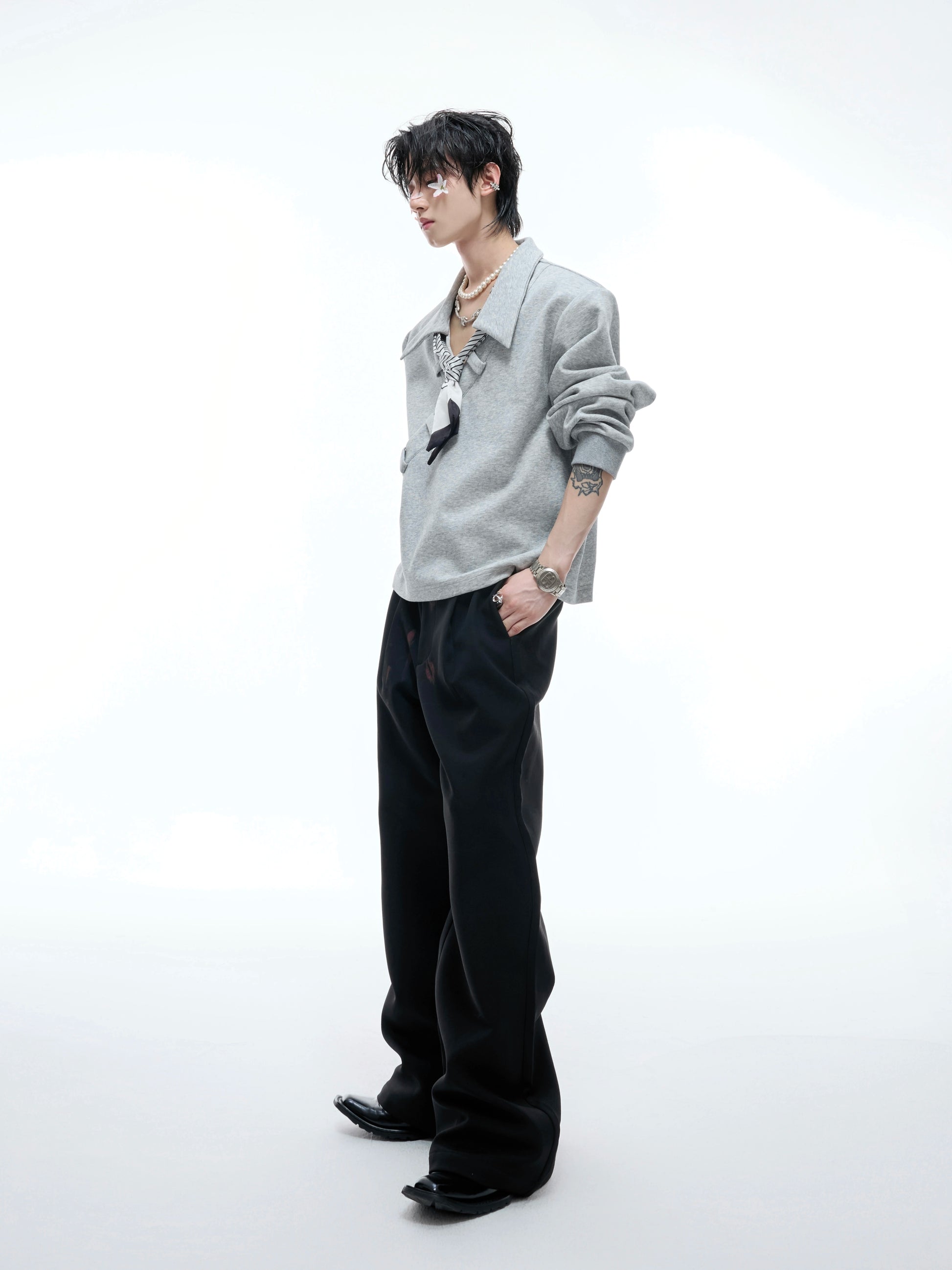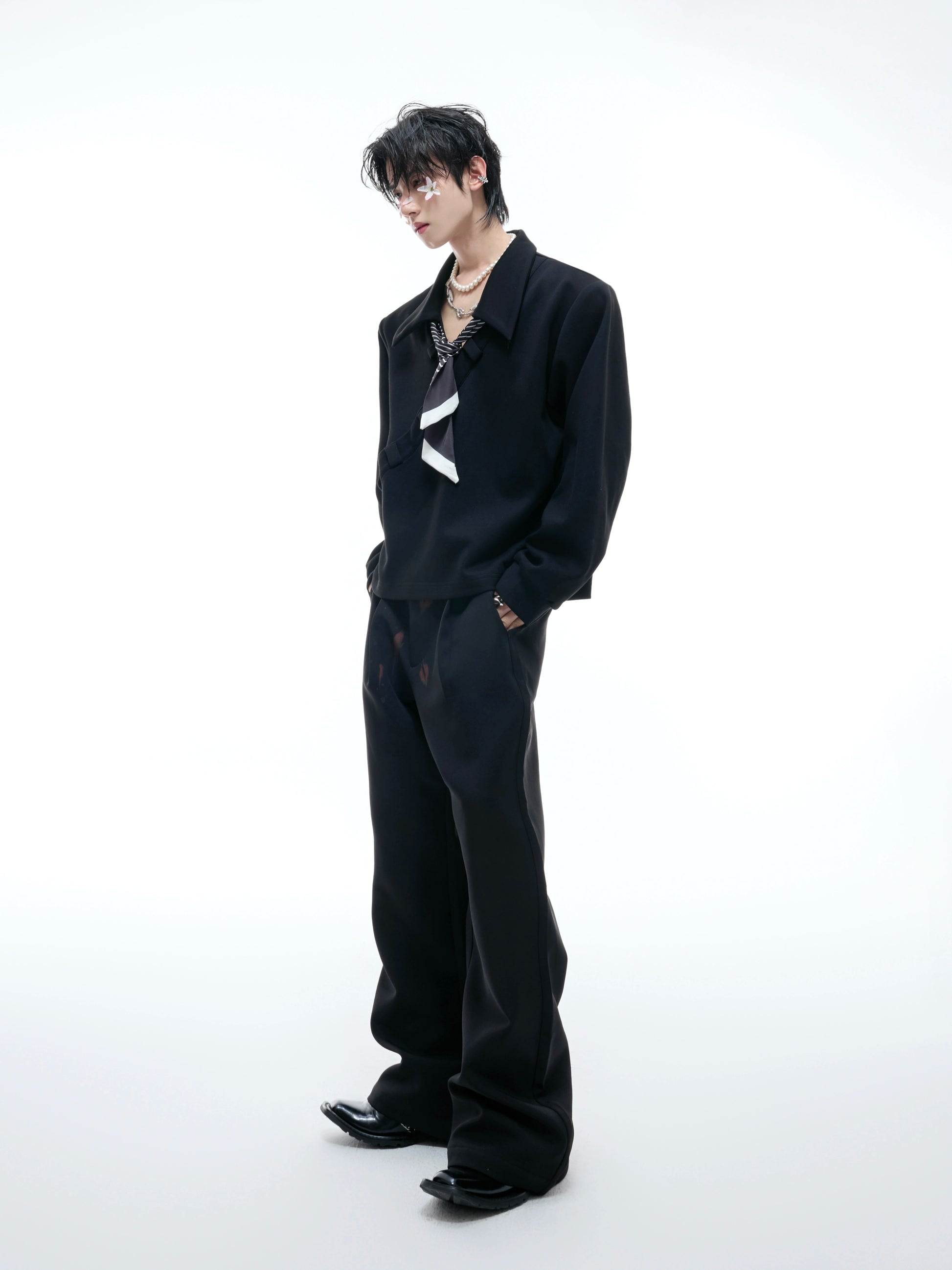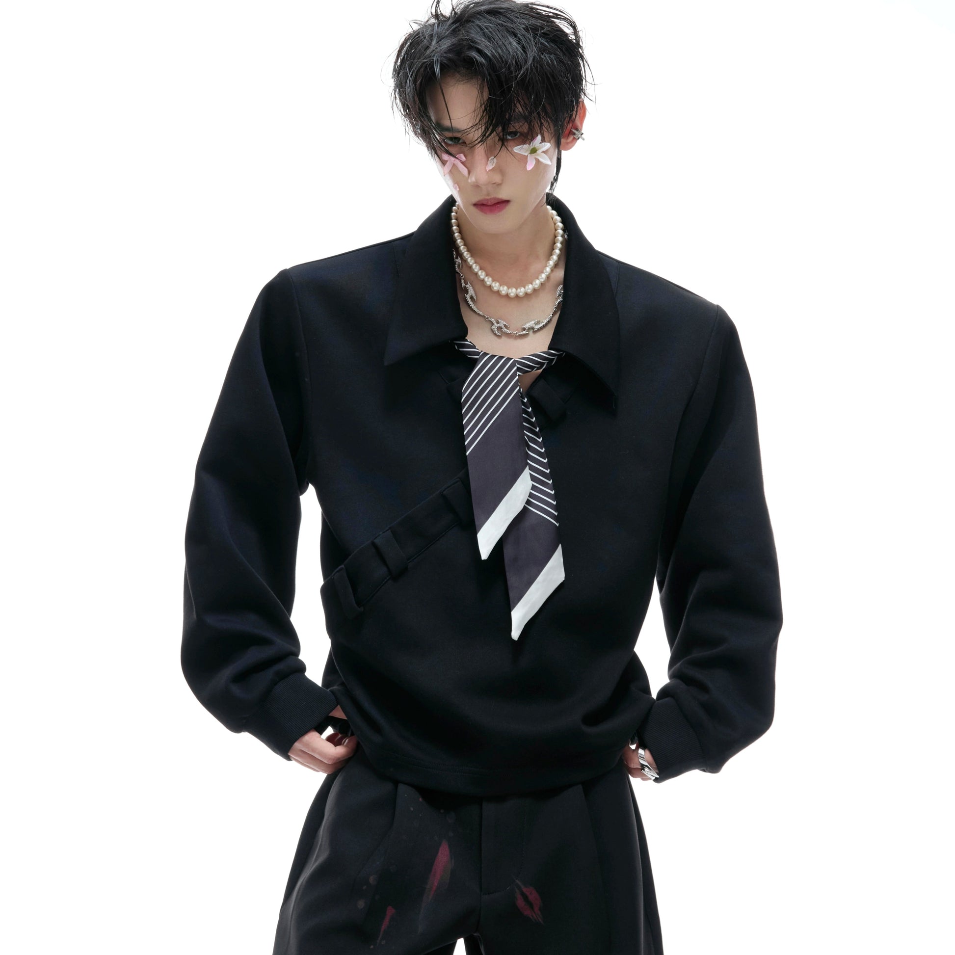 Stripe Scarf Ribbon V-Neck Long Sleeve Shirt WN20534